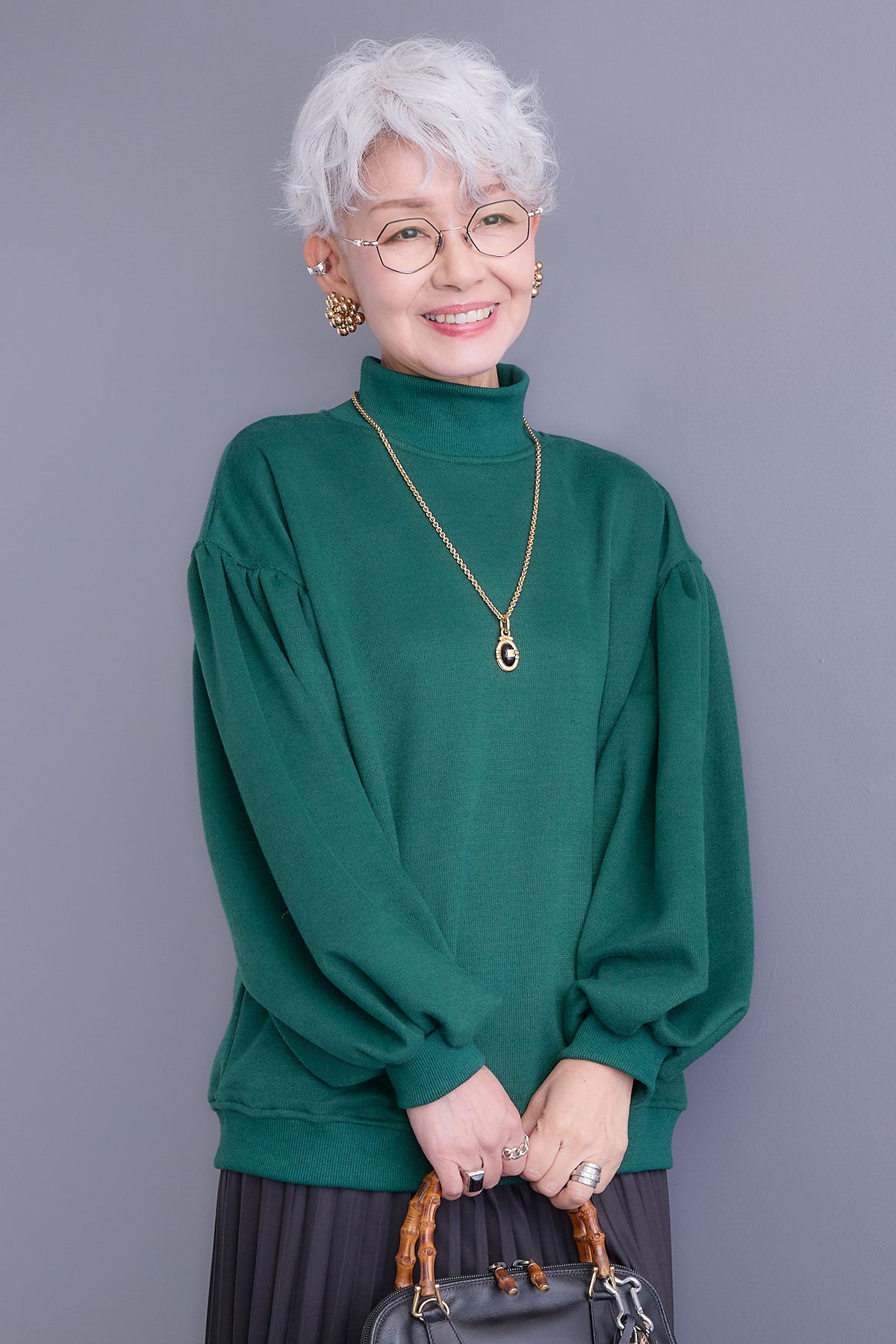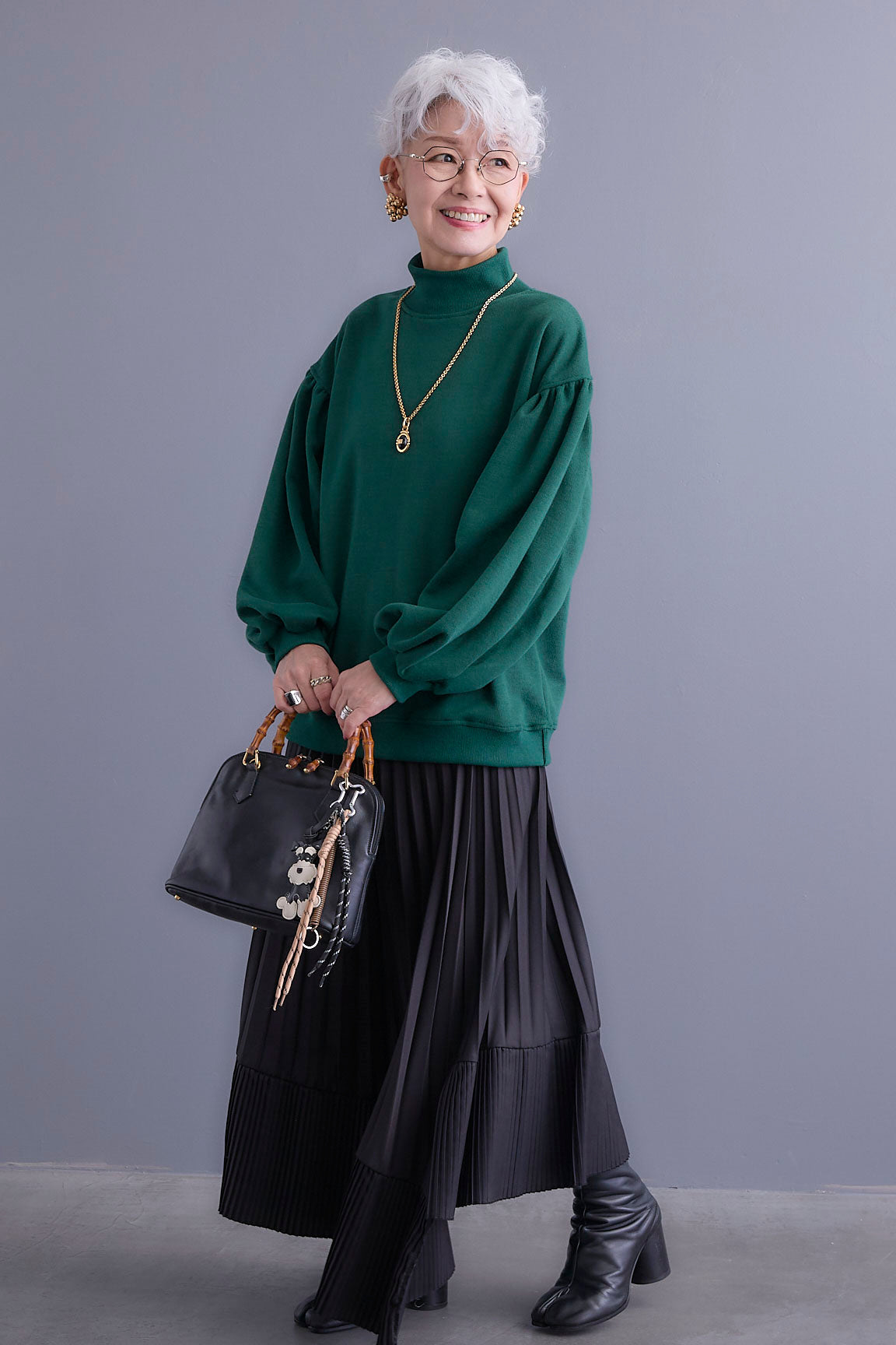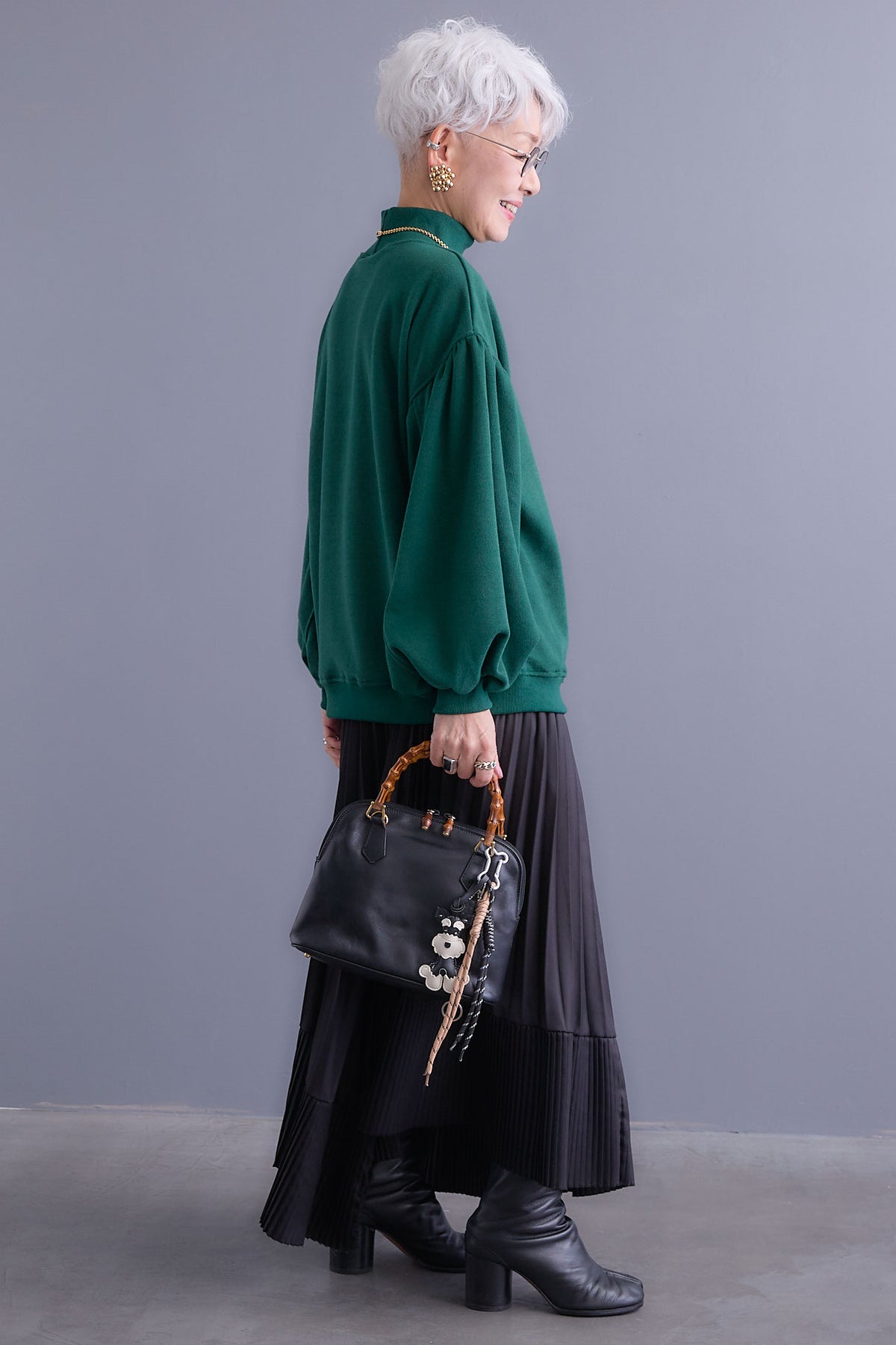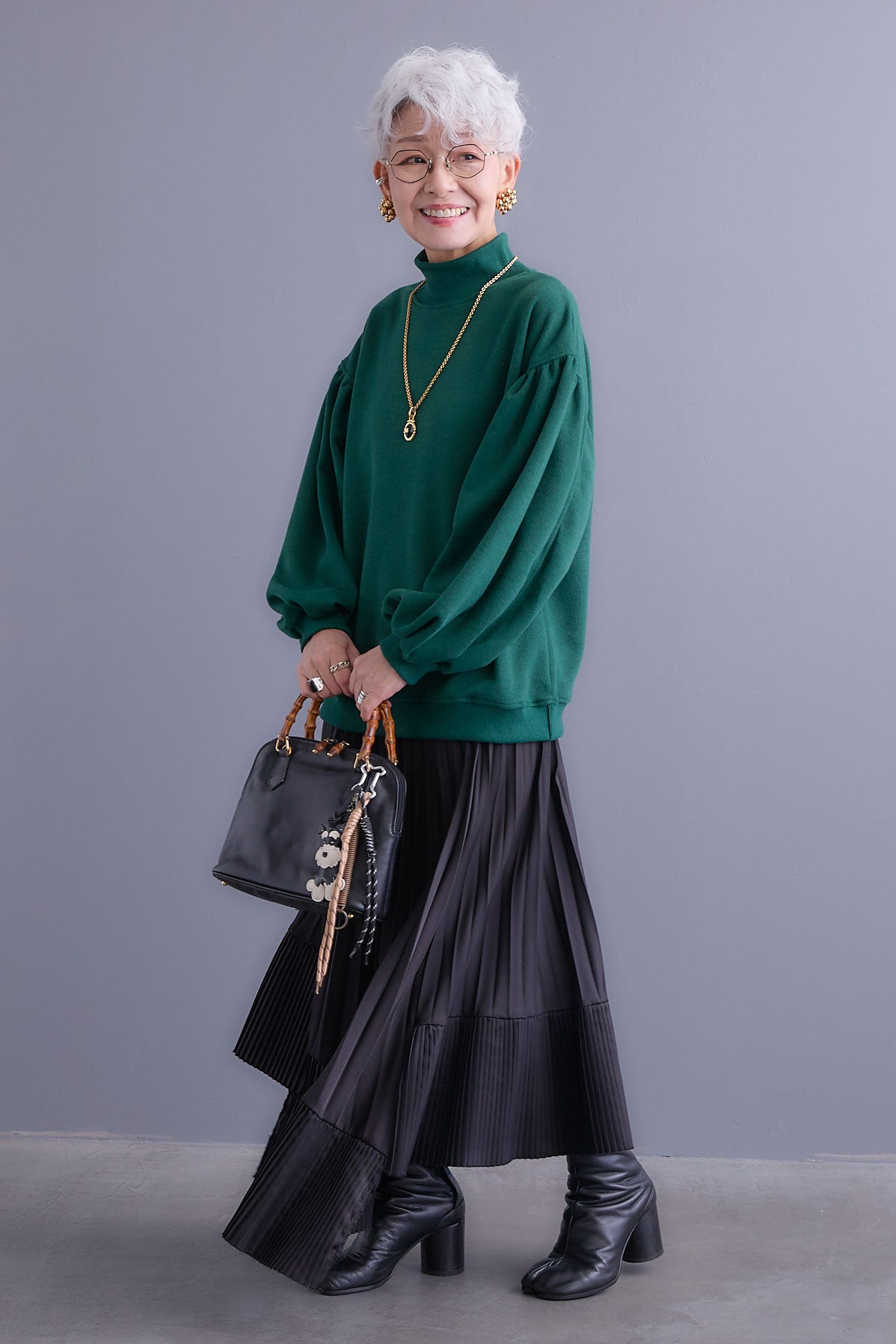 【SET】ボリュームスリーブモックネックプルオーバー+アシンメトリープリーツスカート(2set)
