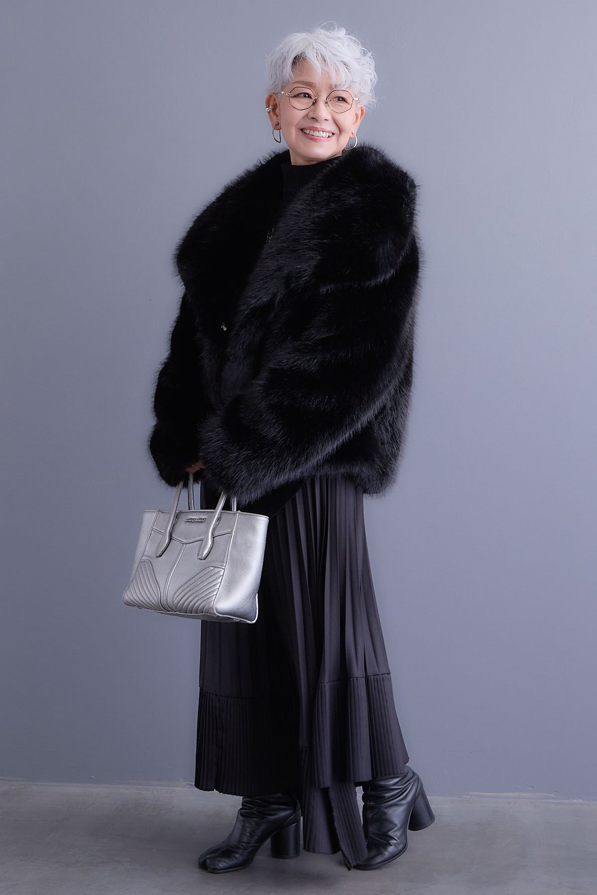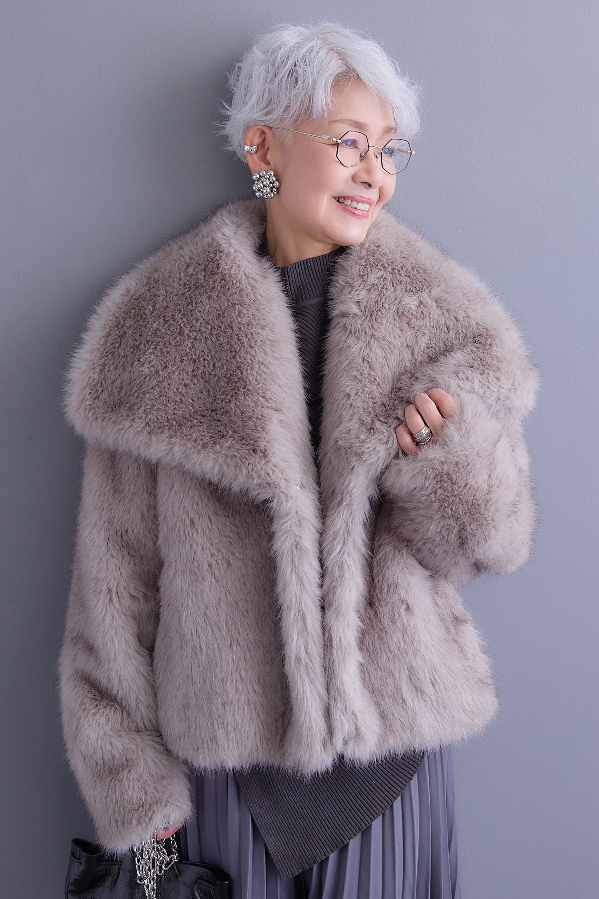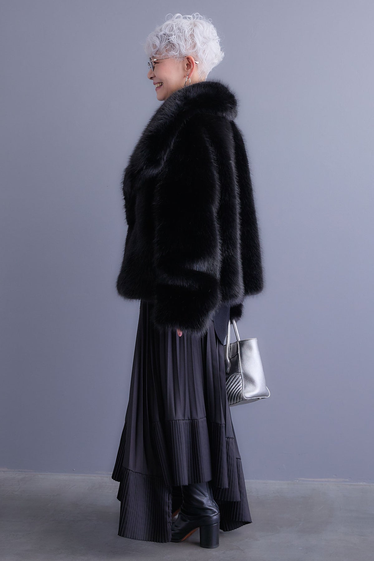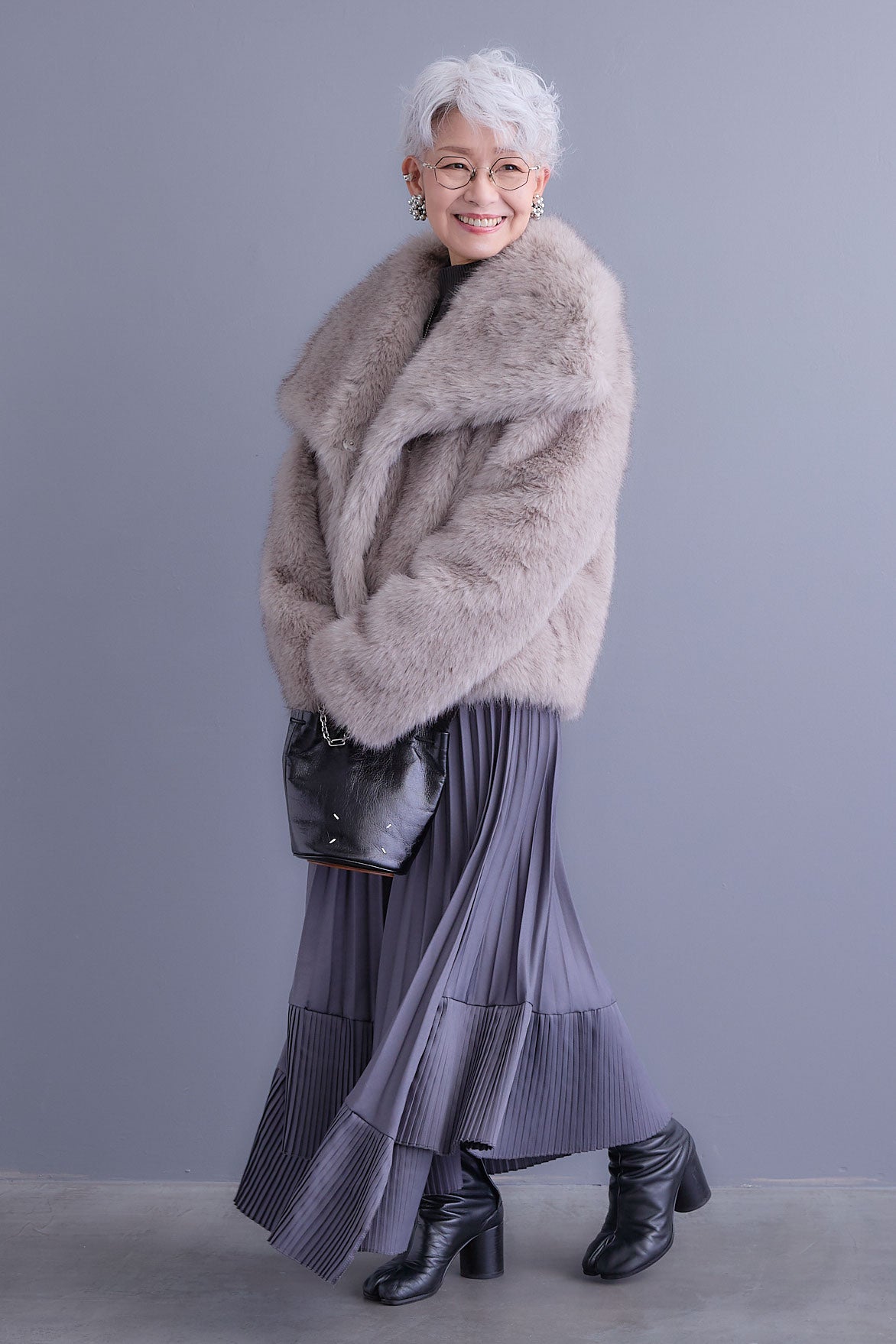 【SET】アシンメトリーオーバーニット+オーバーカラーファーコート+アシンメトリープリーツスカート(3set)