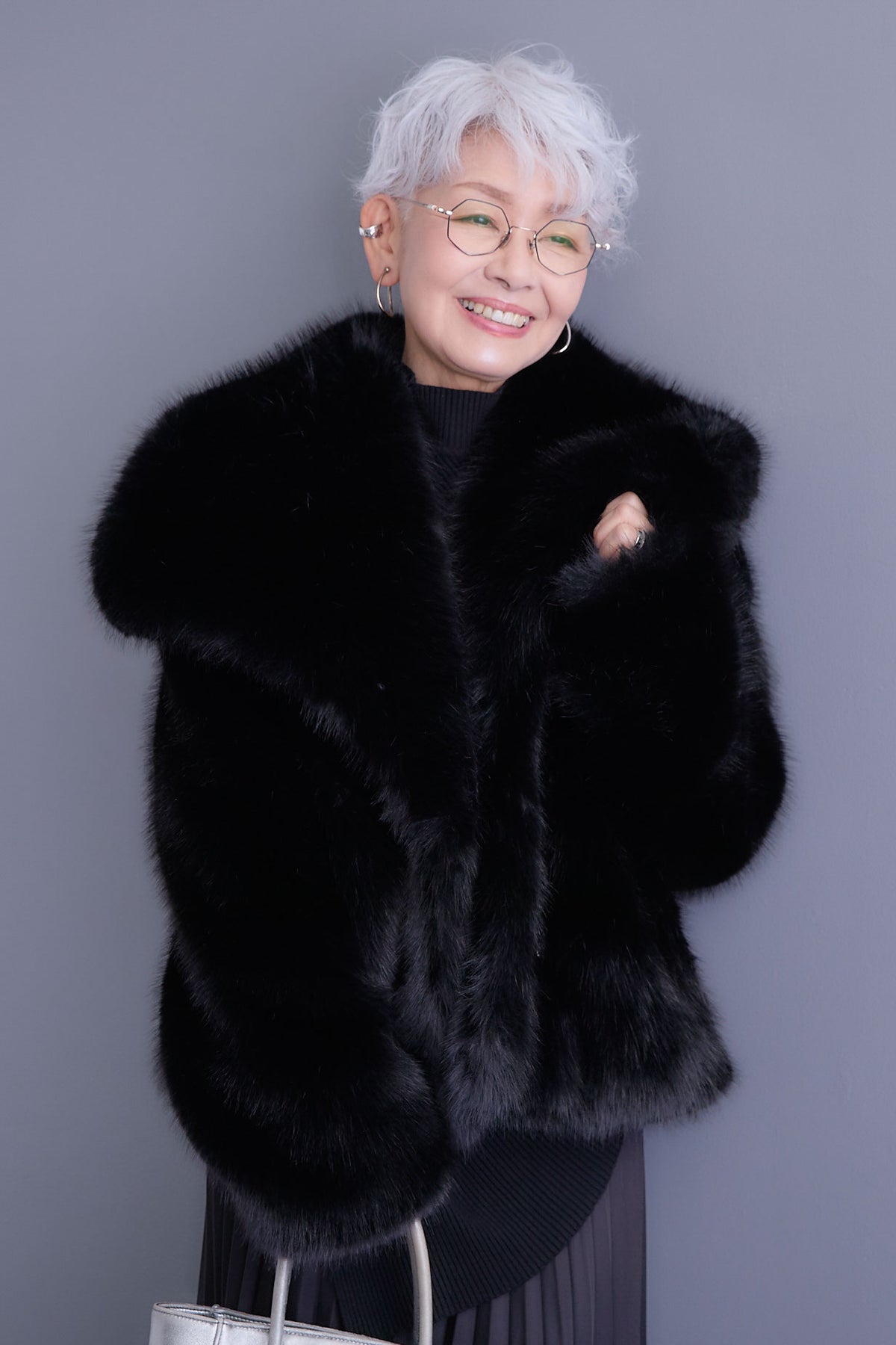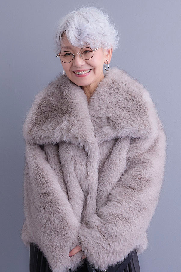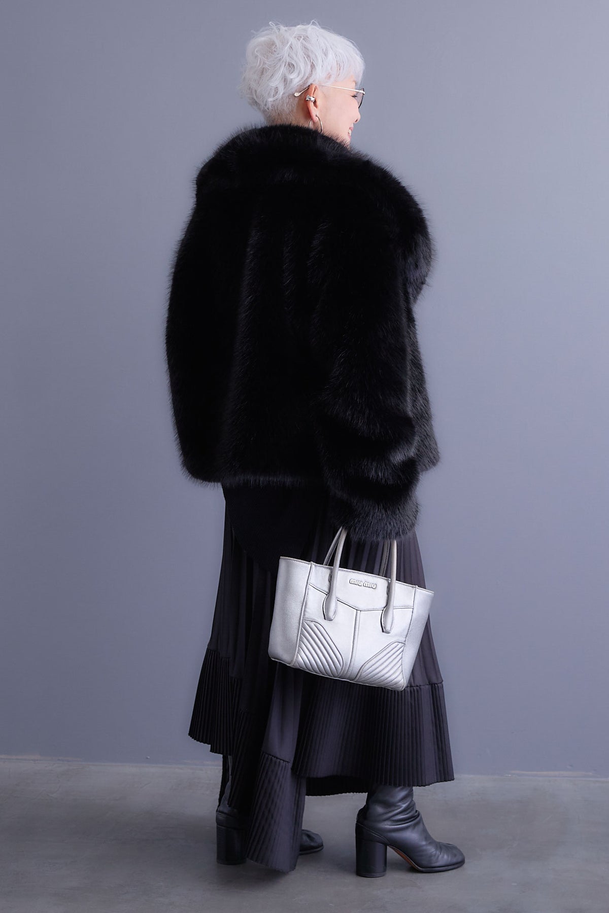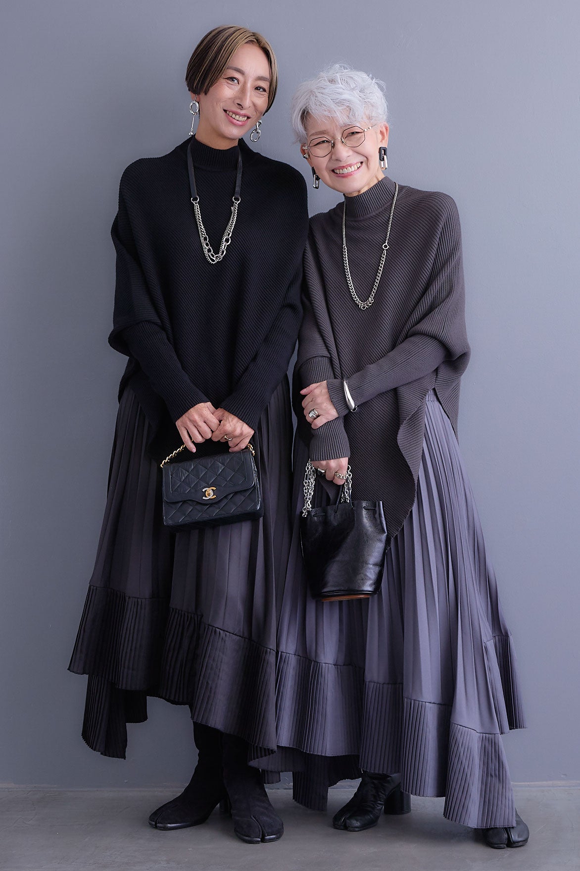 【SET】アシンメトリーオーバーニット+オーバーカラーファーコート+アシンメトリープリーツスカート(3set)