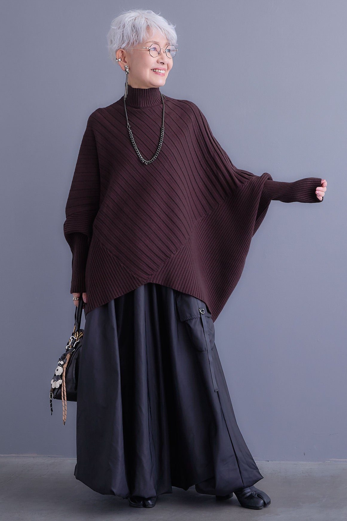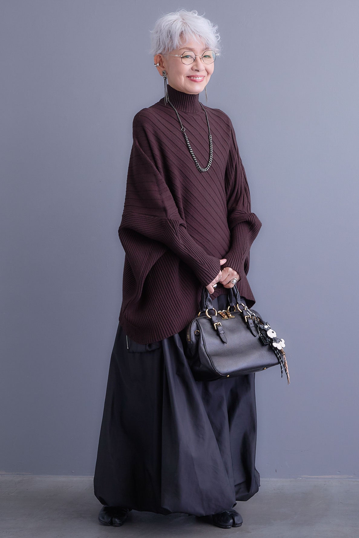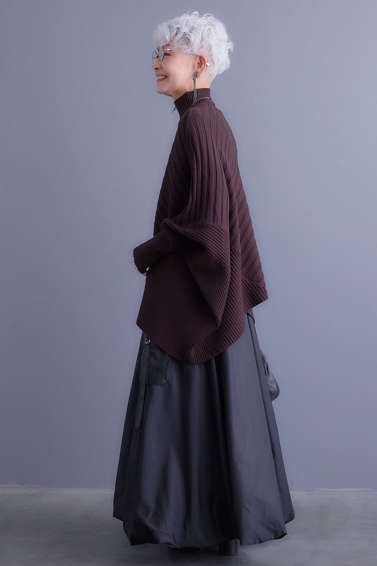 【SET】ワイドリブドルマンニット+バルーンミリタリースカート(2set)