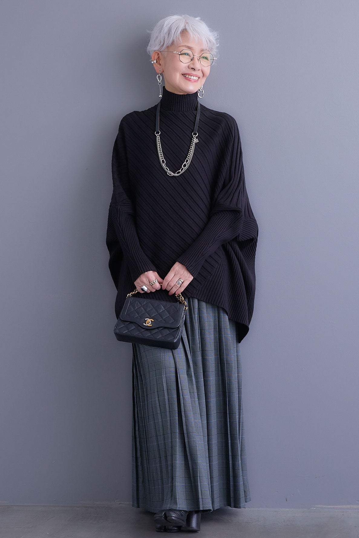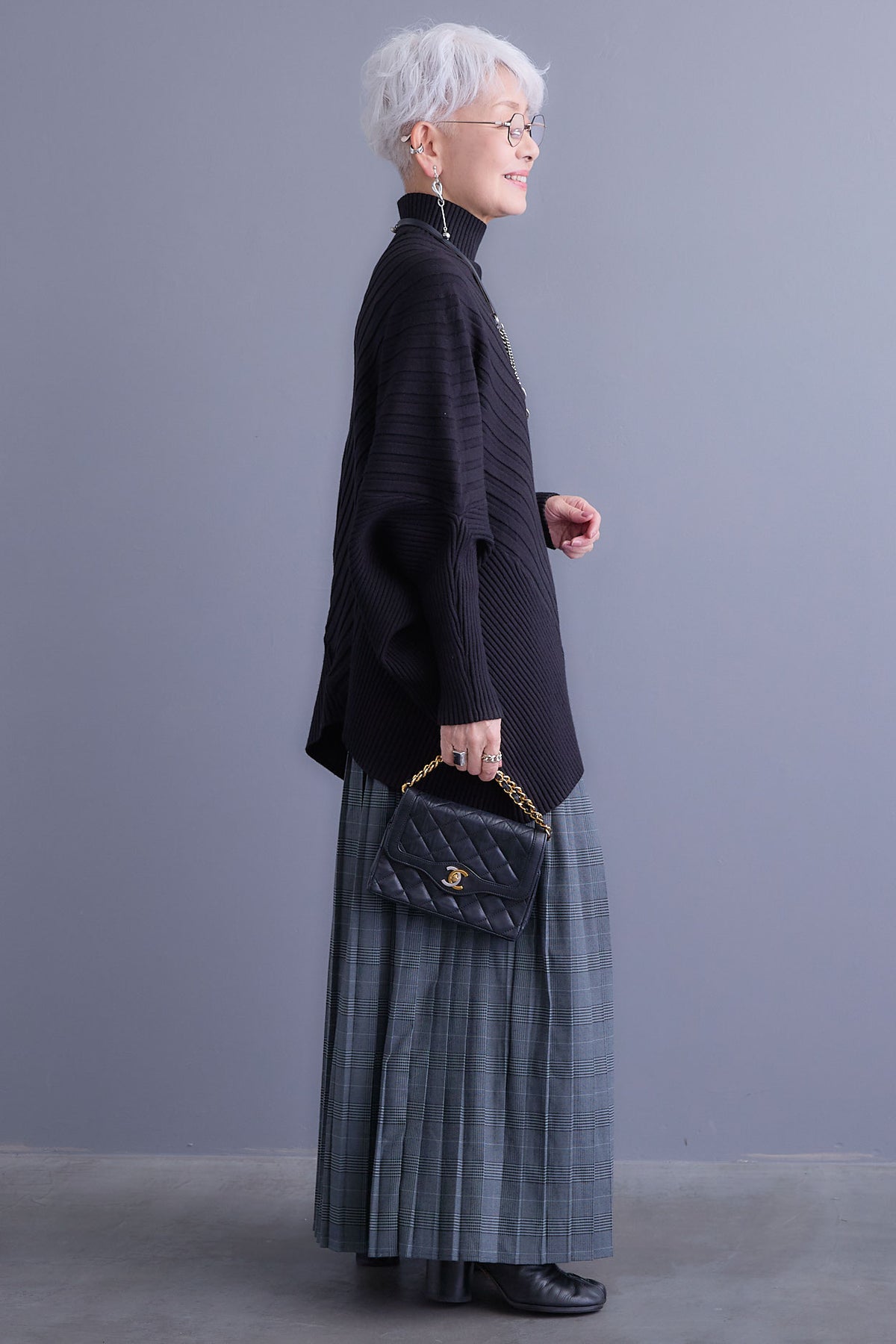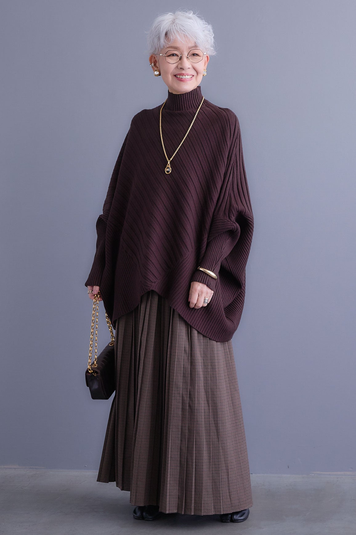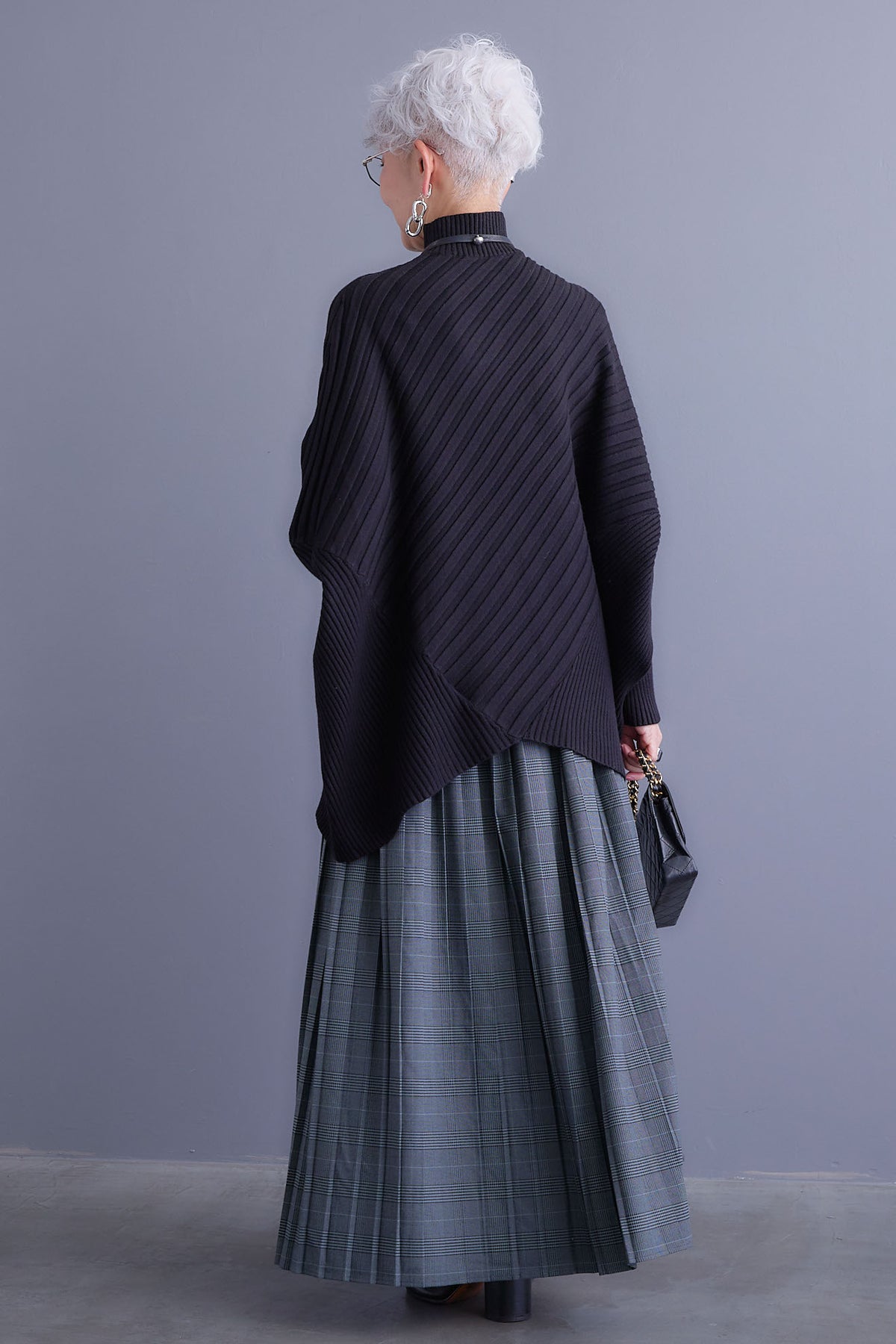 【SET】ワイドリブドルマンニット+グレンチェックプリーツスカート(2set)