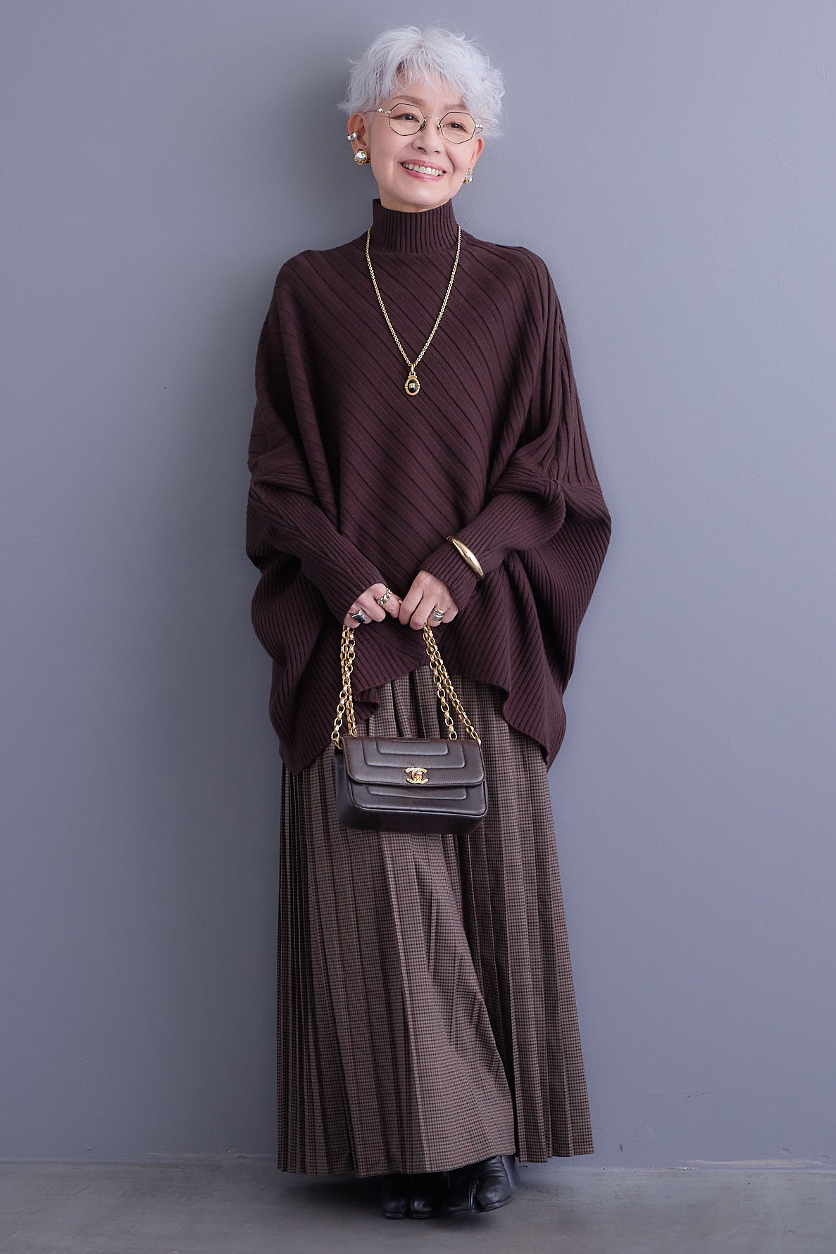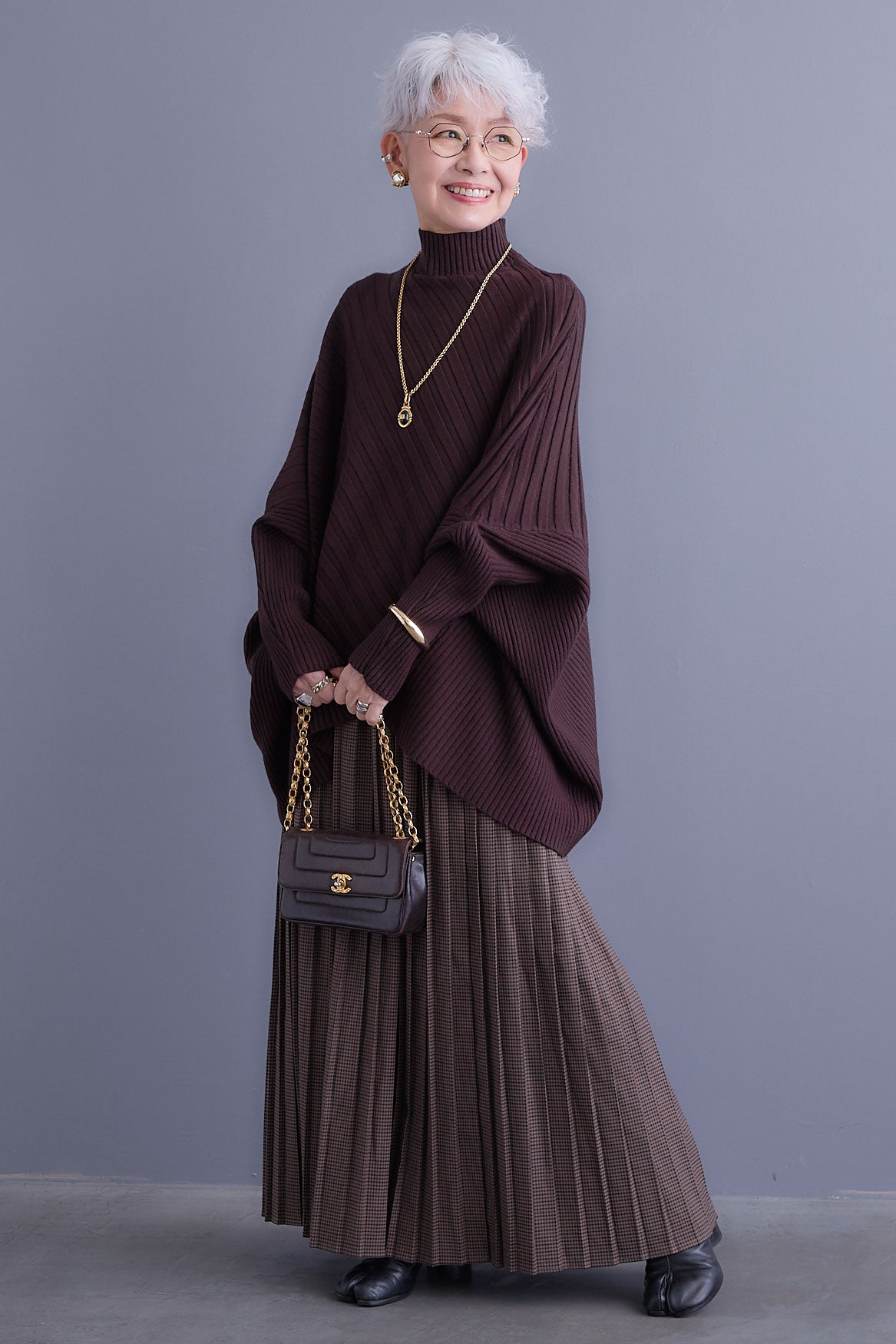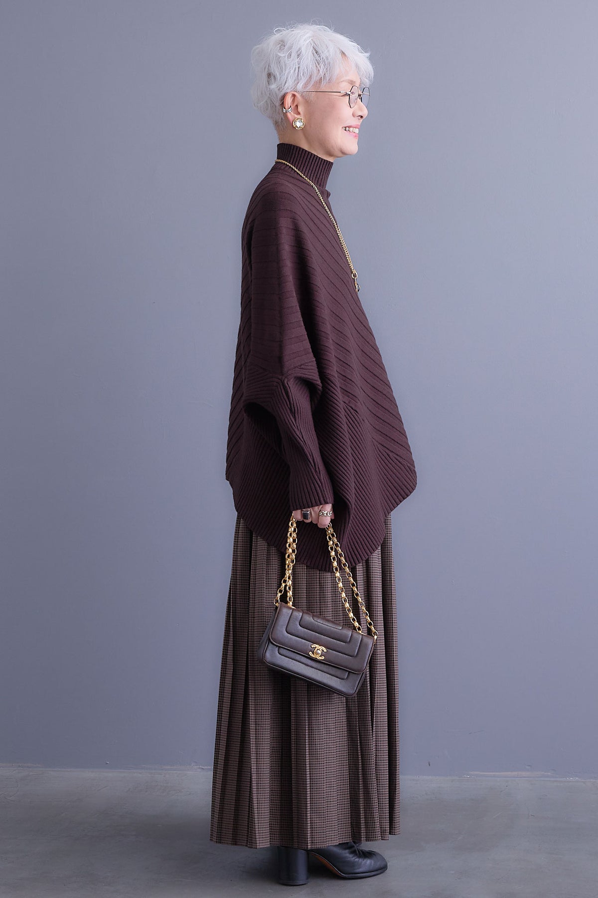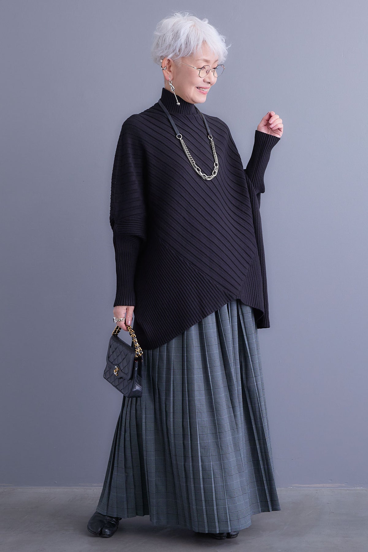 【SET】ワイドリブドルマンニット+グレンチェックプリーツスカート(2set)