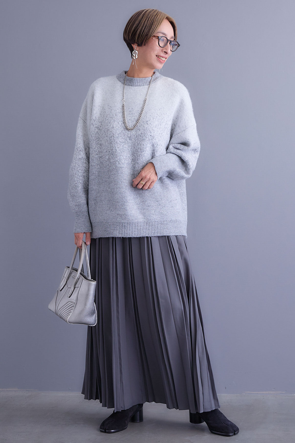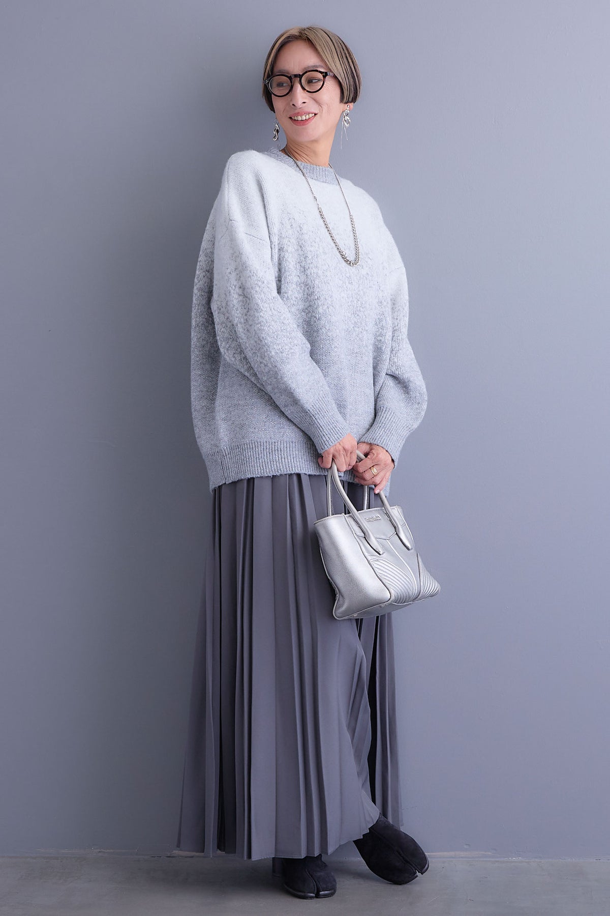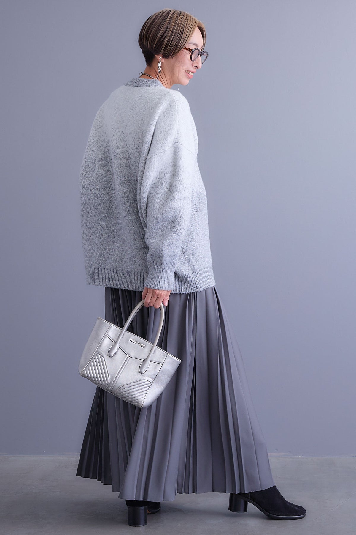 【SET】グラデーションラメクルーネックニット+ダブルプリーツロングスカート(2set)