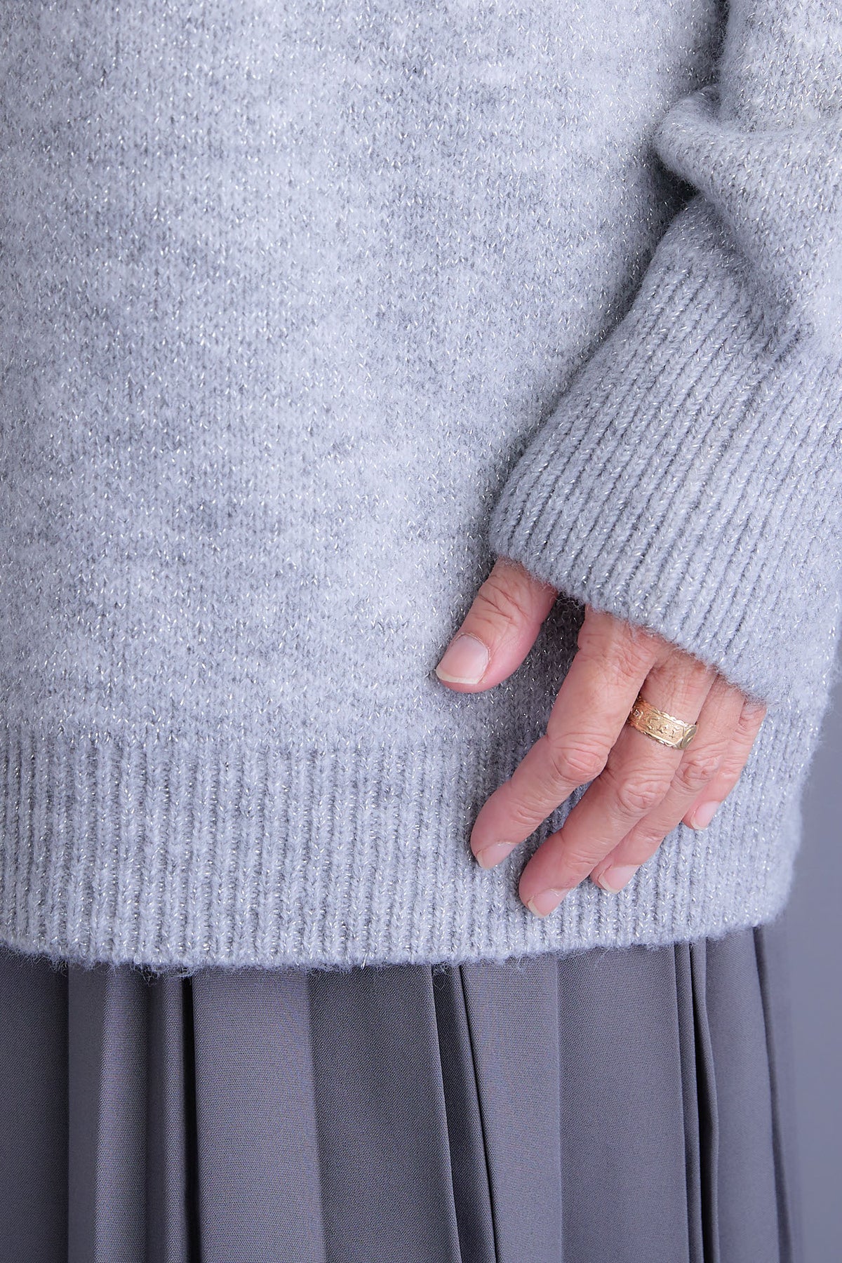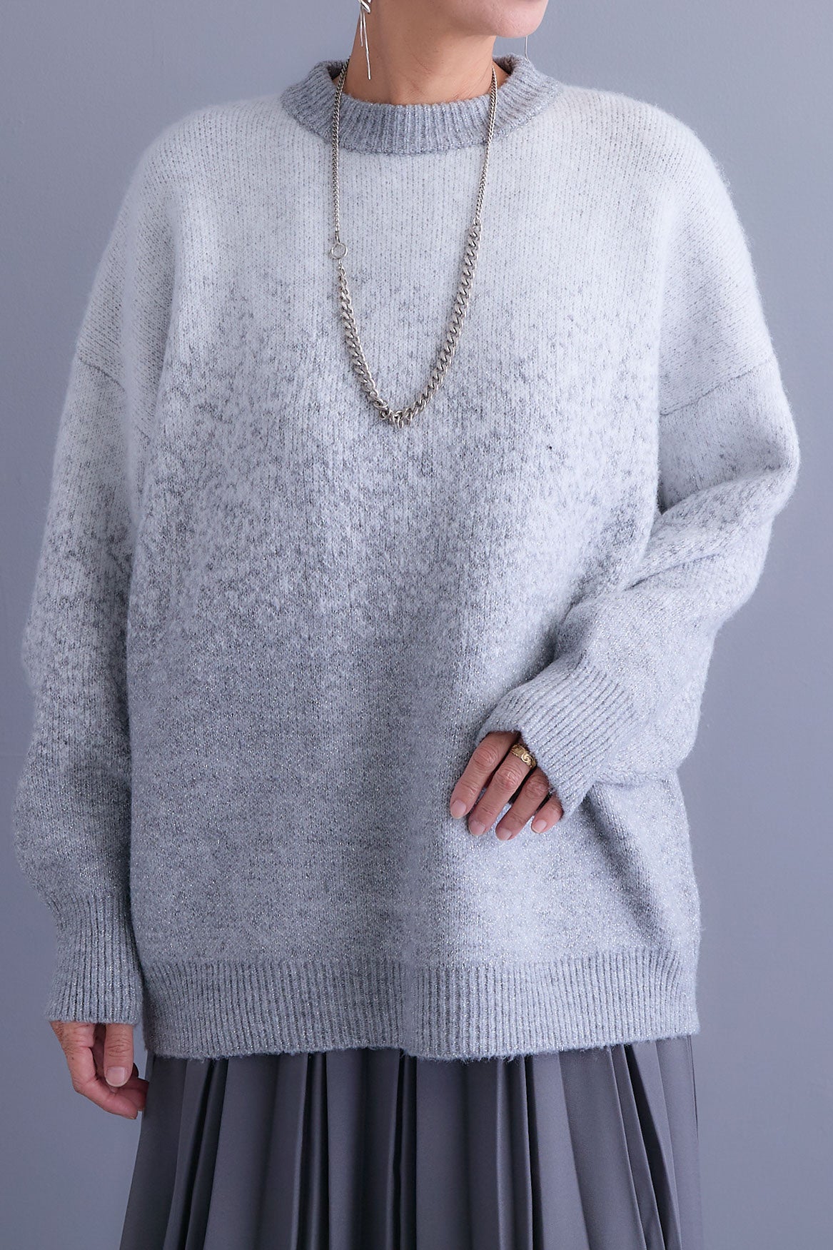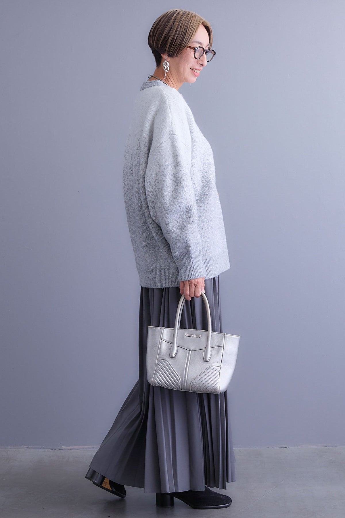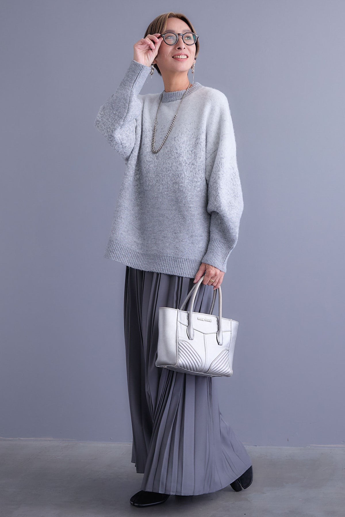 【SET】グラデーションラメクルーネックニット+ダブルプリーツロングスカート(2set)