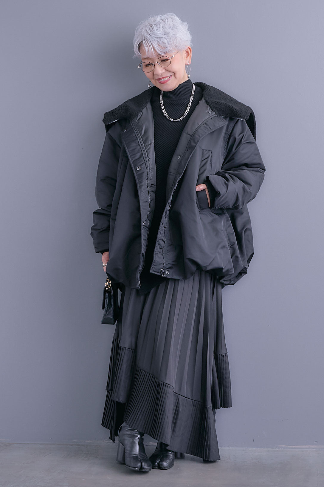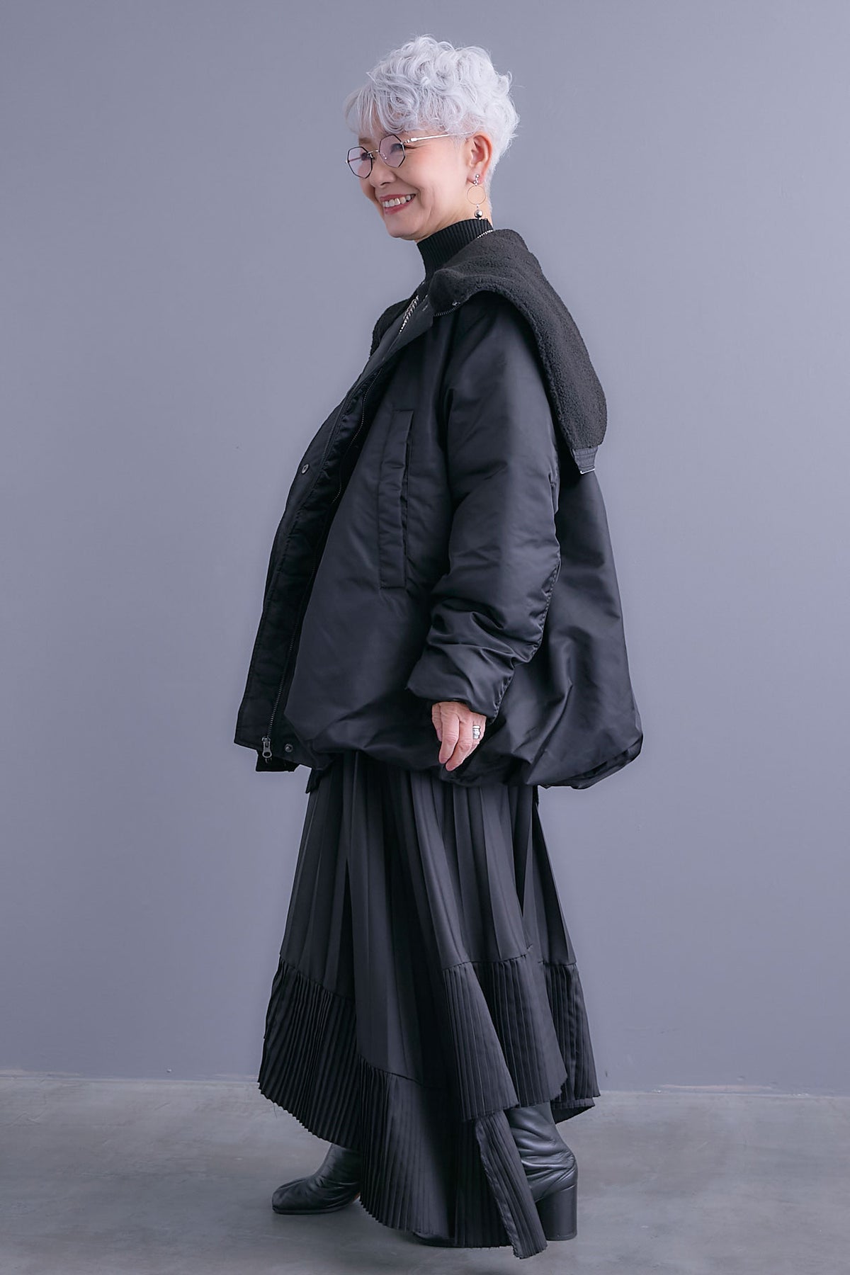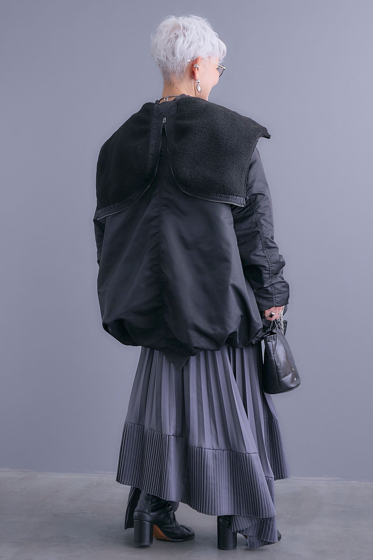 【SET】アシンメトリーオーバーニット+2WAYオーバーカラーN-3Bジャケット+アシンメトリープリーツスカート(3set)