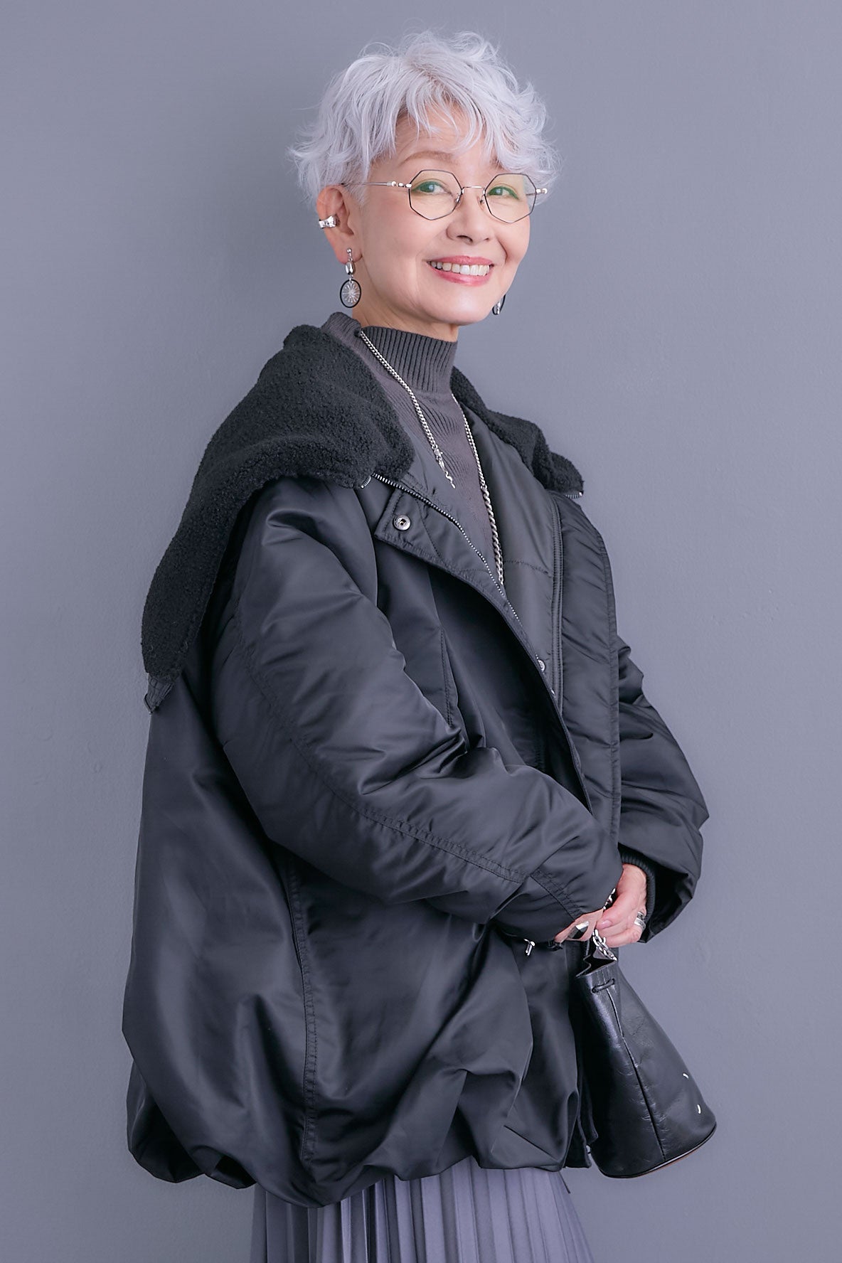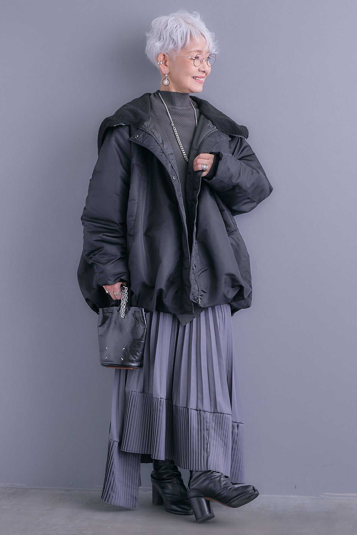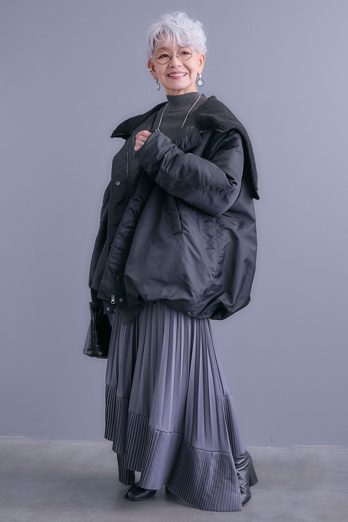【SET】アシンメトリーオーバーニット+2WAYオーバーカラーN-3Bジャケット+アシンメトリープリーツスカート(3set)