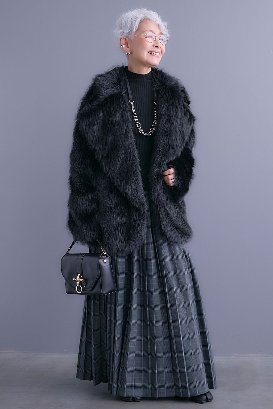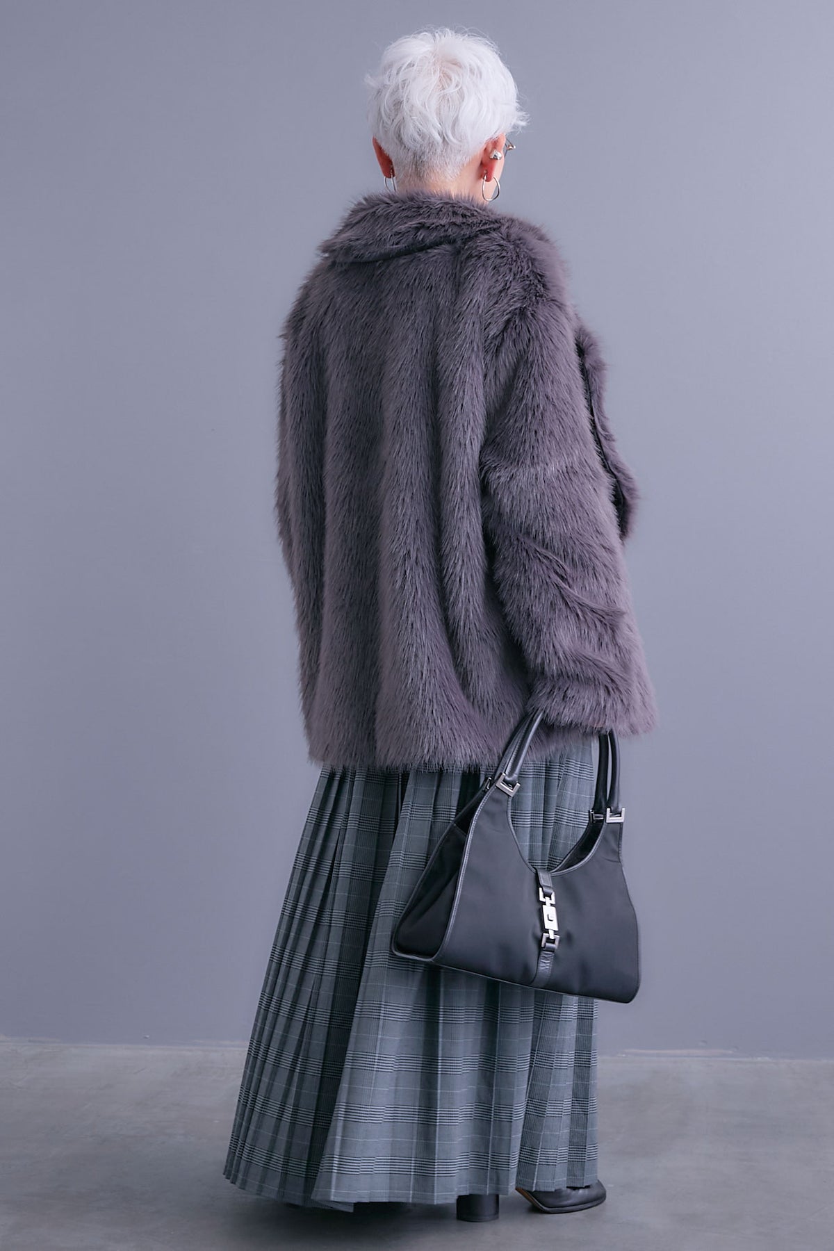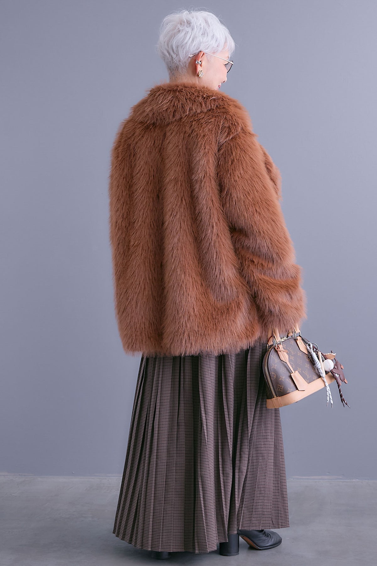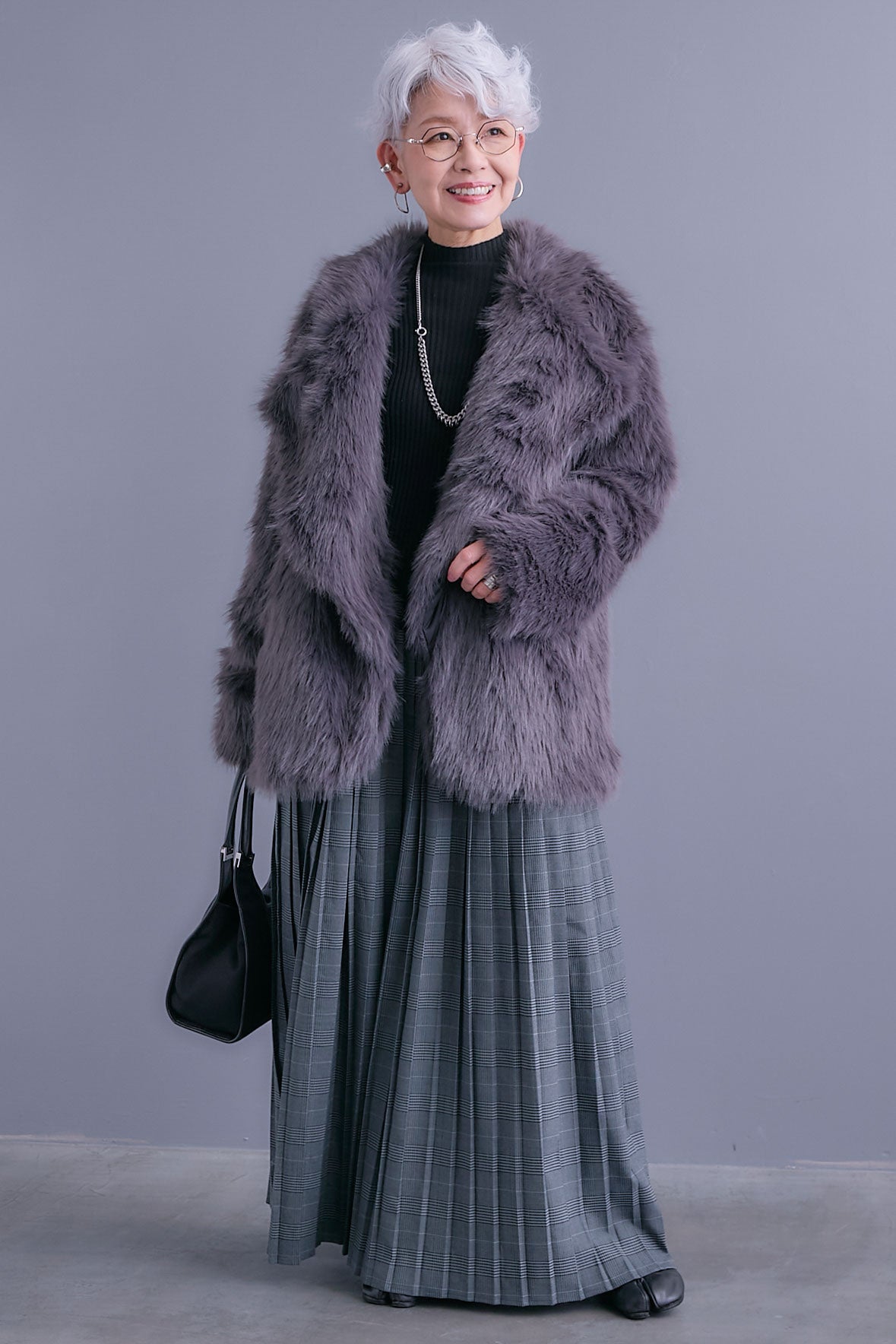 【SET】テーラードカラーファーコート+グレンチェックプリーツスカート(2set)
