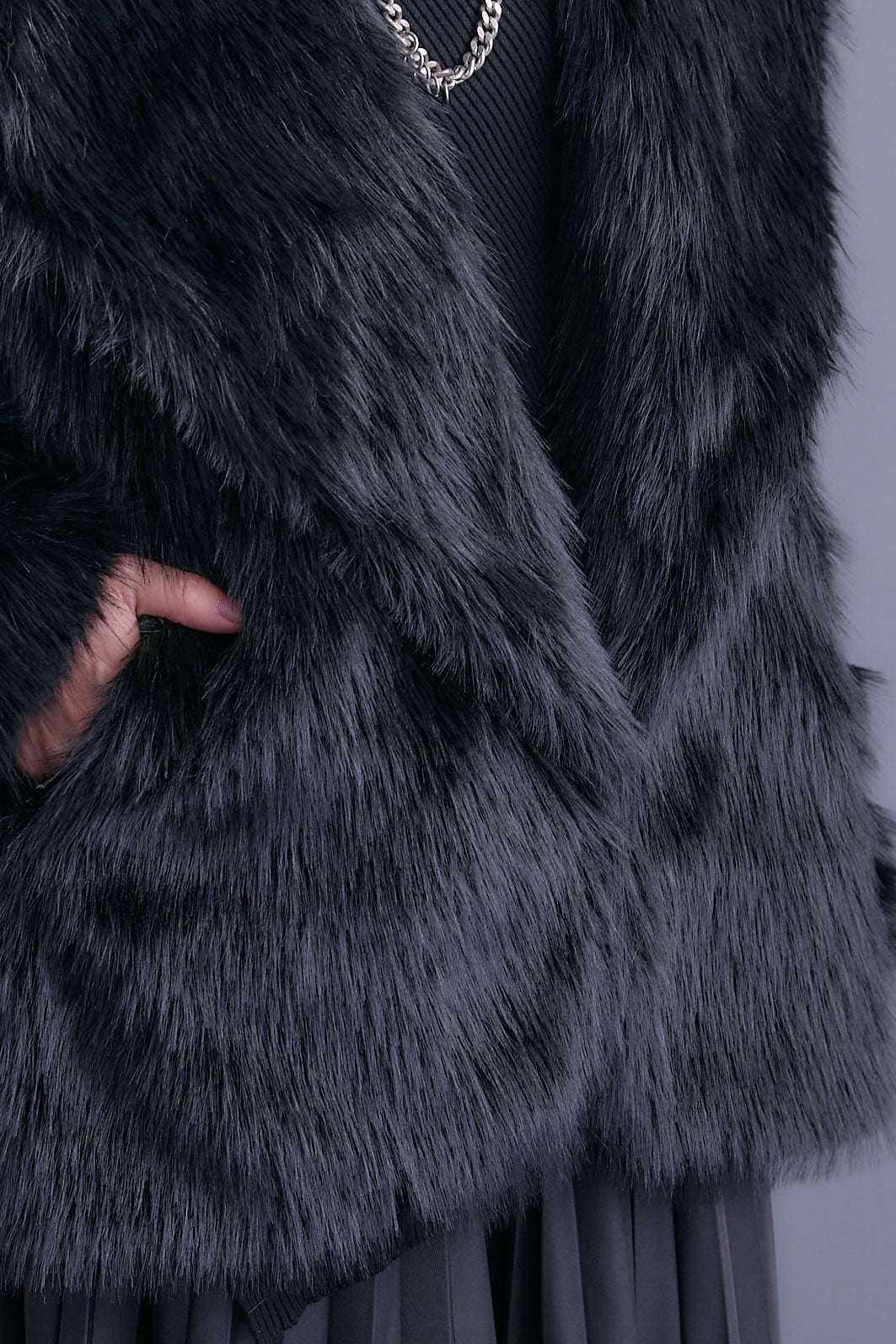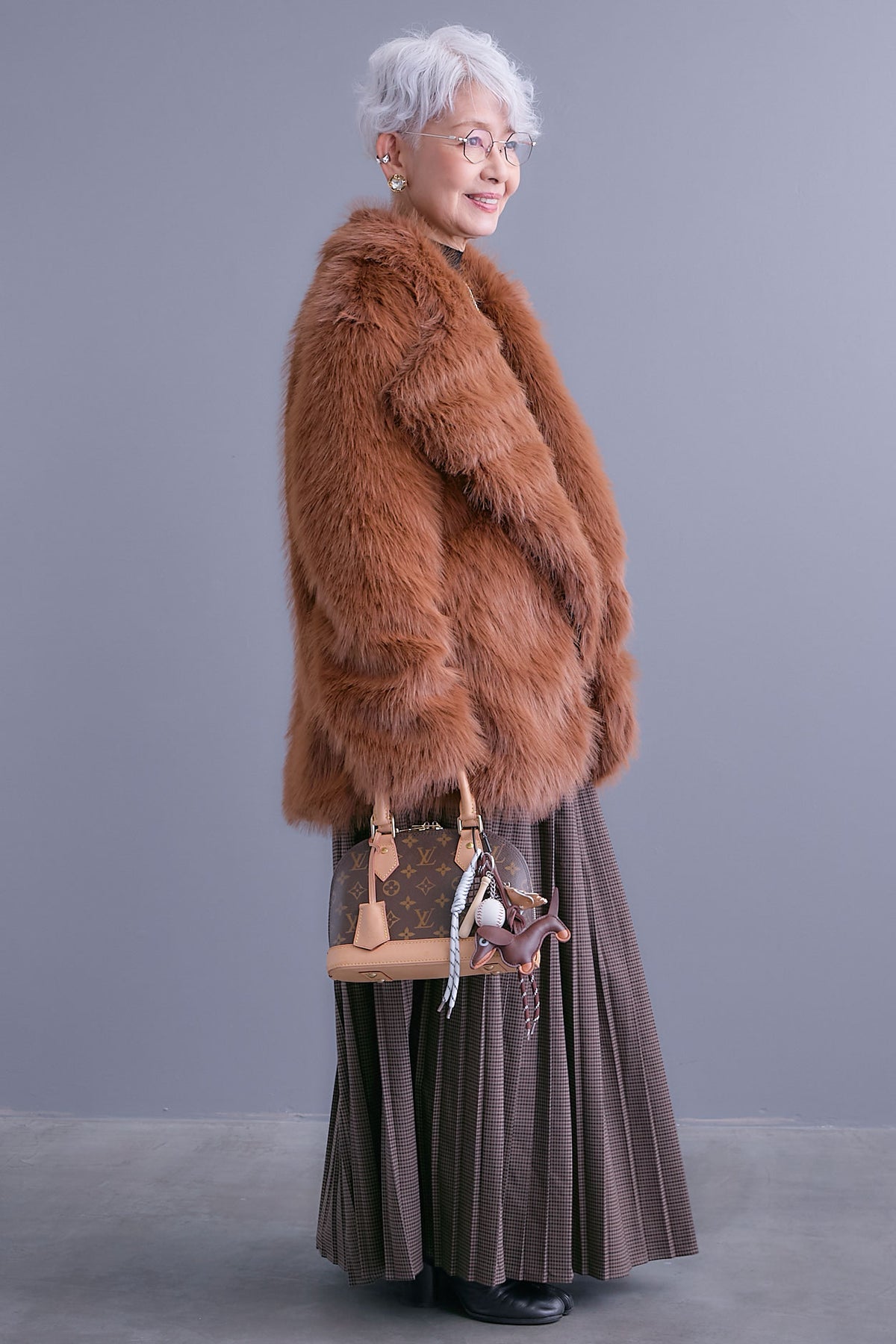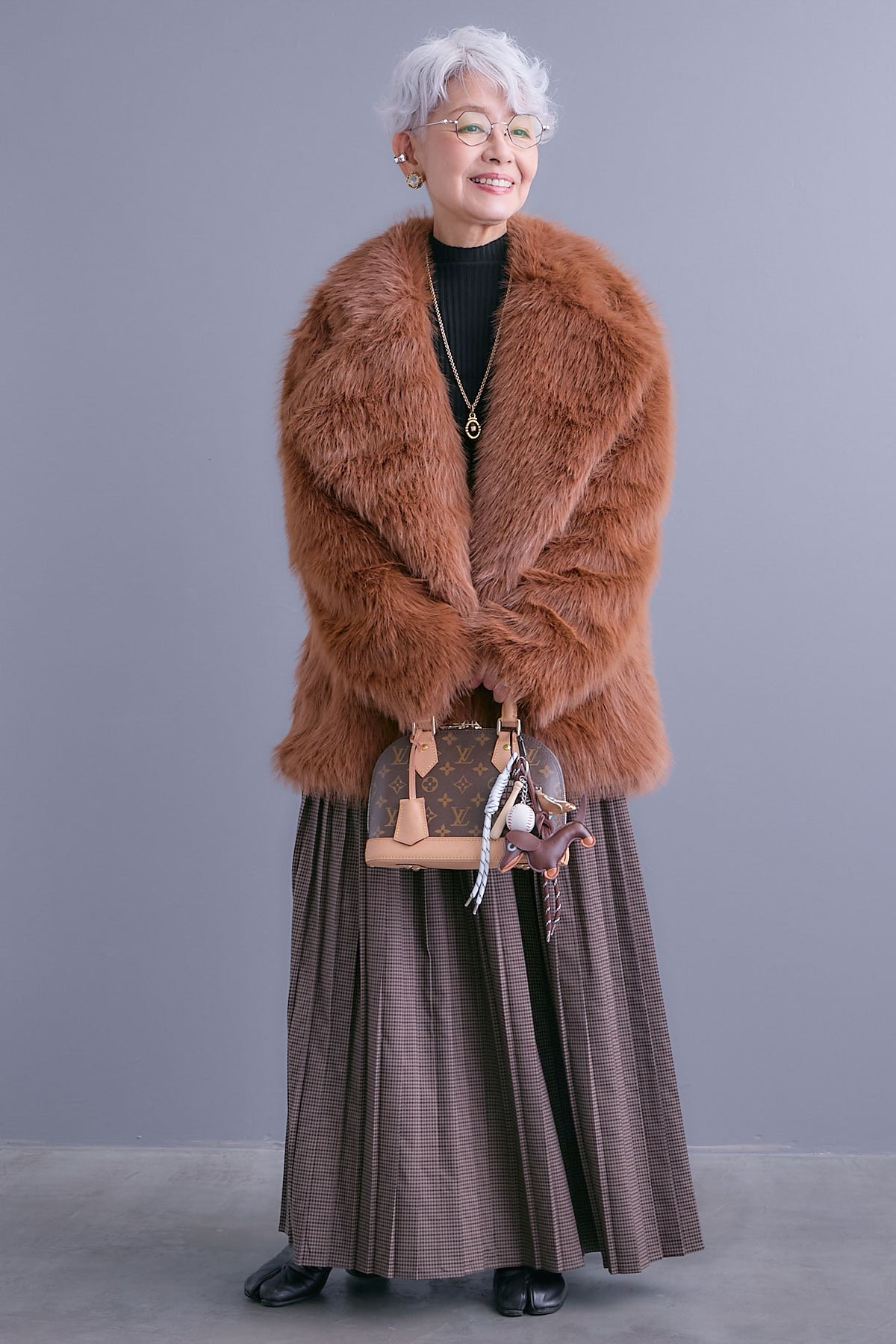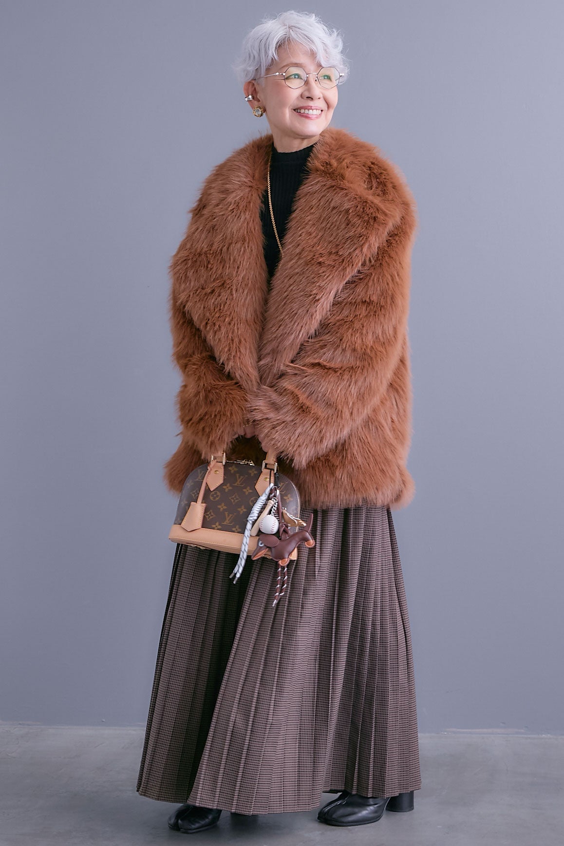 【SET】テーラードカラーファーコート+グレンチェックプリーツスカート(2set)
