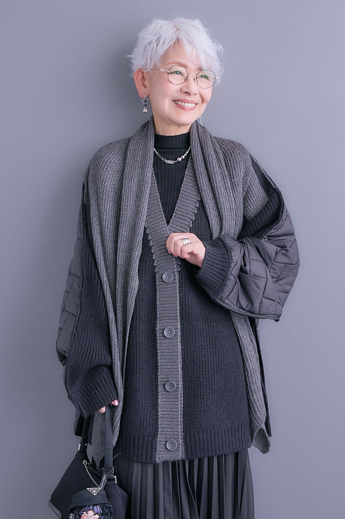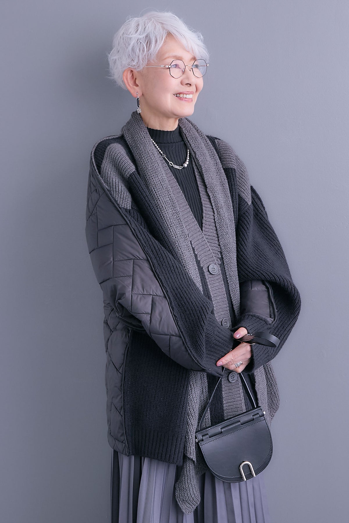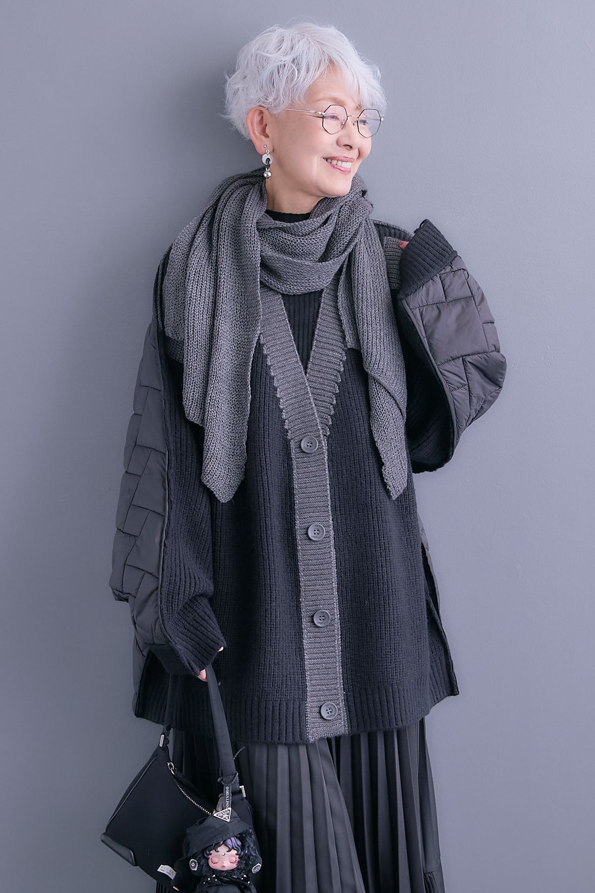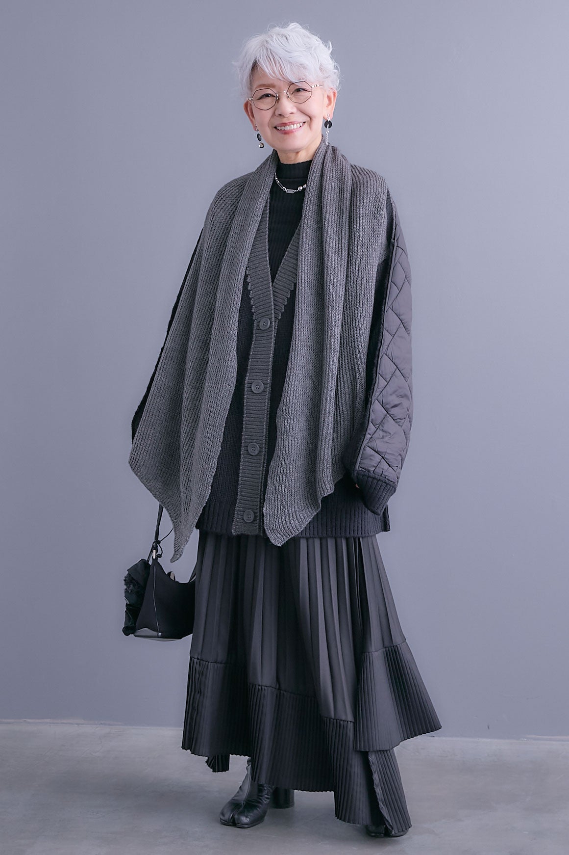 ◆ バックキルティングローゲージニットカーディガン【ストール付き】