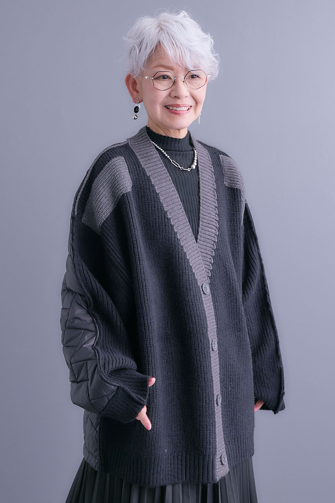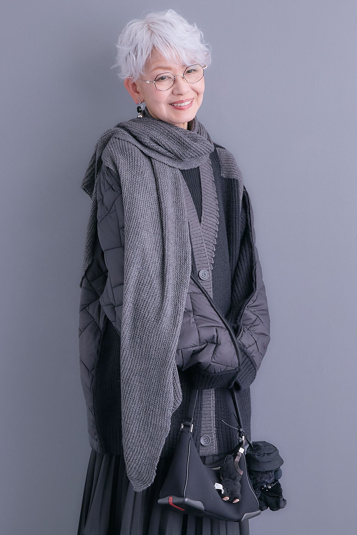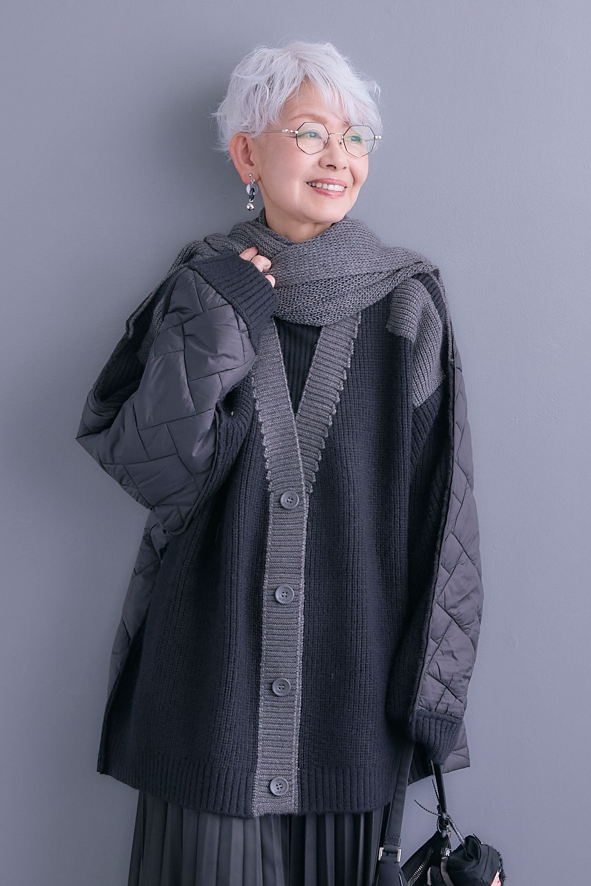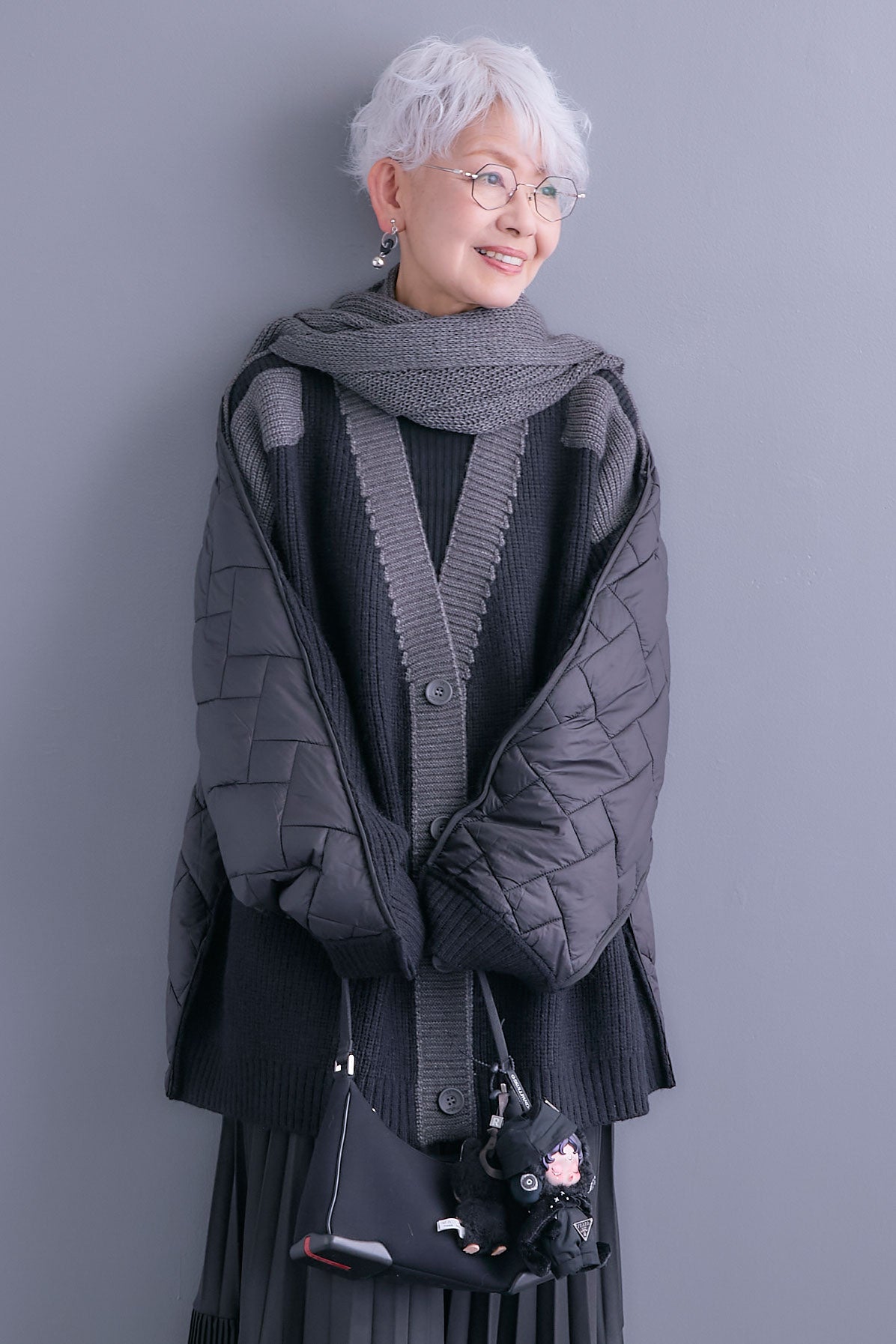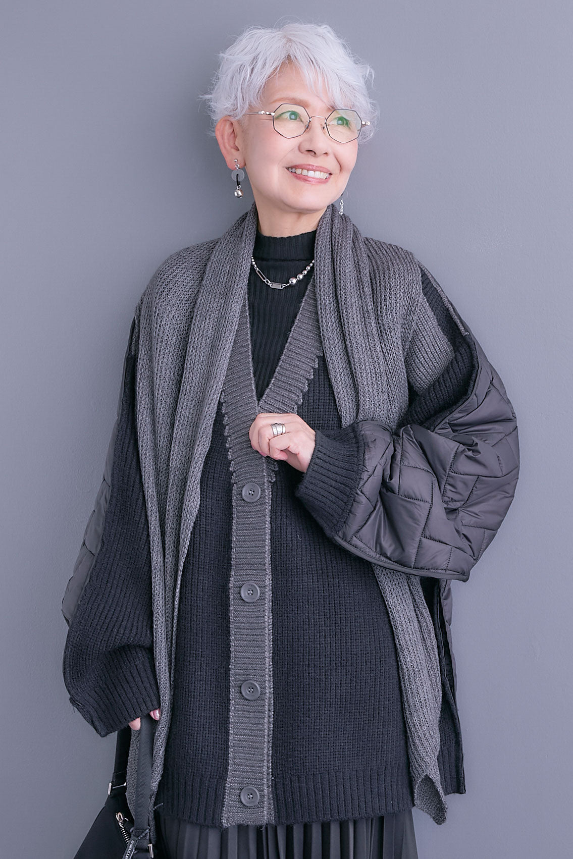 ◆ バックキルティングローゲージニットカーディガン【ストール付き】