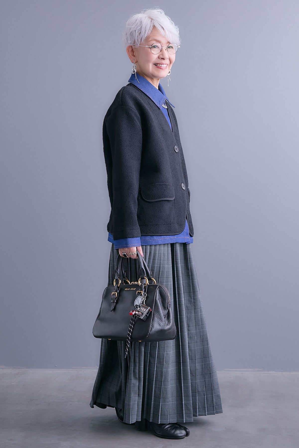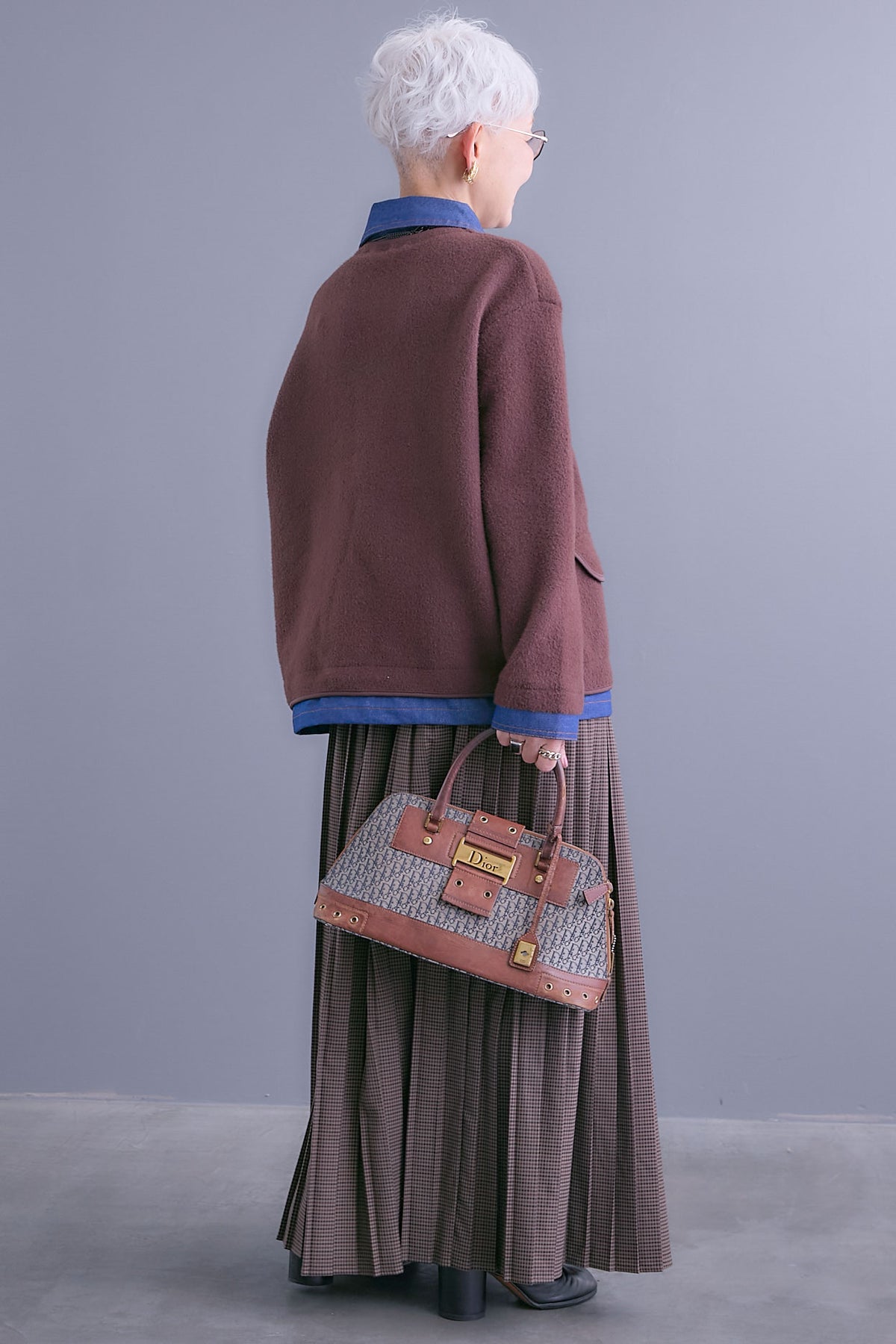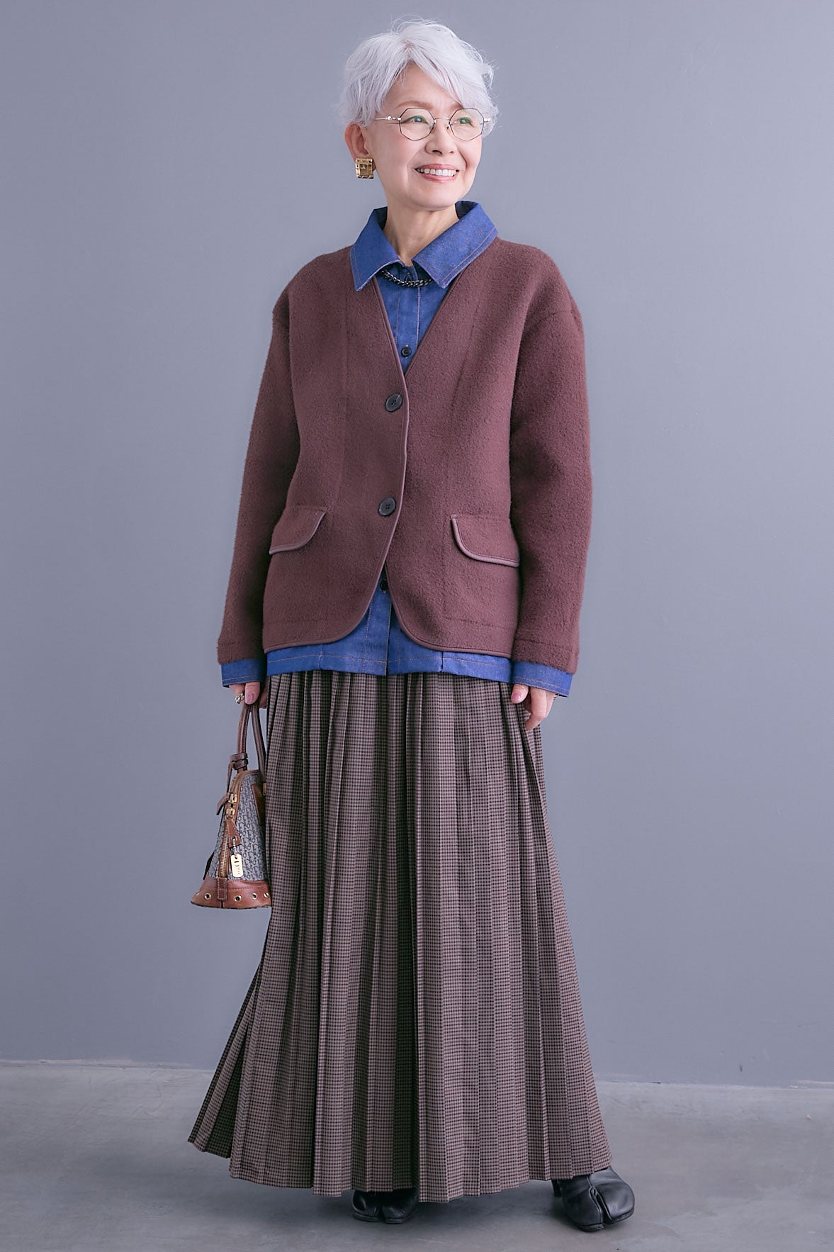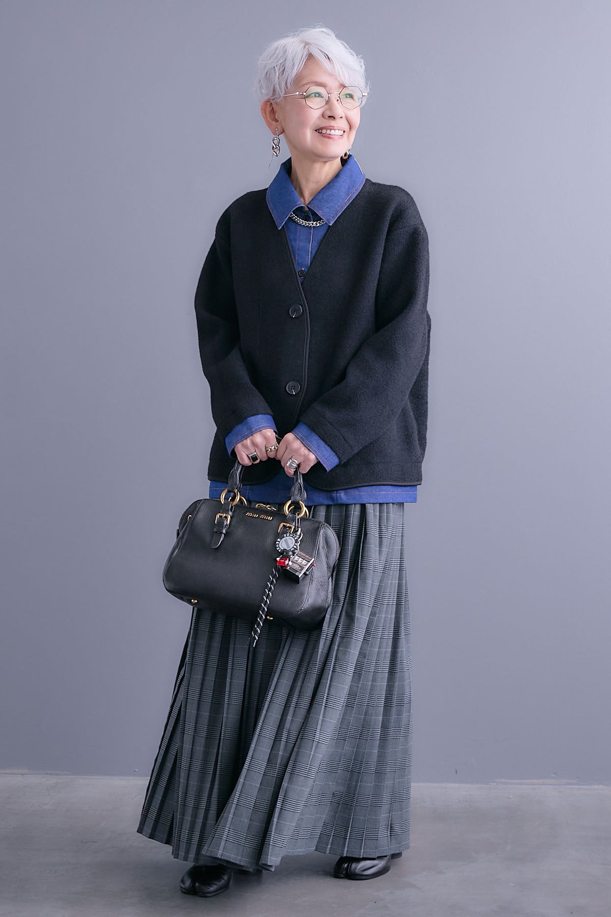 【SET】デニムレイヤードデザインカーディガン+グレンチェックプリーツスカート(2set)