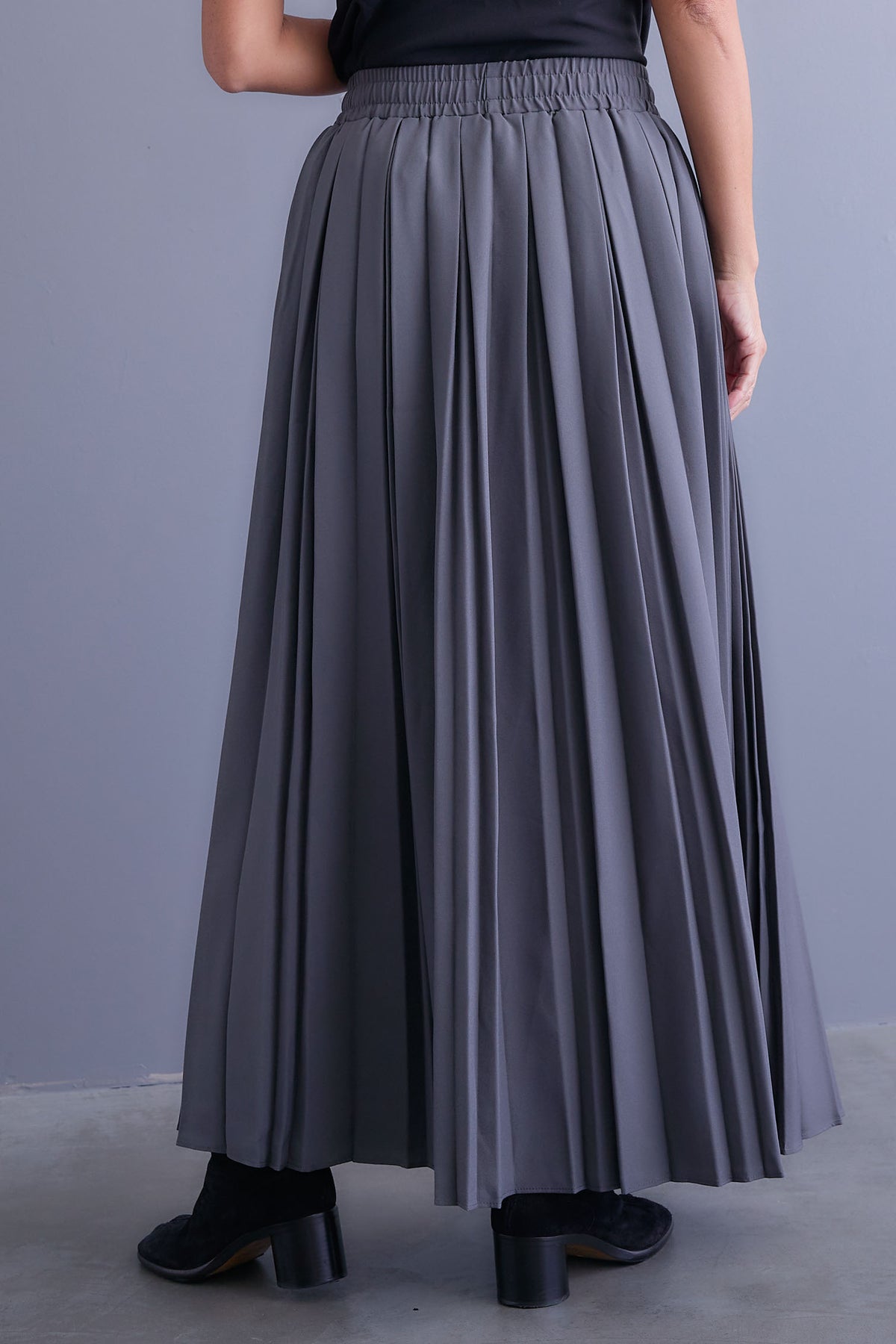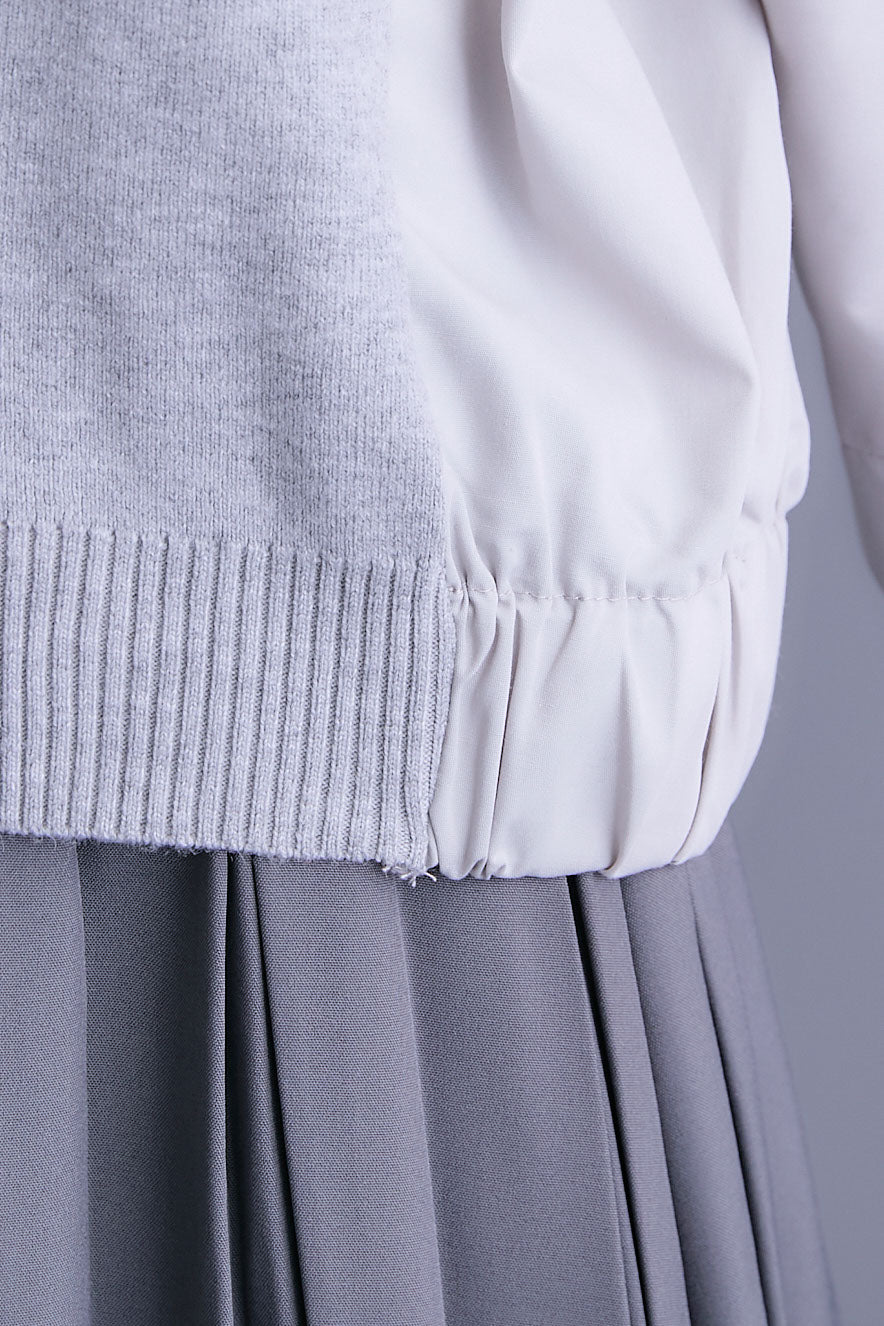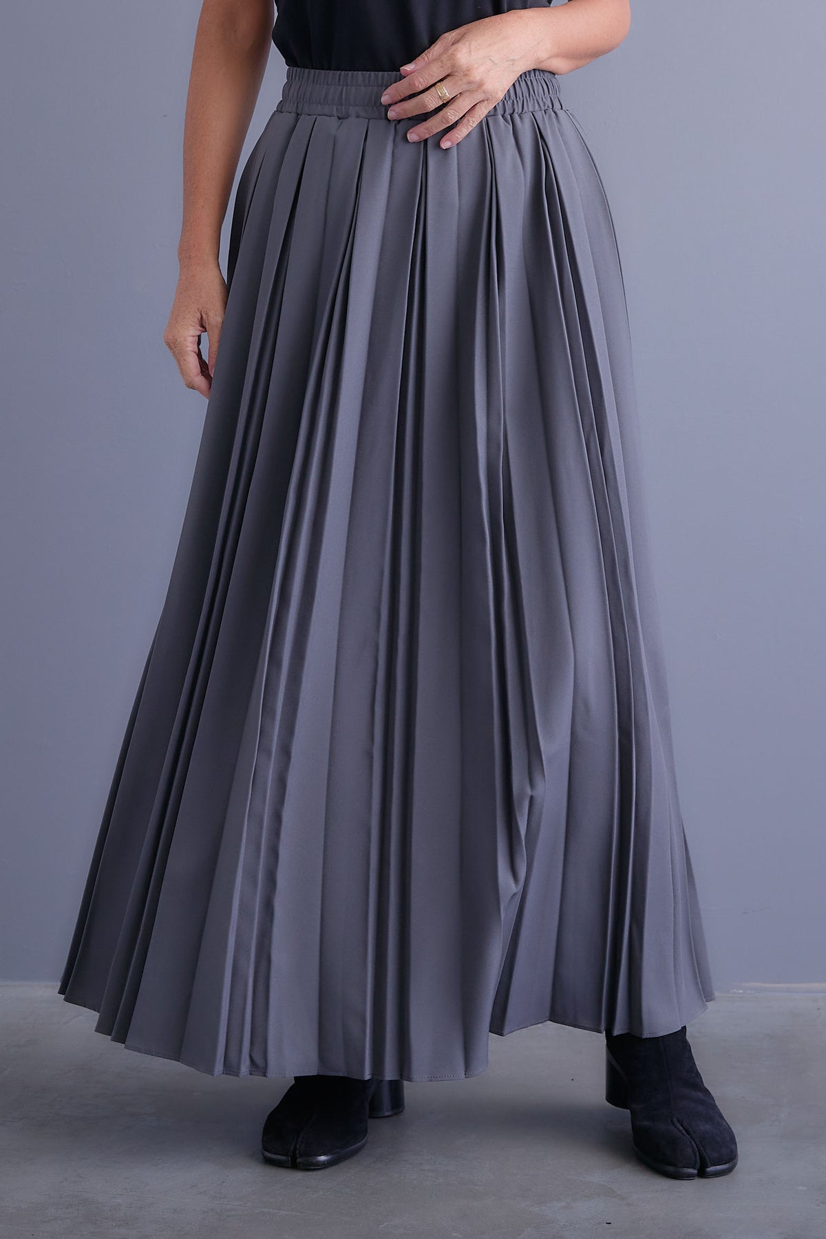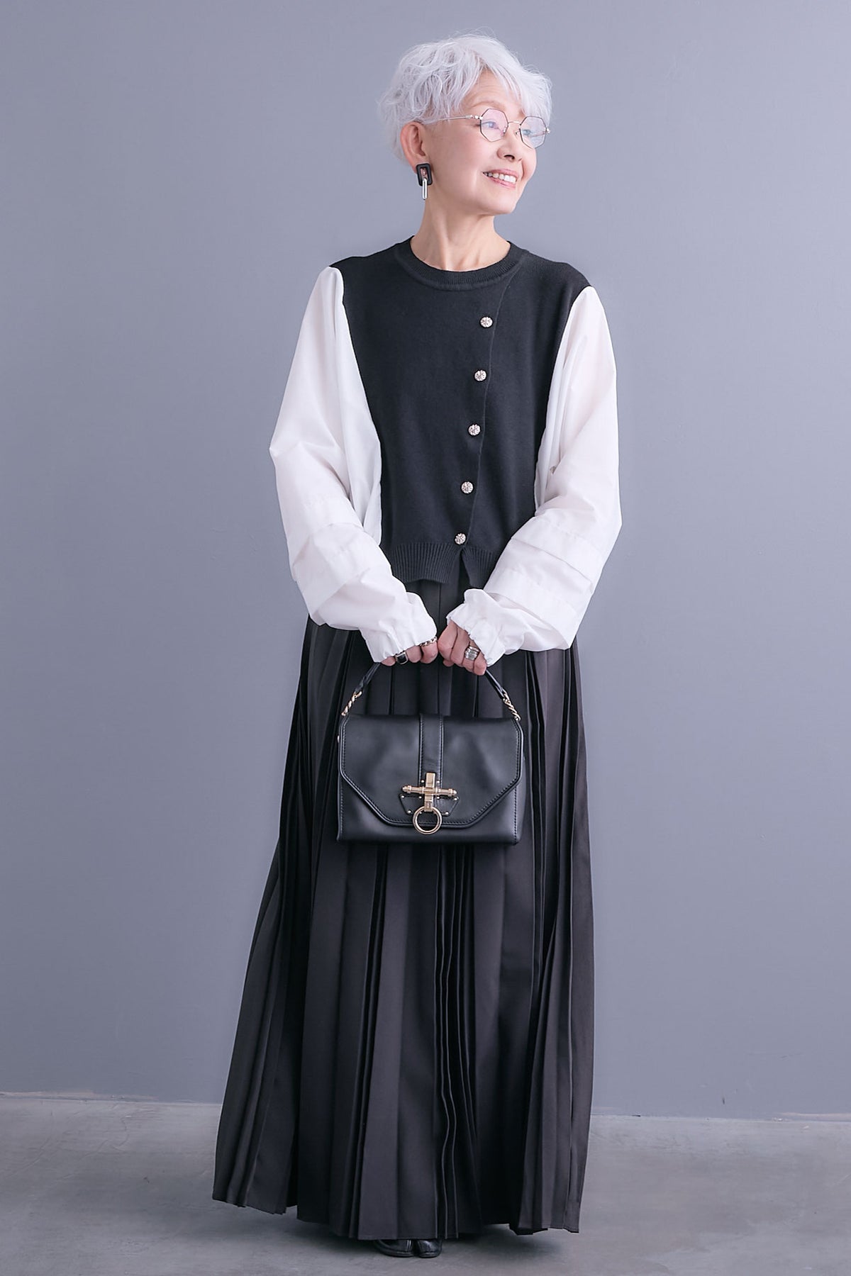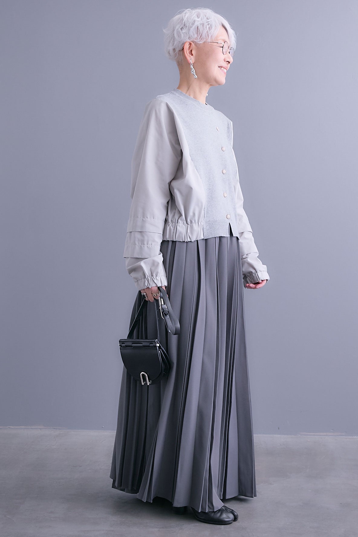 【SET】タックスリーブシャツニットコンビプルオーバー+ダブルプリーツロングスカート(2set)