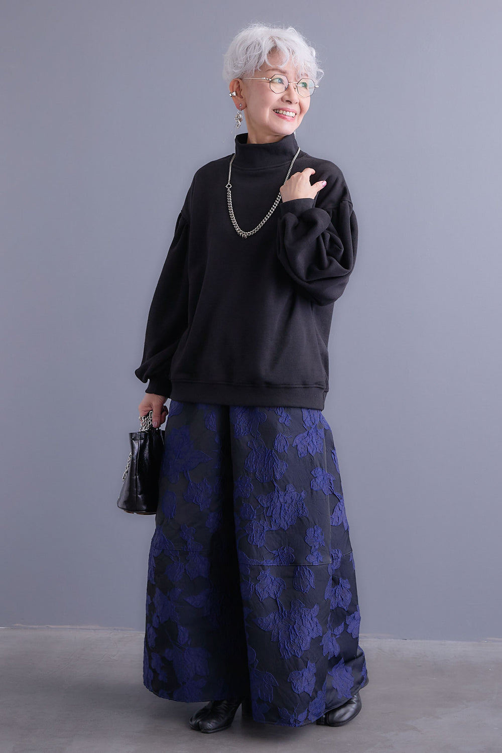 【SET】ボリュームスリーブモックネックプルオーバー+ジャガードフラワースカート(2set)