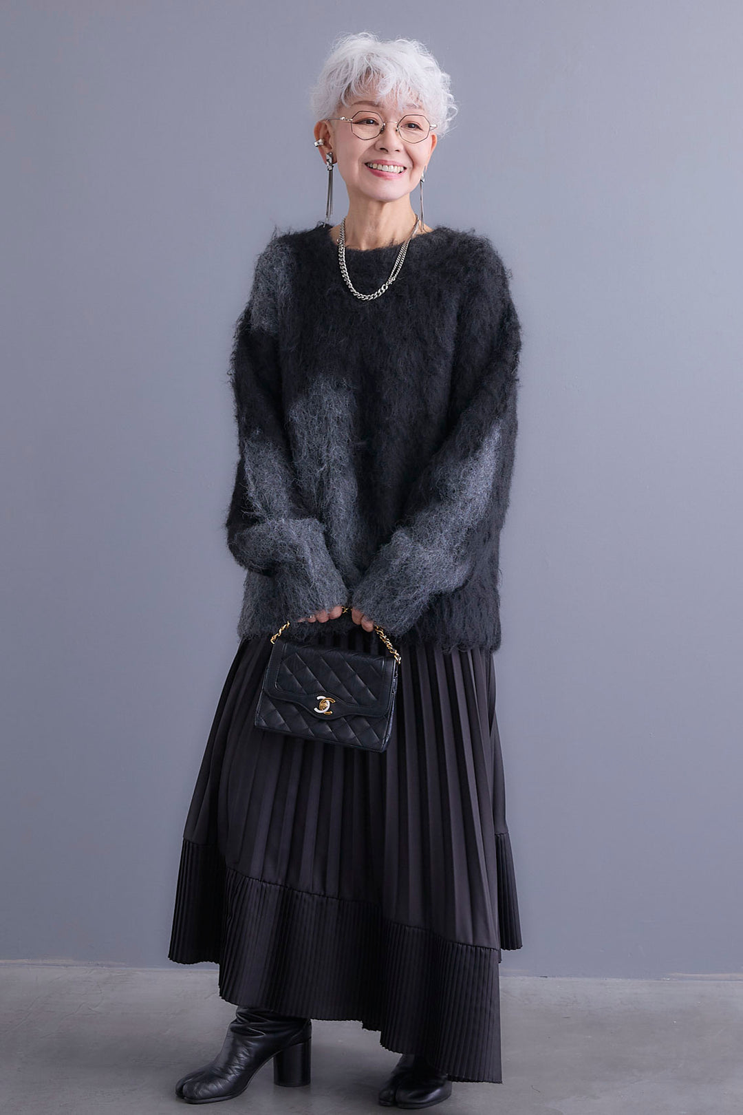 【SET】グラデーションラメキーネックニット+ダブルプリーツロングスカート(2set)