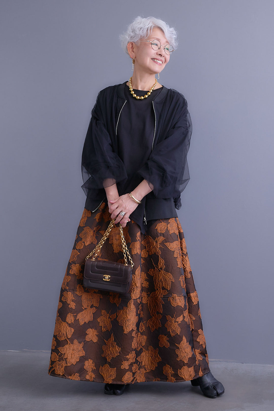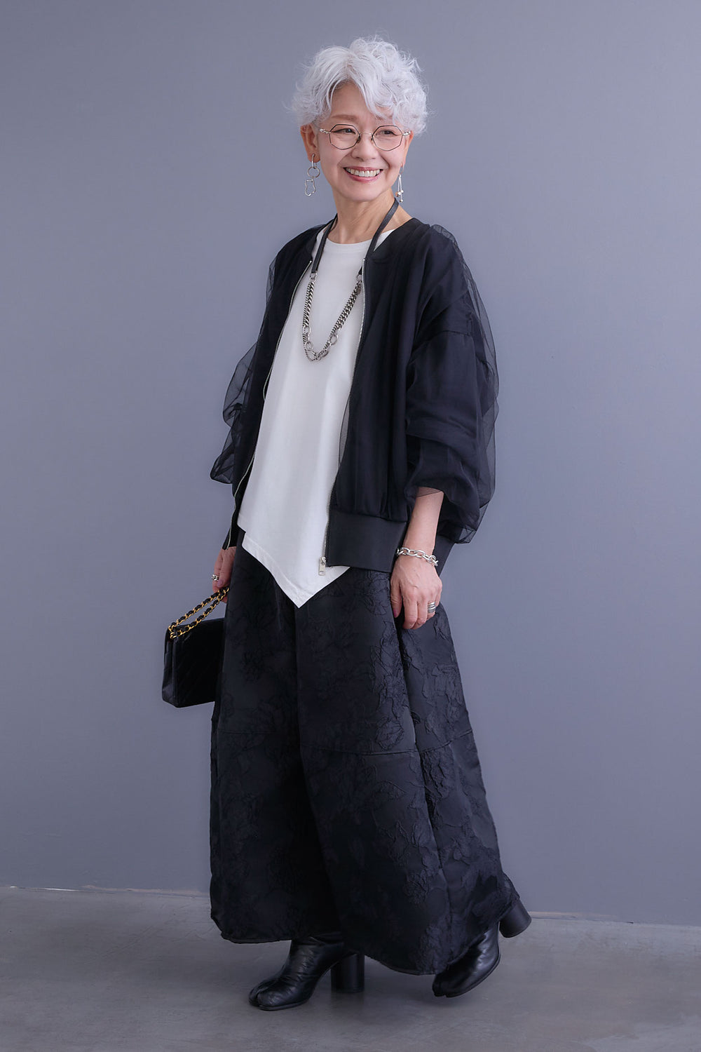 【SET】アシンメトリーロンT+オーバーチュールレイヤードブルゾン+ジャガードフラワースカート(3set)