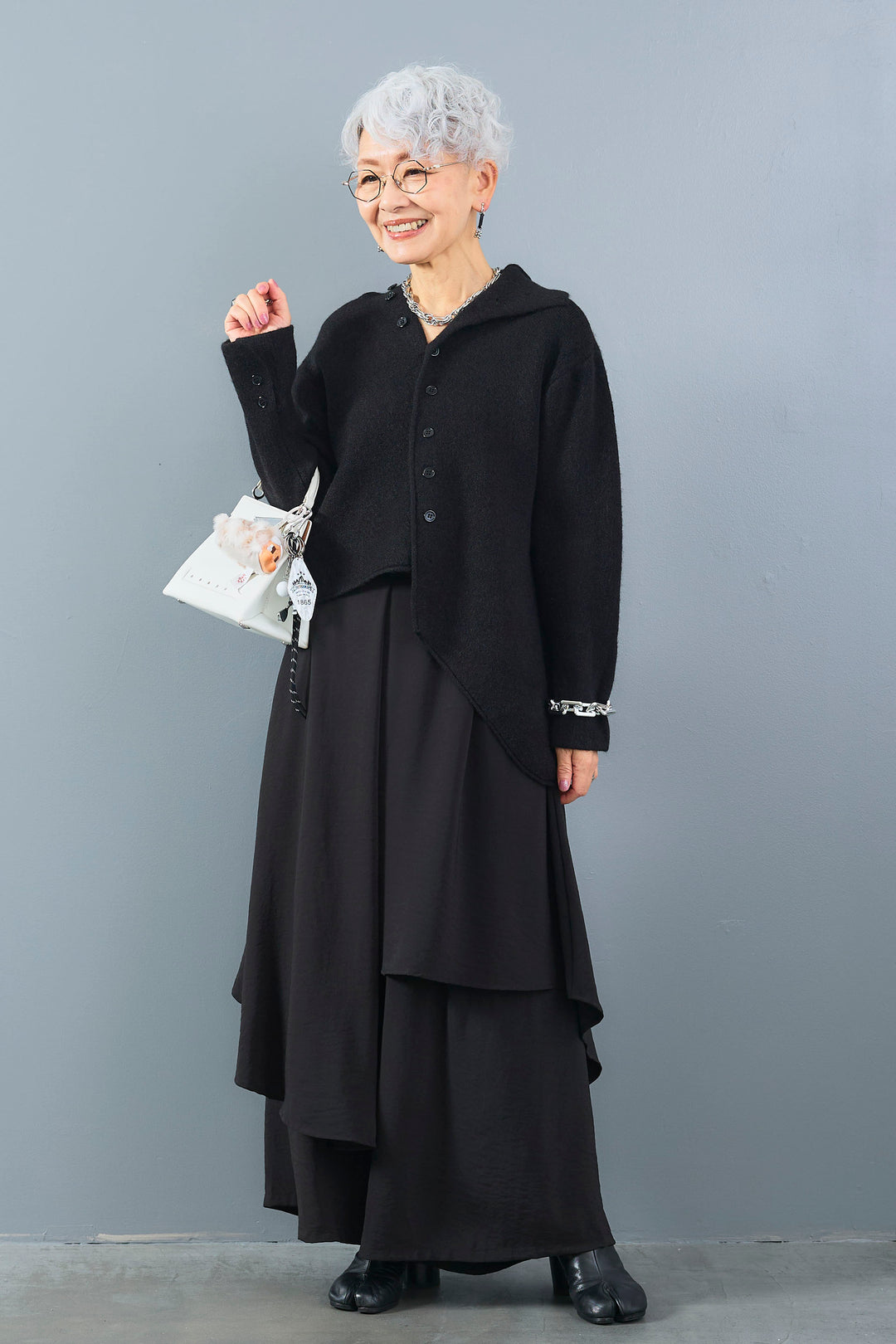 【SET】アシメハイネックボタンニット+アシメレイヤードワイドパンツ(2set)