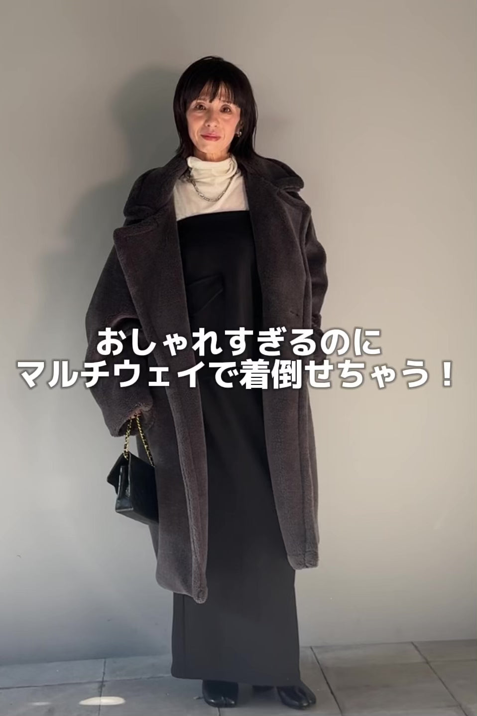 【SET】シームレスタートルトップス+マルチWAYナロースカート+テディボアロングコート(3set)
