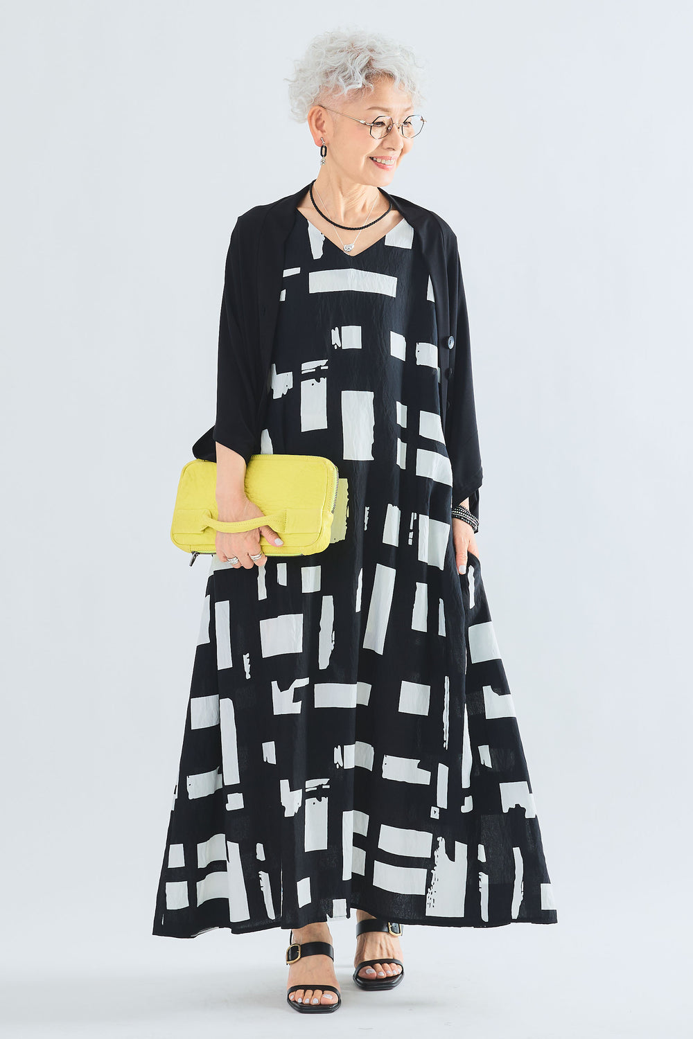 【SET】マルチスクエアモノトーンノースリーブワンピース+サマーライトドルマンカーデ(2set)