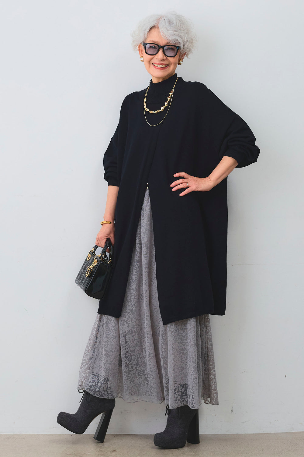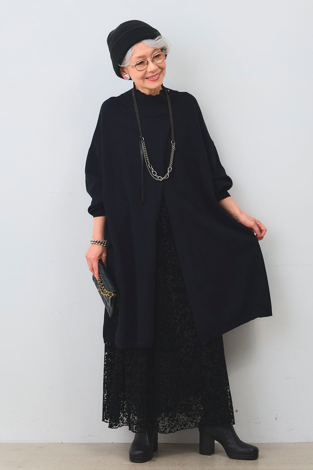 【SET】アシンメトリーハイネックニット+チュールロングスカート(2set)