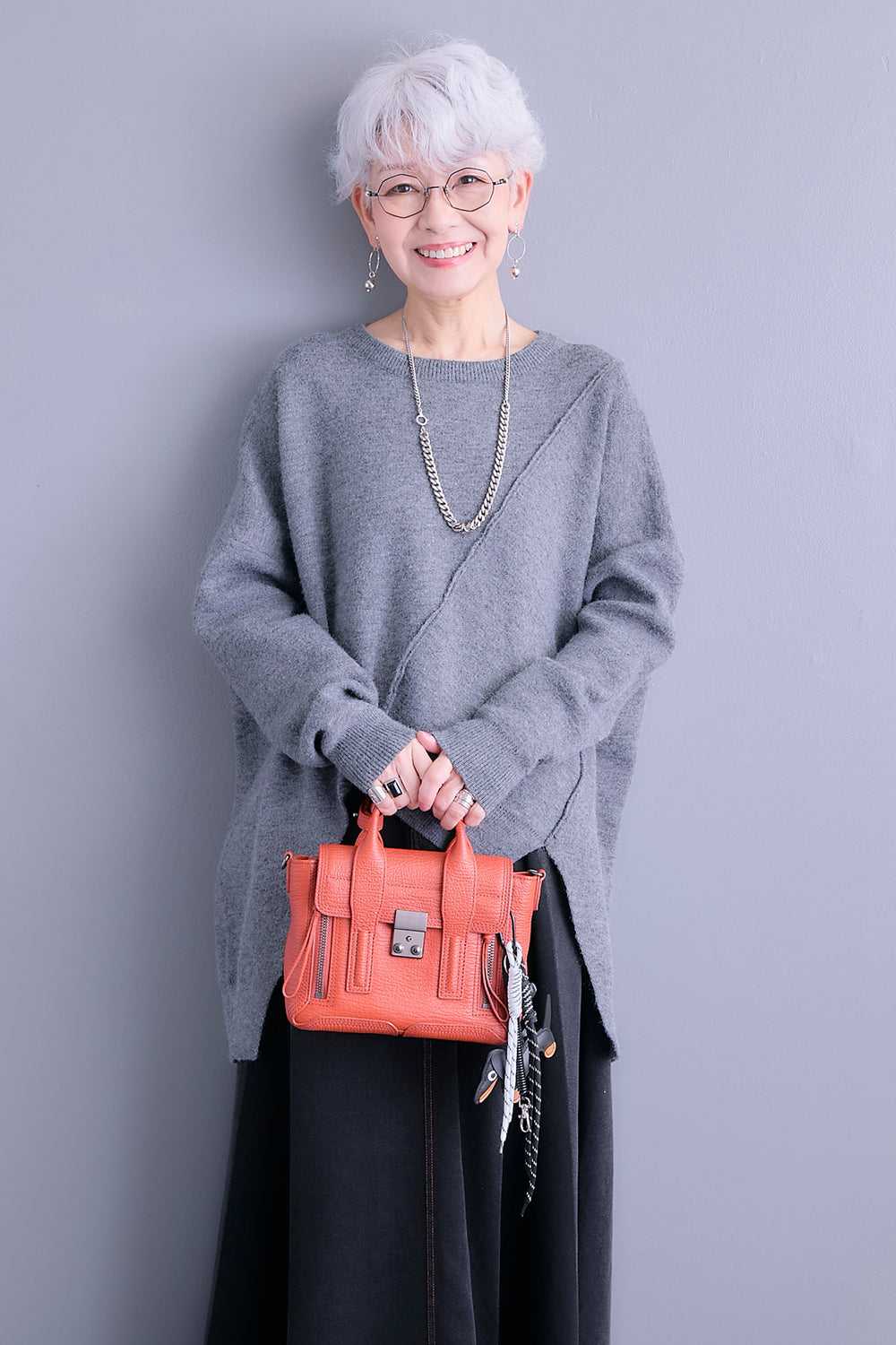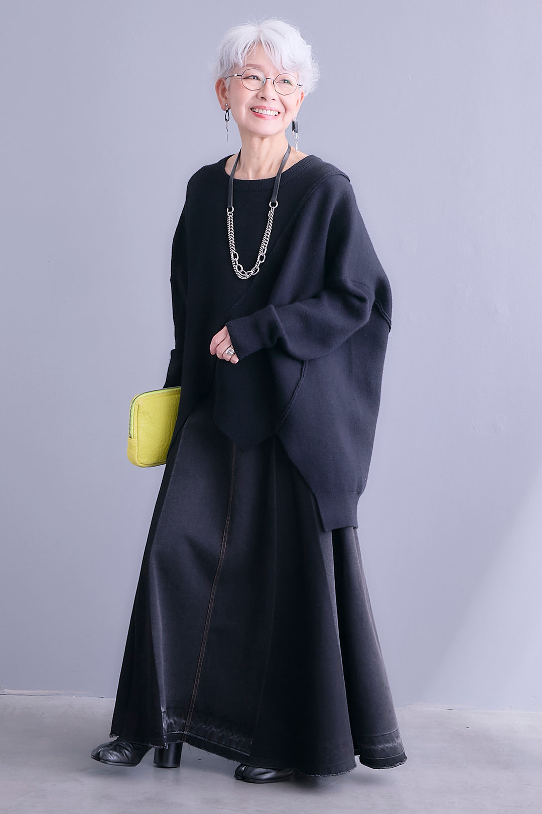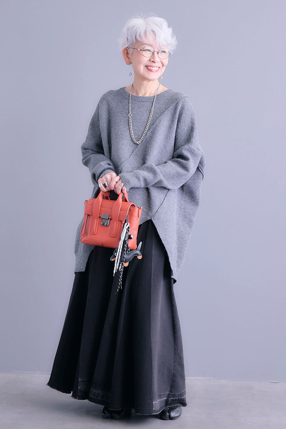 【新色追加】【SET】アシンメトリーオーバーニット+アシンメトリープリーツスカート(2set)