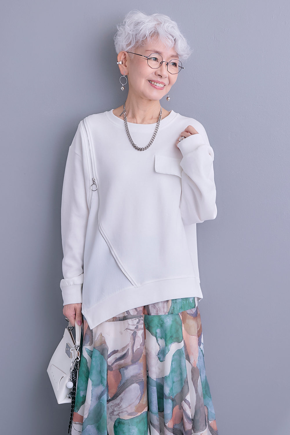 【予約】ショルダーZIPアシメデザインプルオーバー