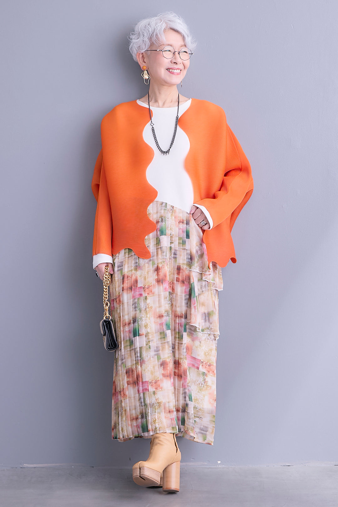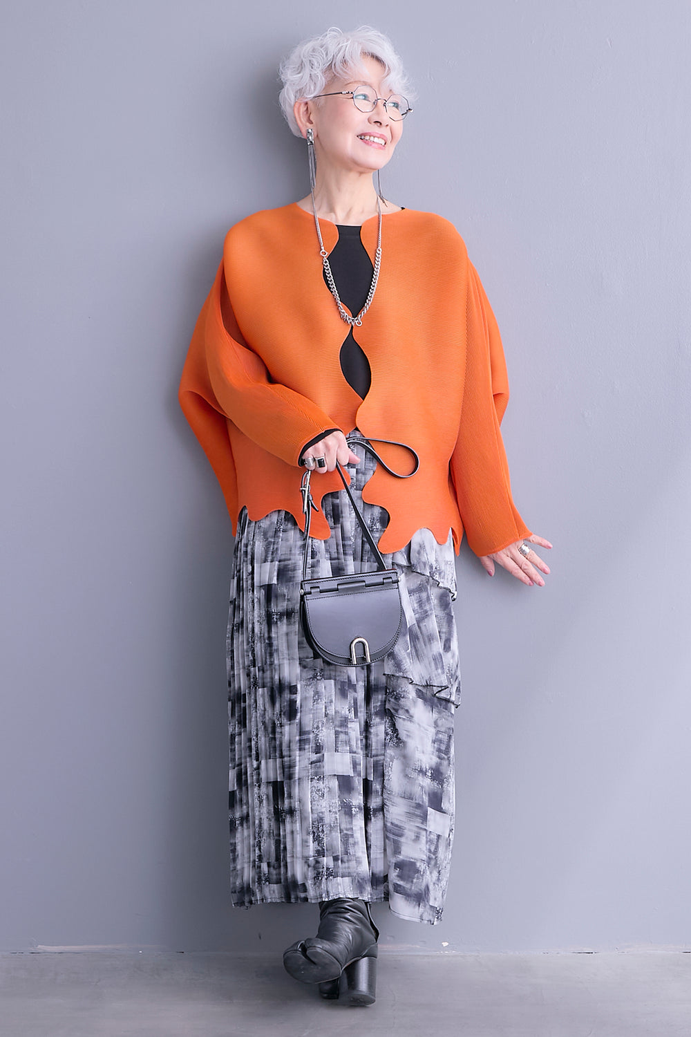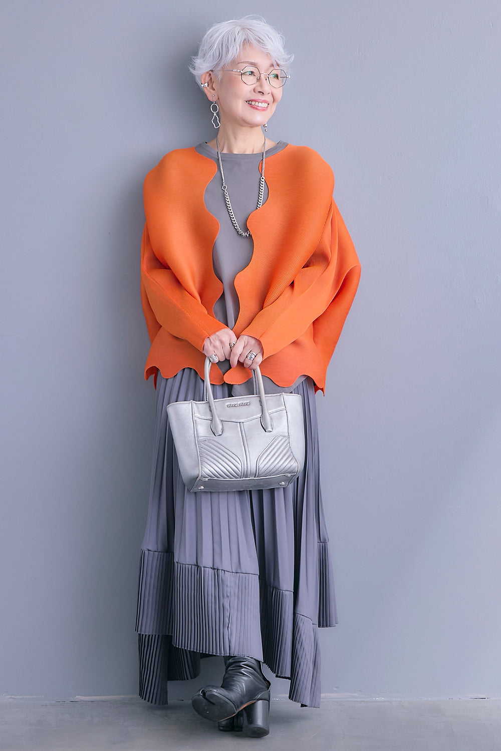 【SET】ウェーブラインプリーツカーディガン+アシンメトリーロンT+アシンメトリープリーツスカート(3set)