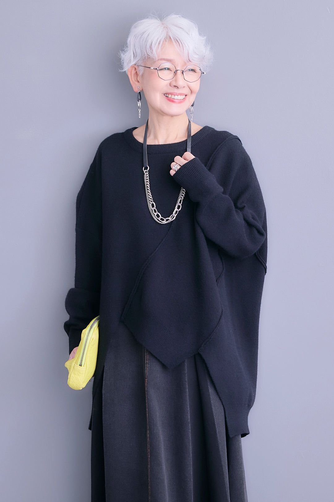【予約】アシンメトリーデザインニットトップス