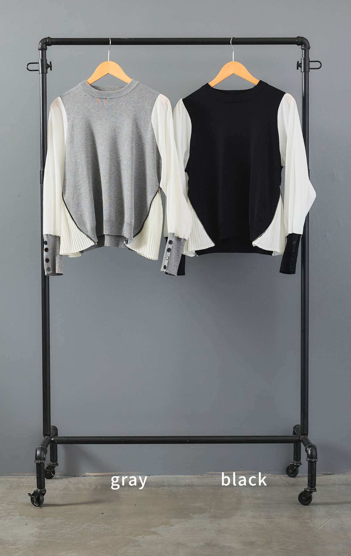 【予約】ZIPサイドプリーツニットコンビプルオーバー