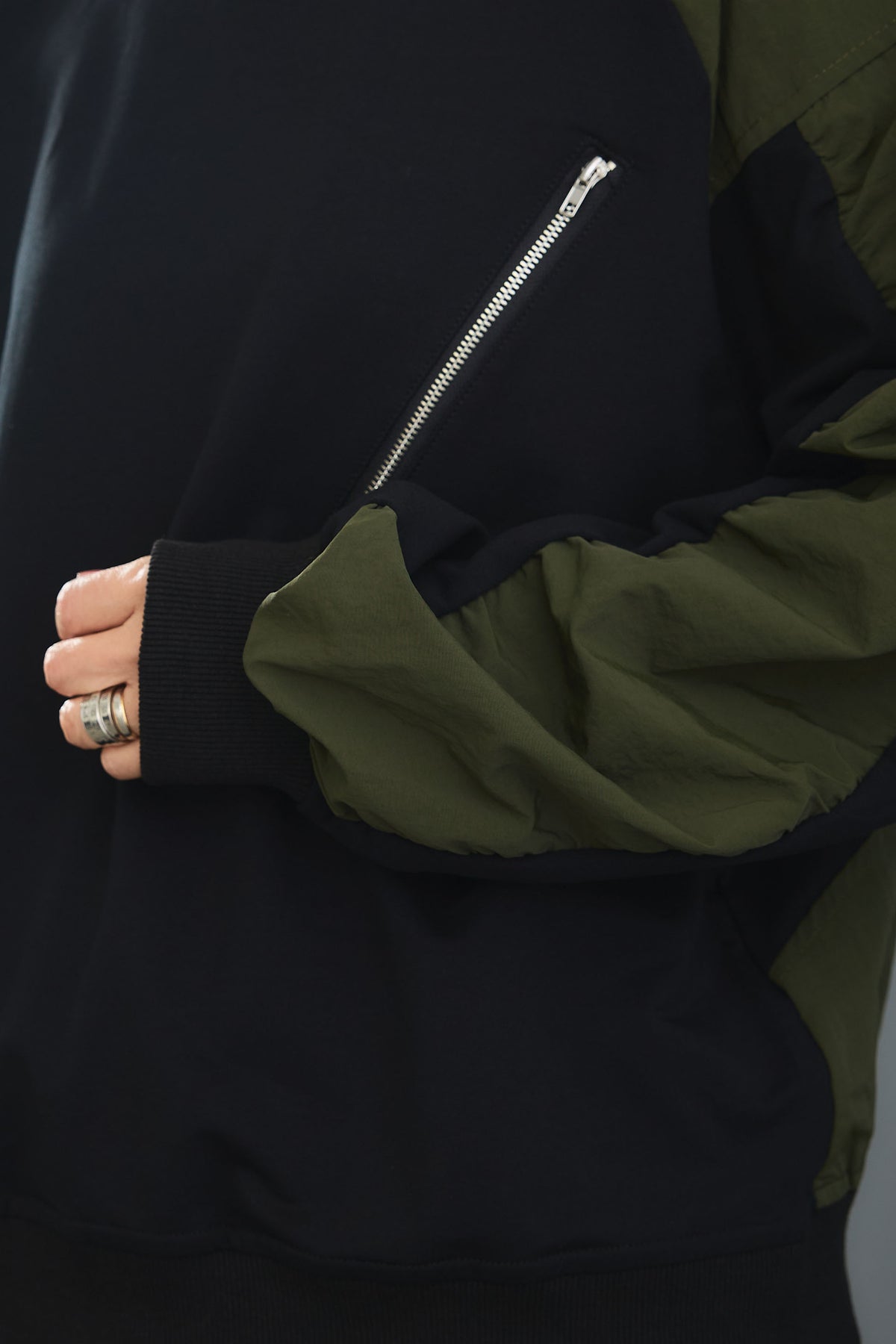 ◆ ZIPデザインギャザースリーブトップス