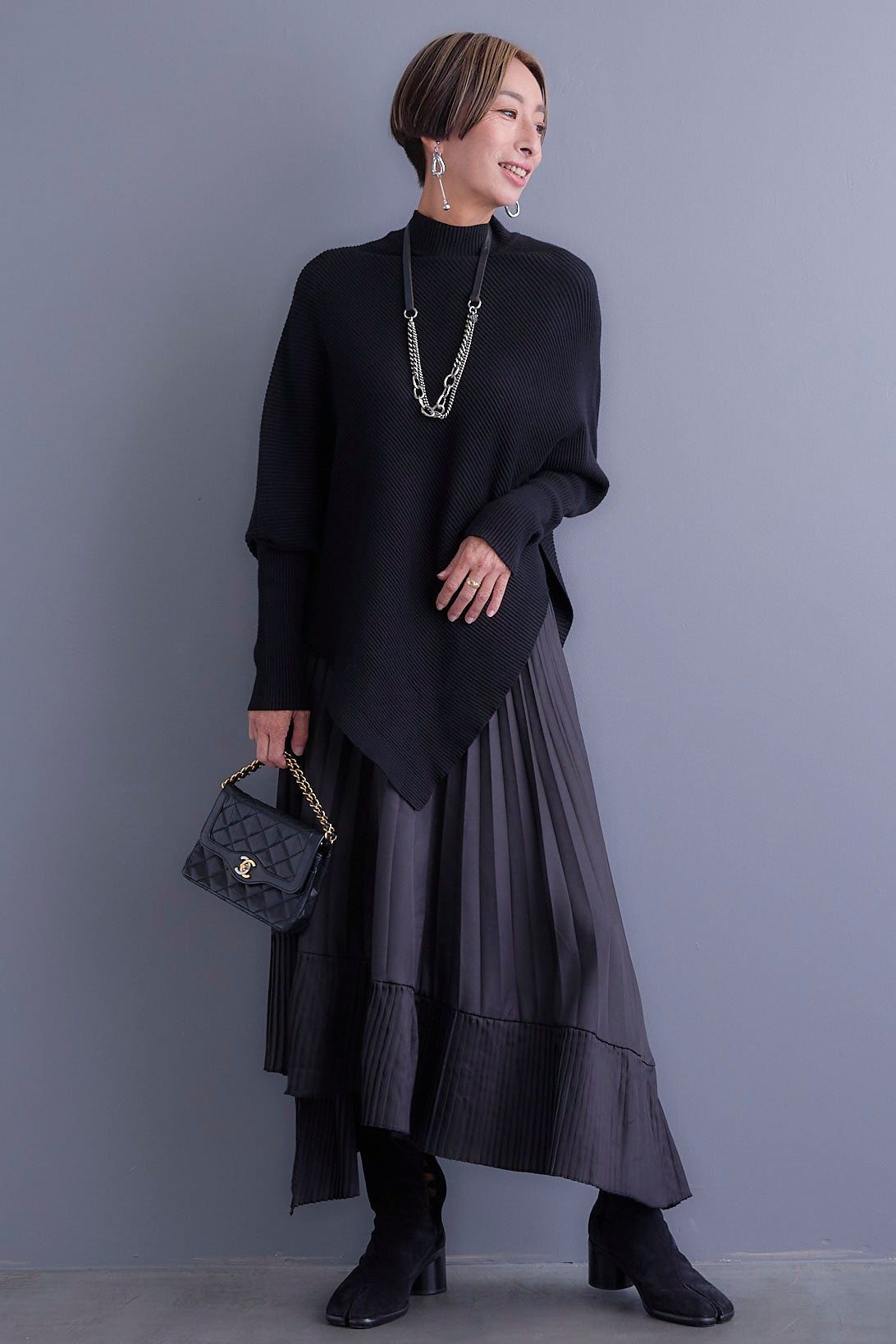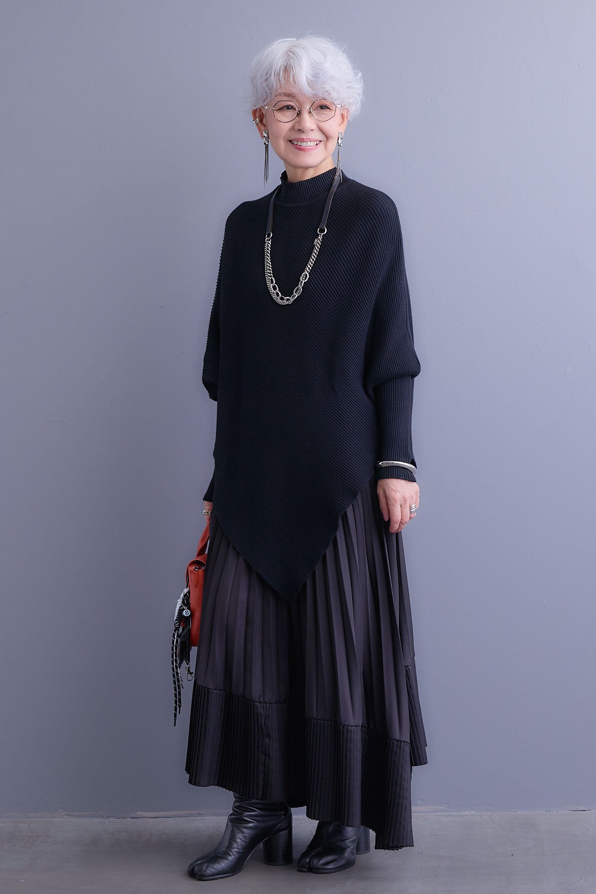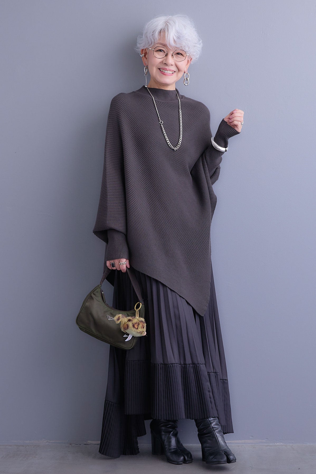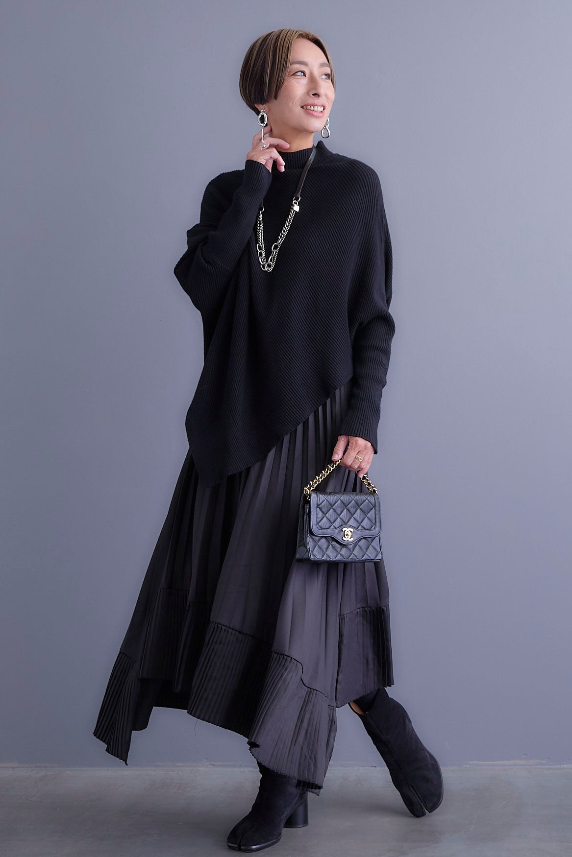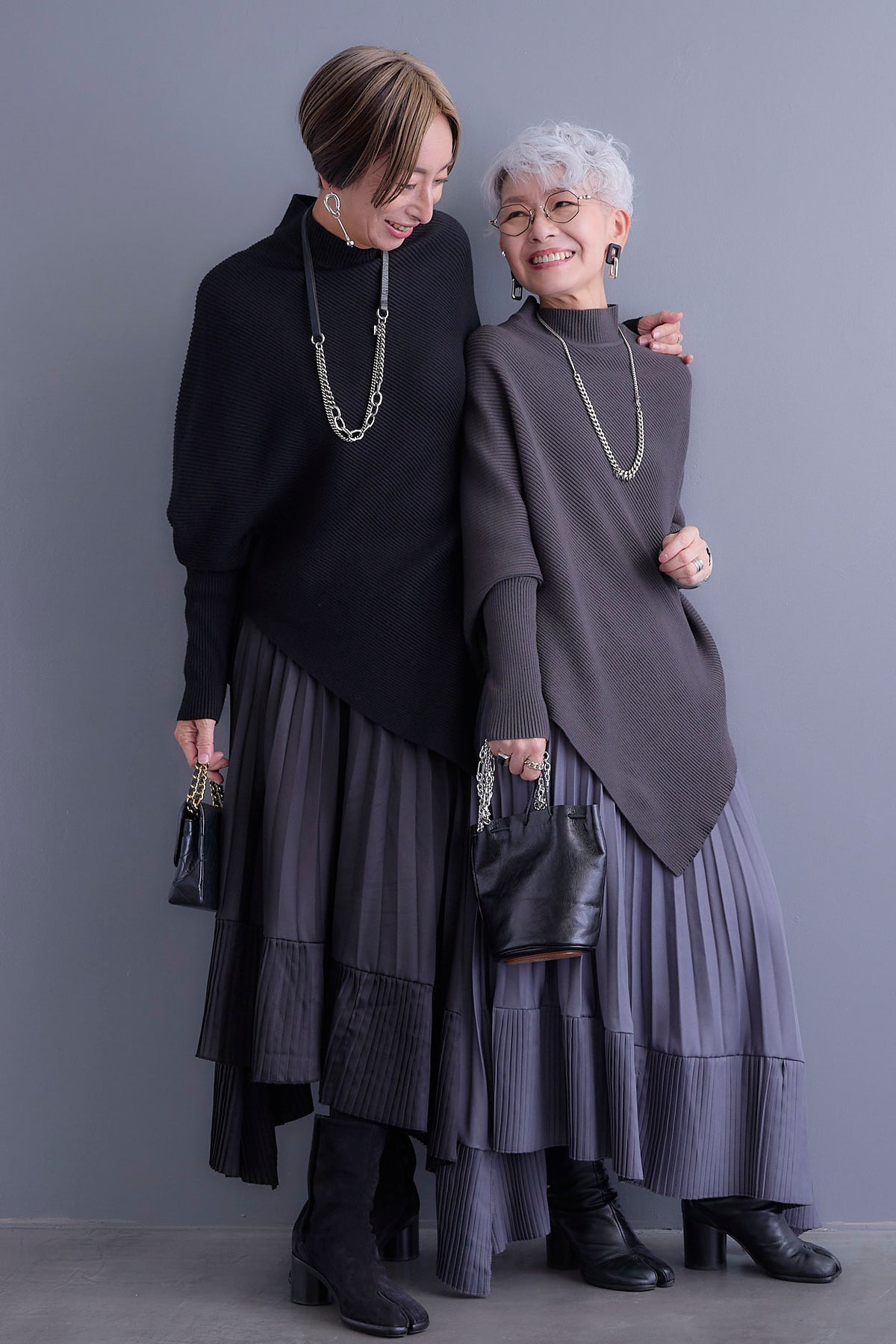 【新色追加】【SET】アシンメトリーオーバーニット+アシンメトリープリーツスカート(2set)