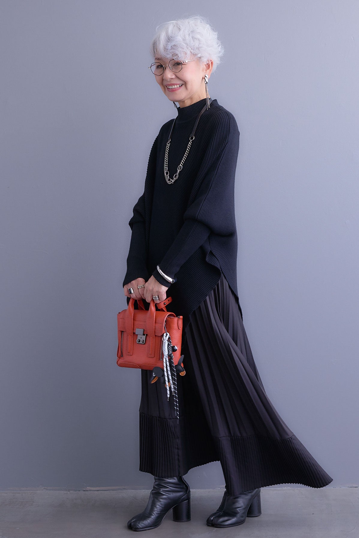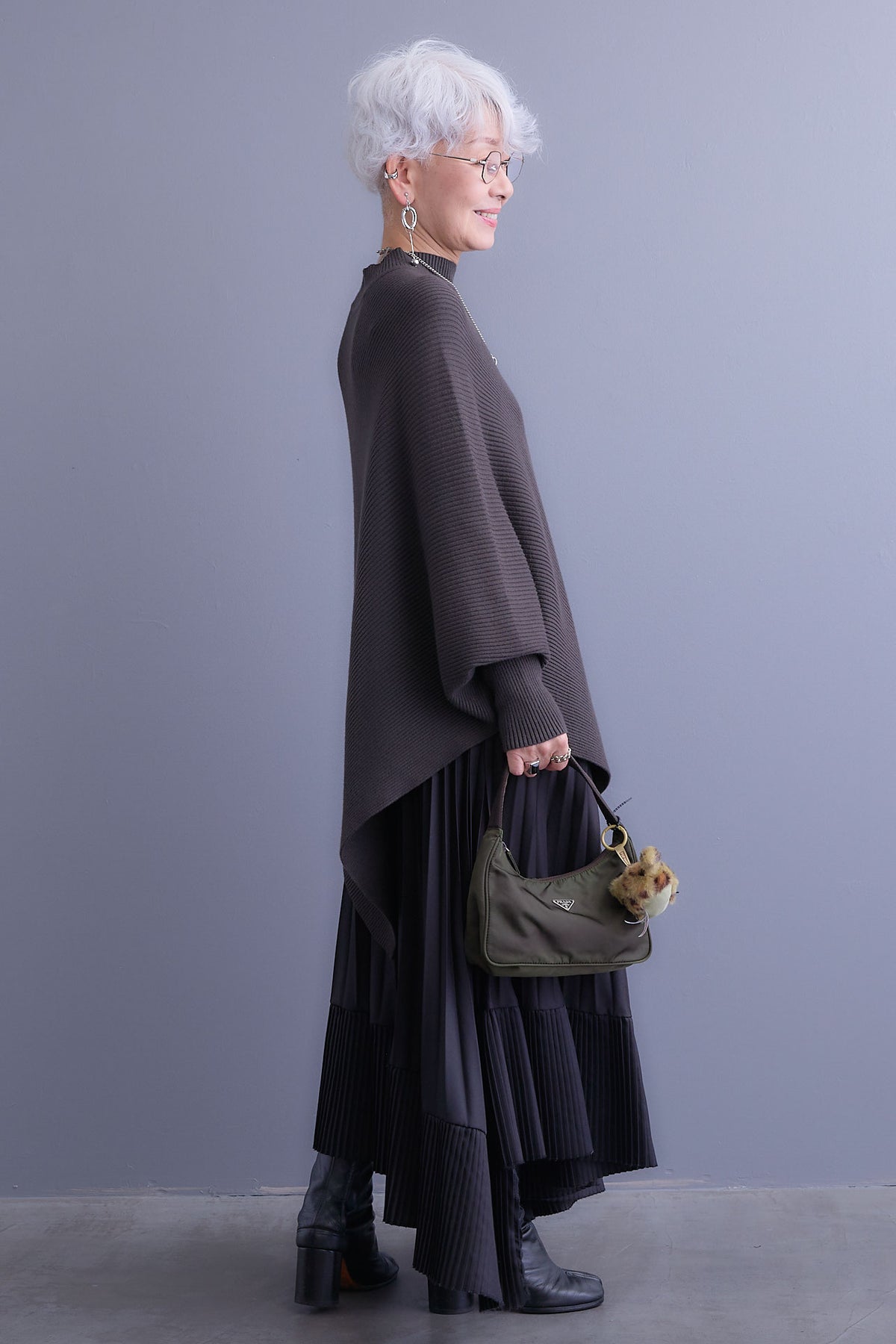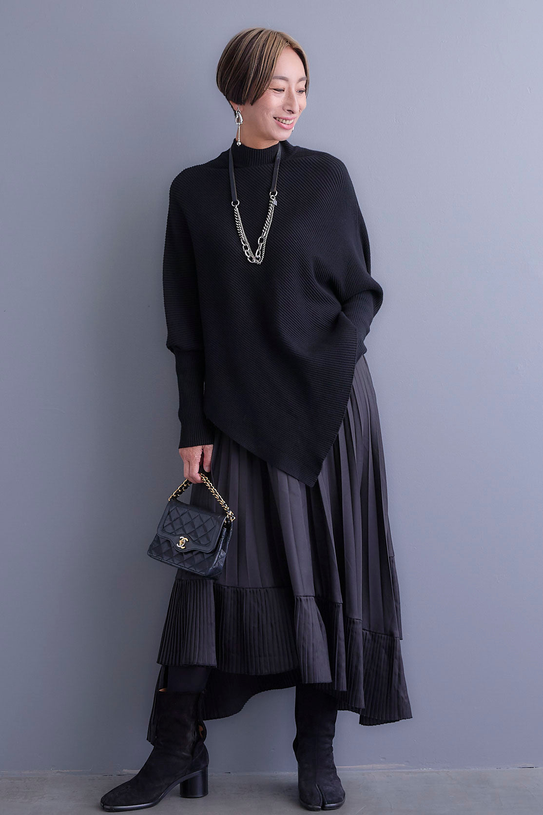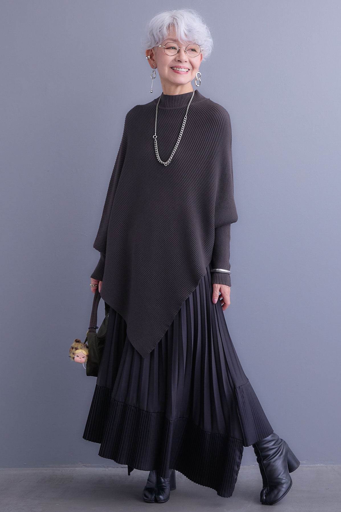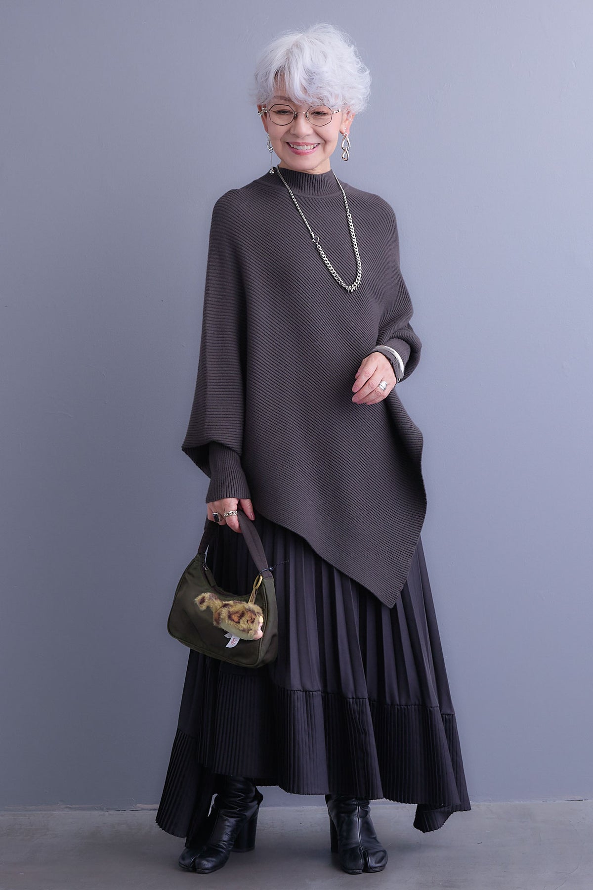 【新色追加】【SET】アシンメトリーオーバーニット+アシンメトリープリーツスカート(2set)