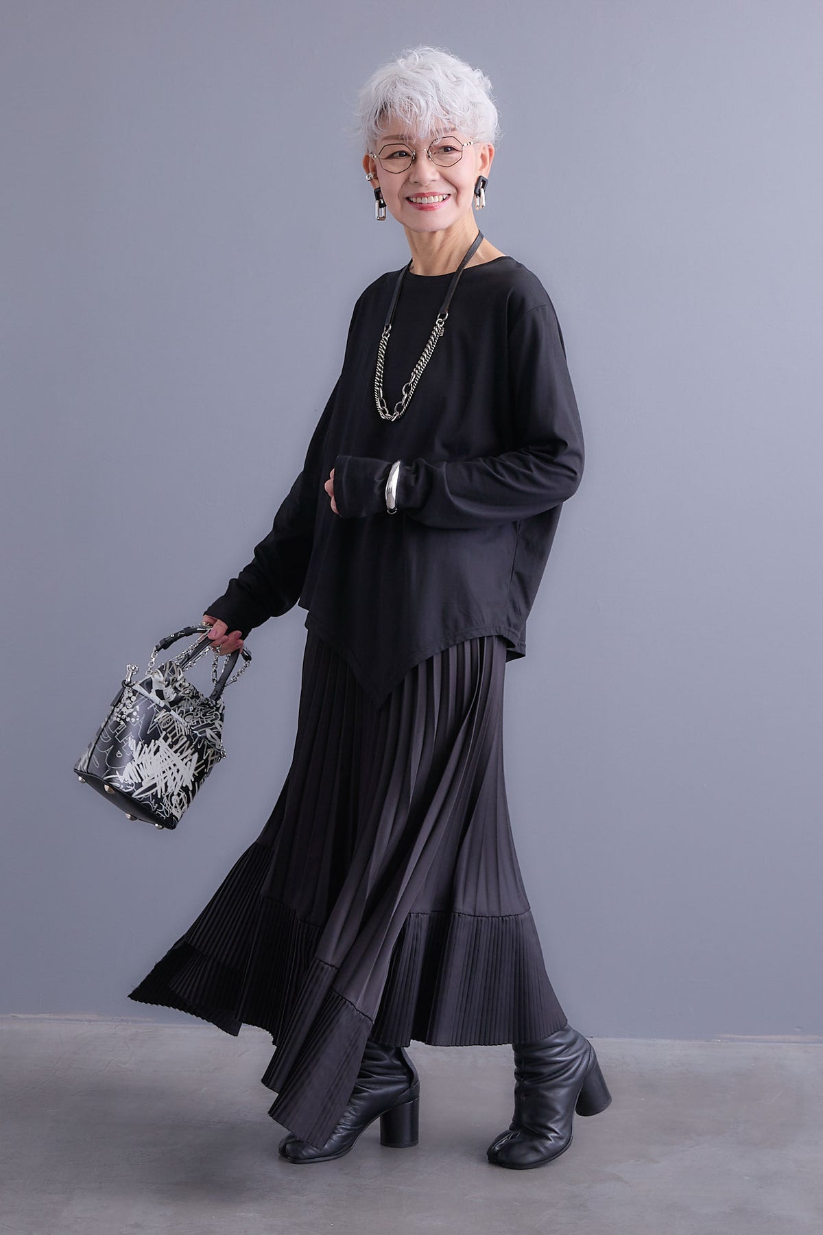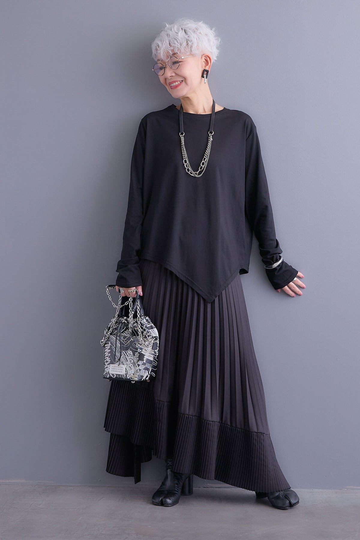 【SET】アシンメトリーロンT+アシンメトリープリーツスカート(2set)