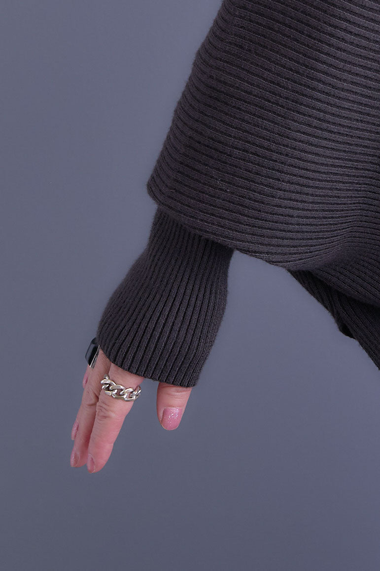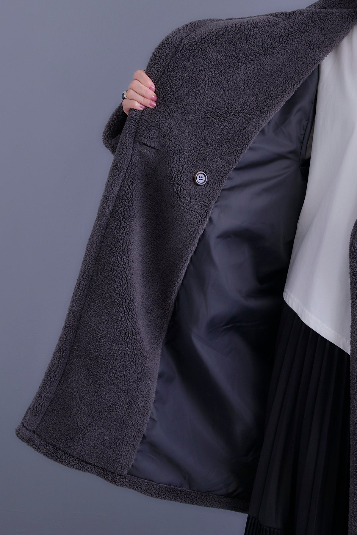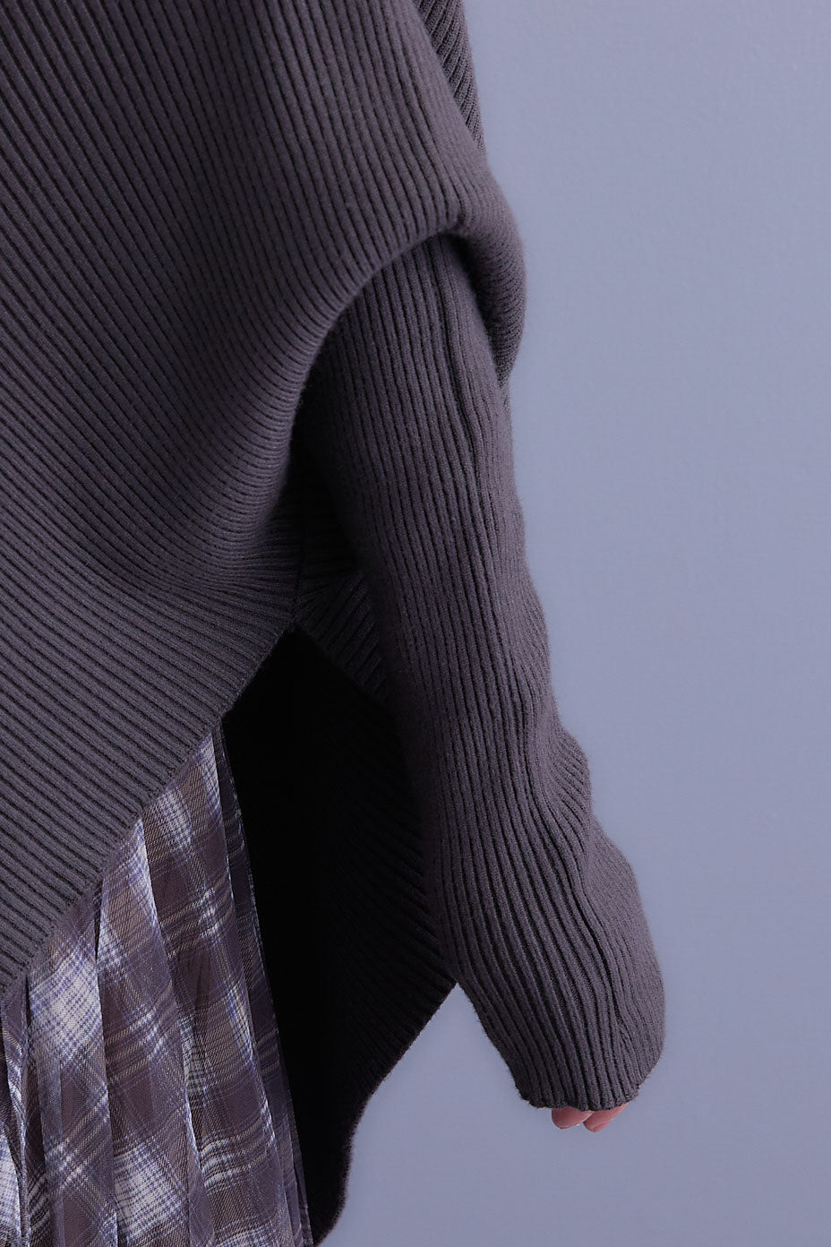 【SET】アシンメトリーオーバーニット+テディボアロングコート+アシンメトリープリーツスカート(3set)