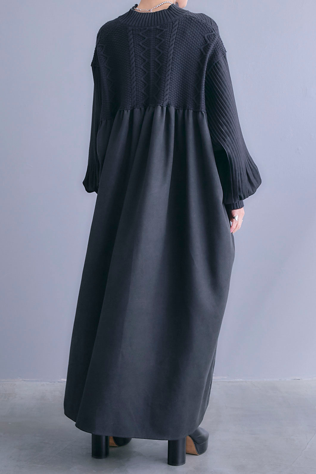 【予約】コーデュロイ×ニットコンビキーネックワンピース