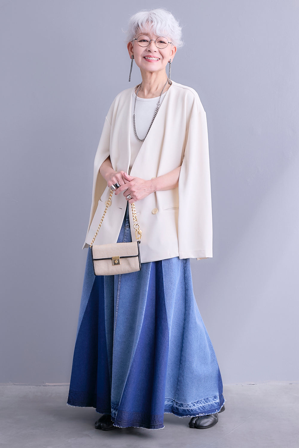 【予約】ボリュームスリーブノーカラーデニムジャケット