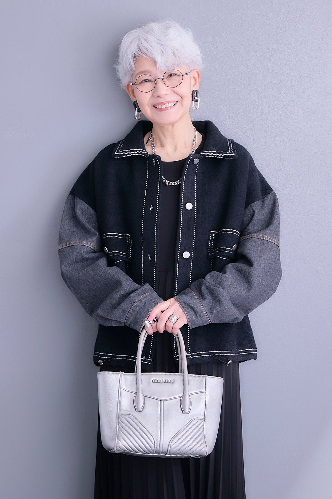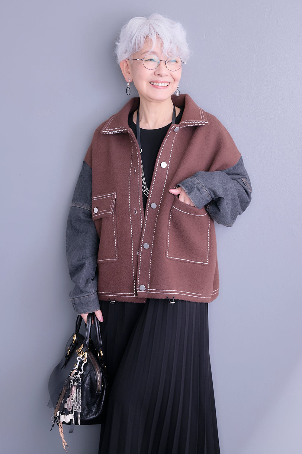 【予約】ステッチニット×デニムスリーブジャケット