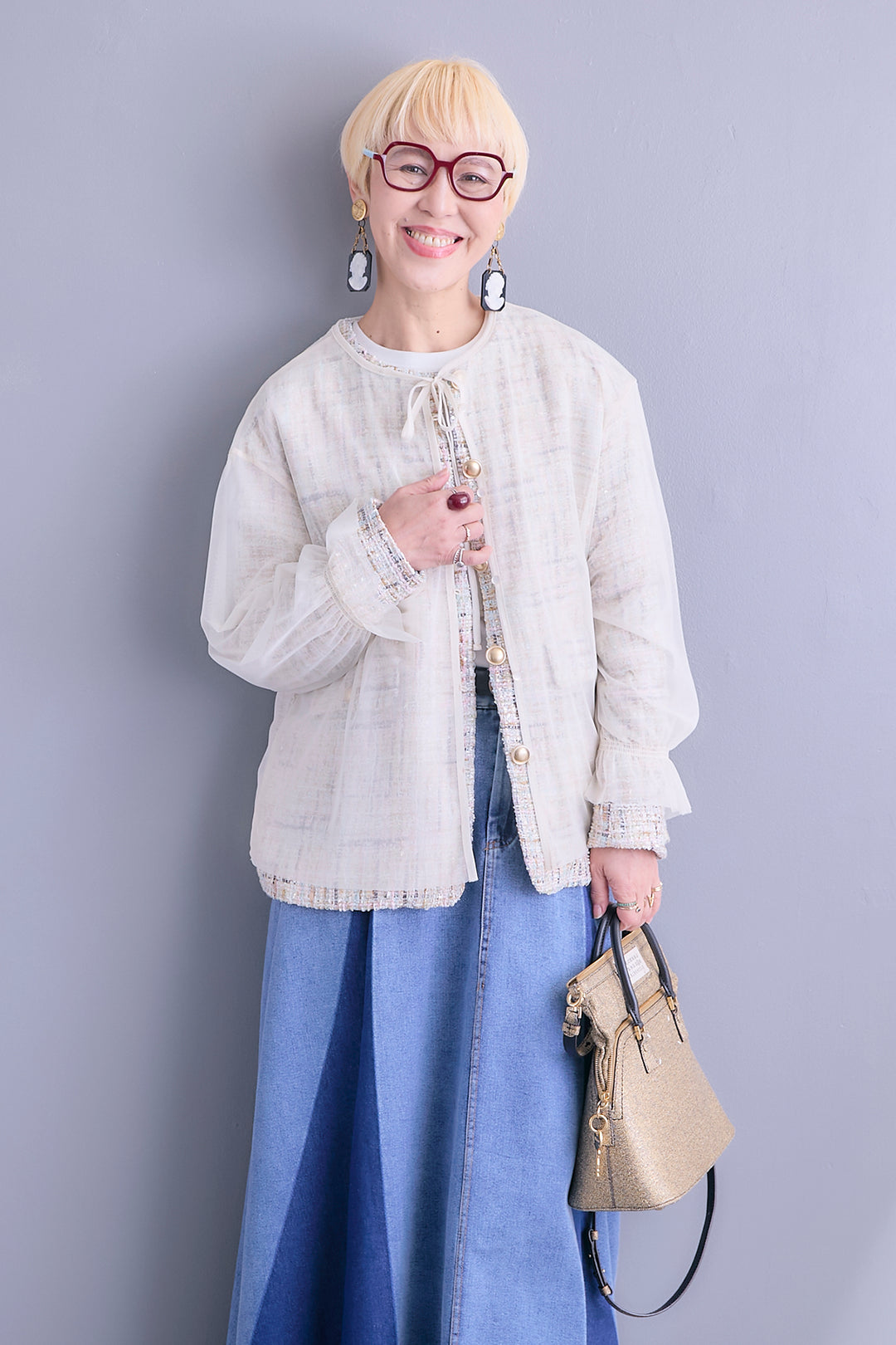 【予約】ツイード×チュールレイヤードノーカラージャケット