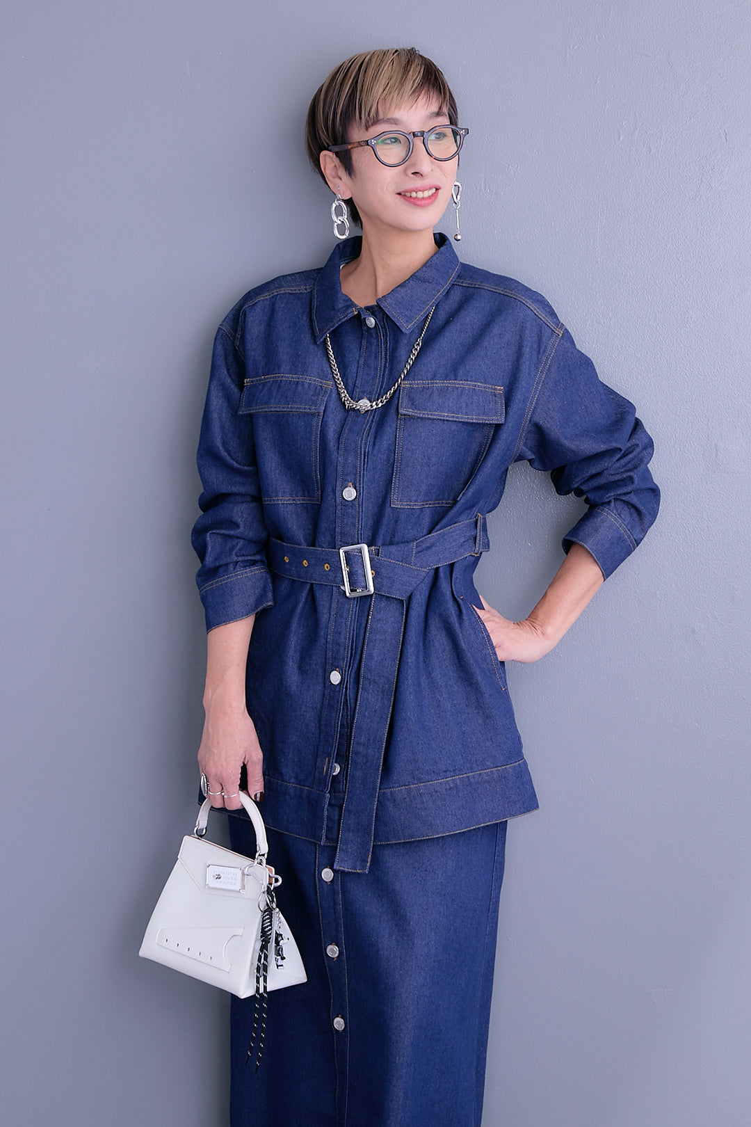 【予約】ベルト付きデニムシャツジャケット【セットアップ可能】