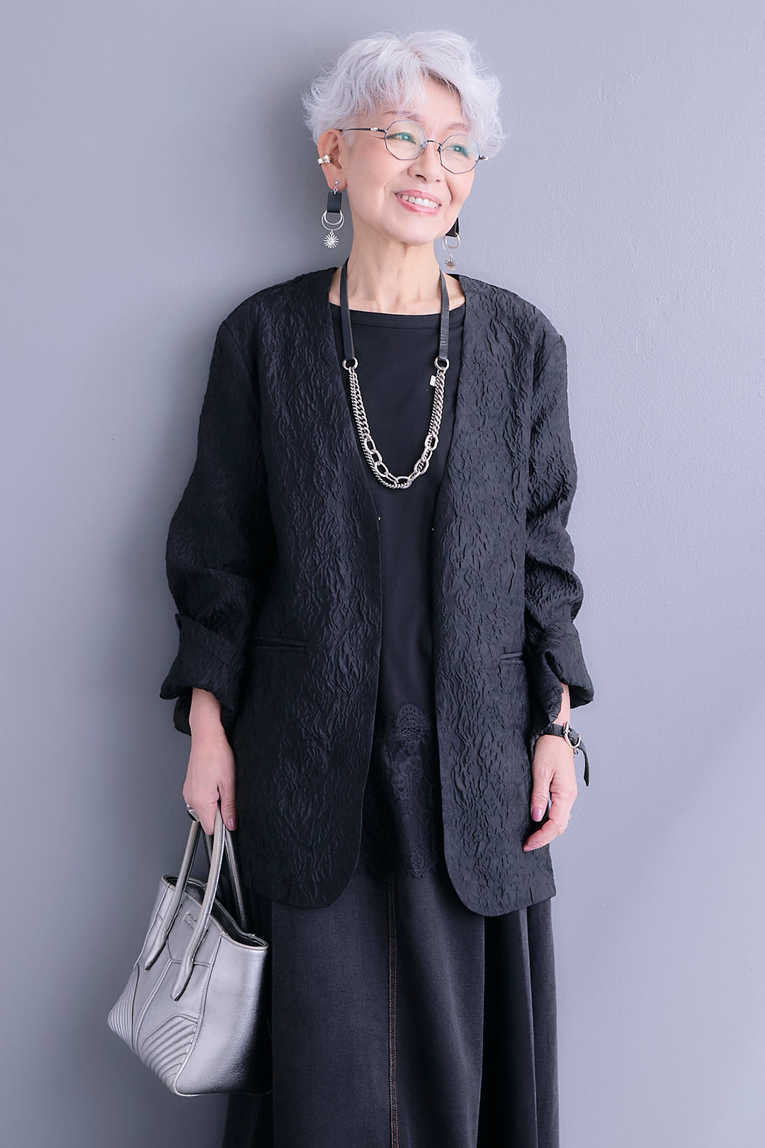 【予約】ジャガードシアーノーカラージャケット