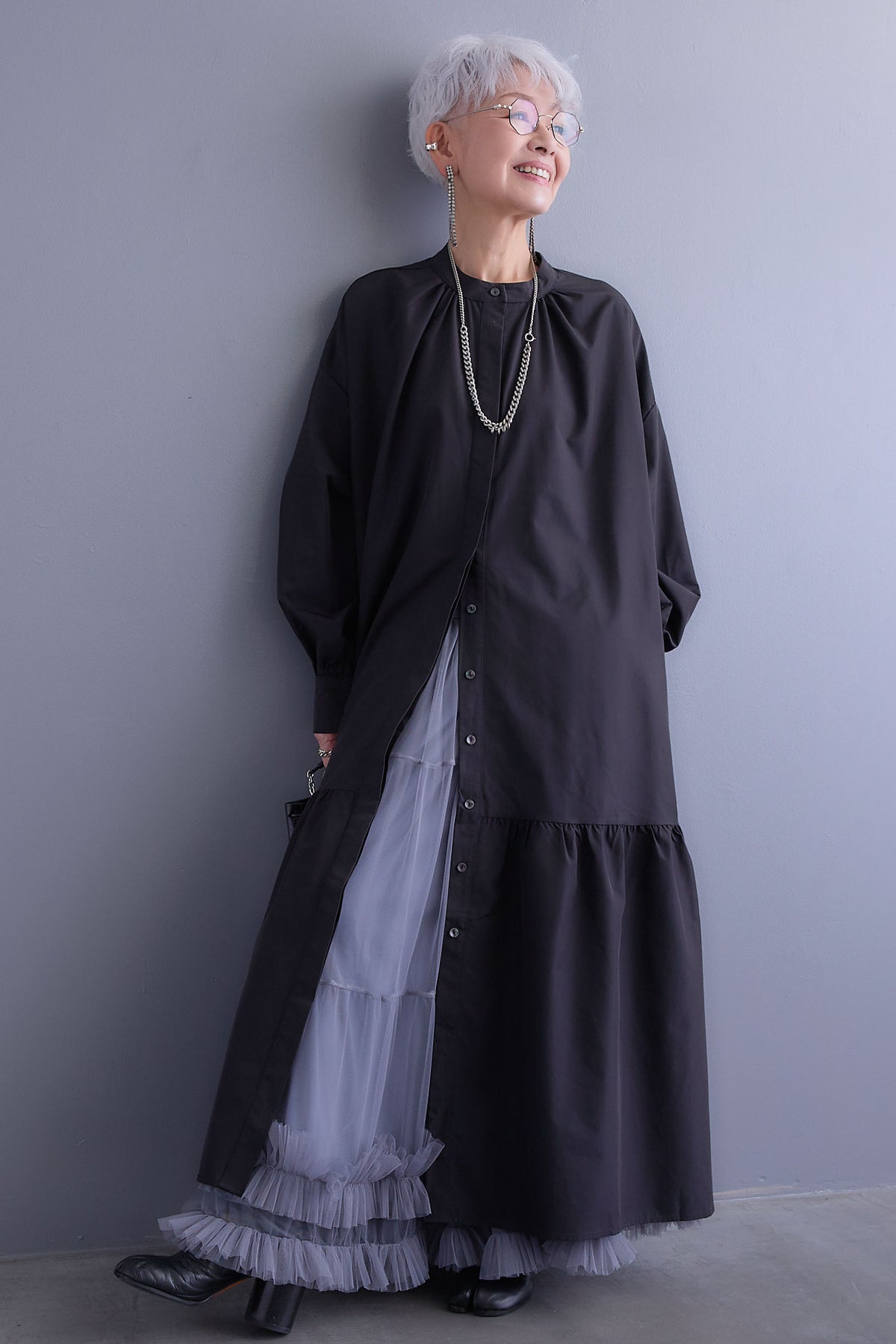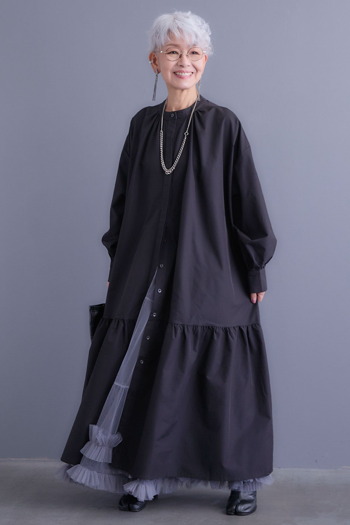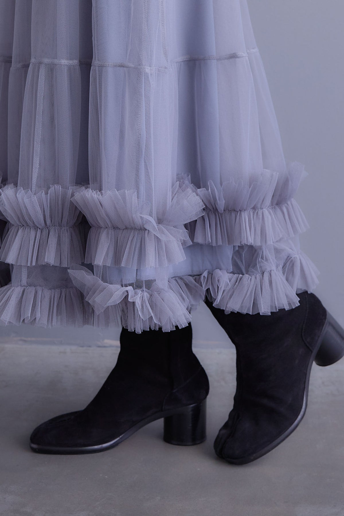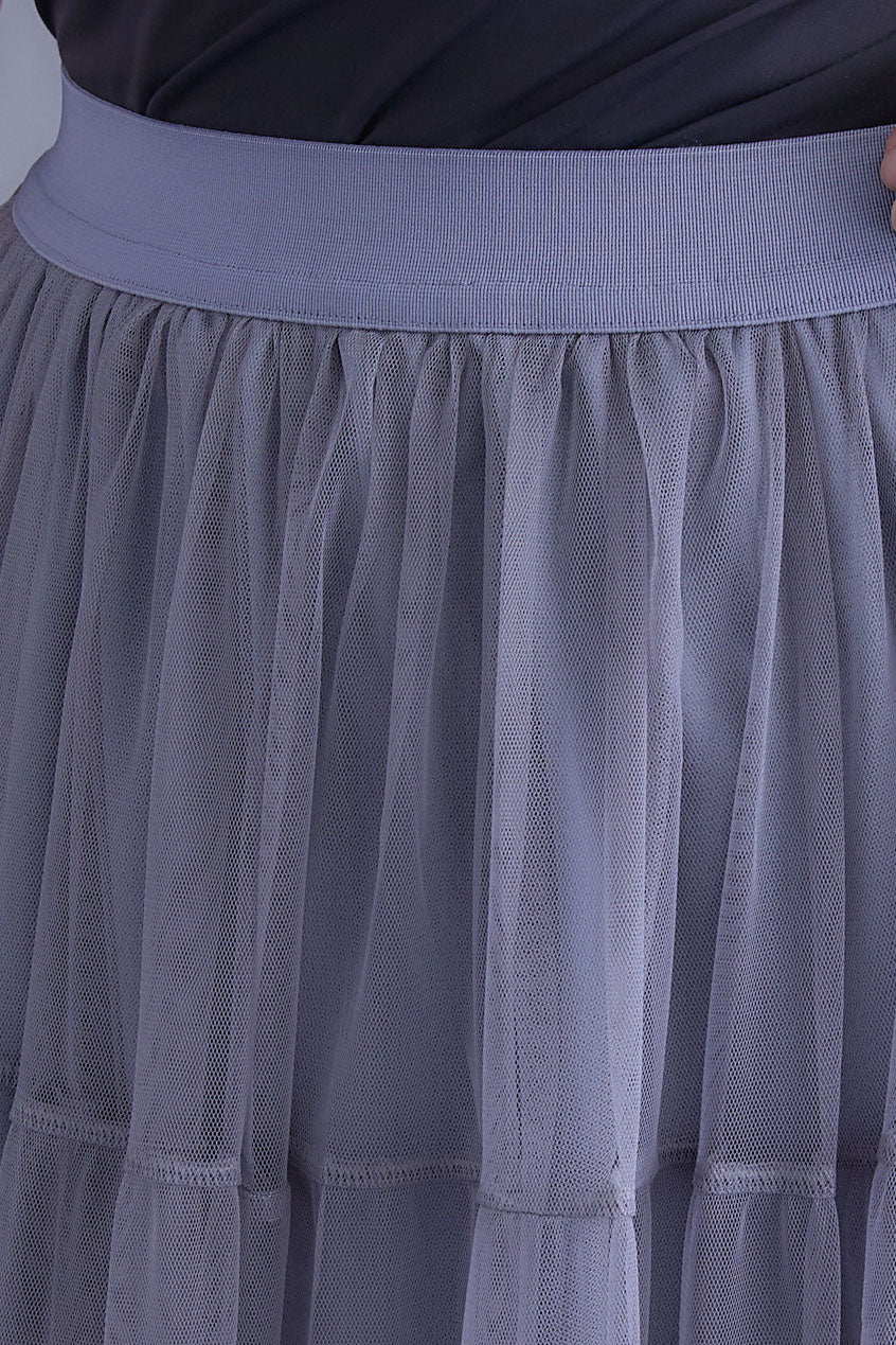 華やかなフリルとチュールが特徴的なティアードスカートです。軽やかなチュール素材が動きに合わせて揺れ、女性らしいエレガントな印象を演出します。ティアードデザインによりボリューム感があり、コーディネートの主役になる一枚です。ウエストはゴム仕様で着心地も快適。シンプルなトップスと合わせるだけで、特別感のあるスタイリングが完成します。パーティーシーンやお出かけにもぴったりなアイテムです。