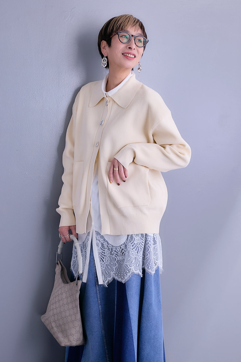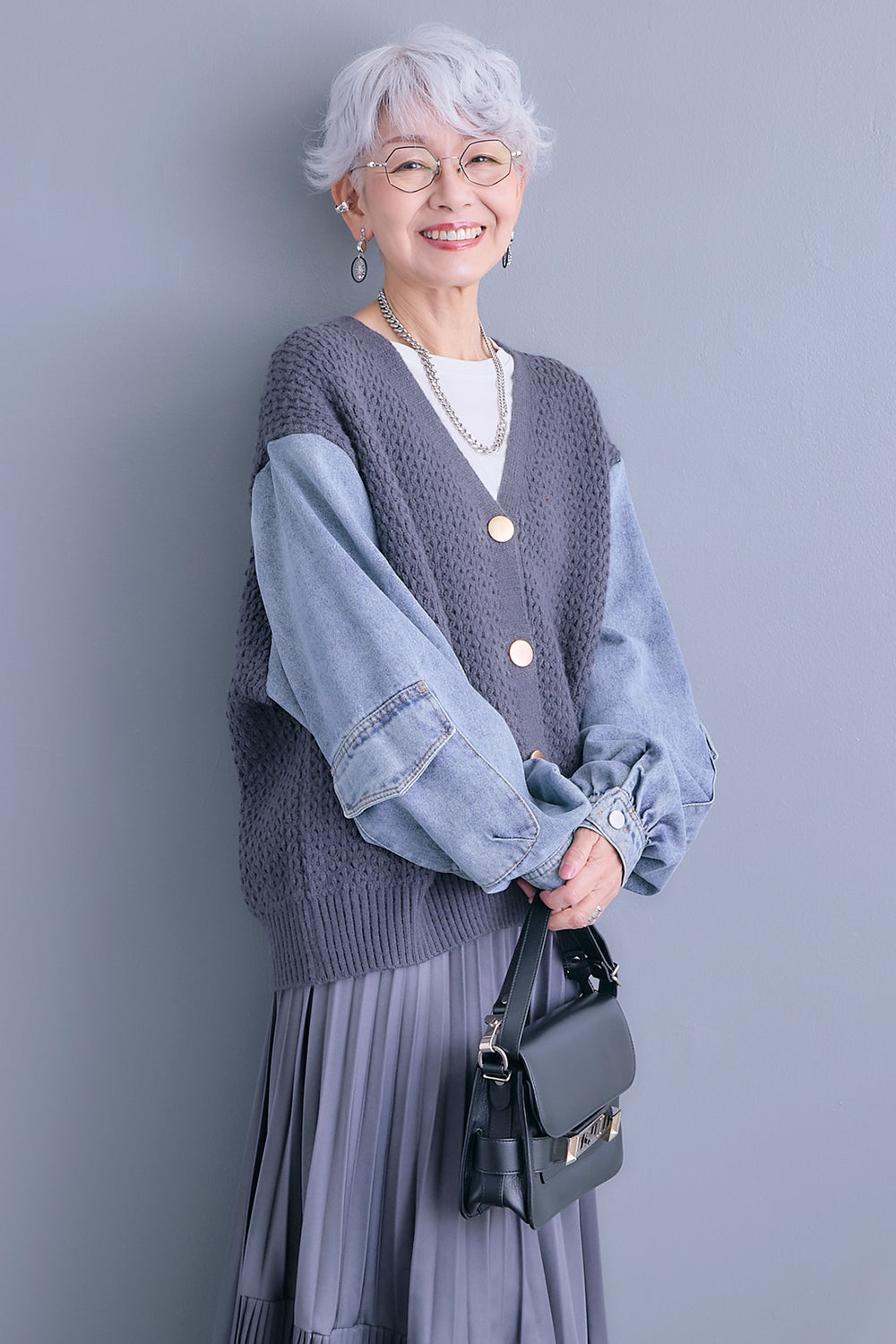 【予約】デニムスリーブニットオーバーカーデ