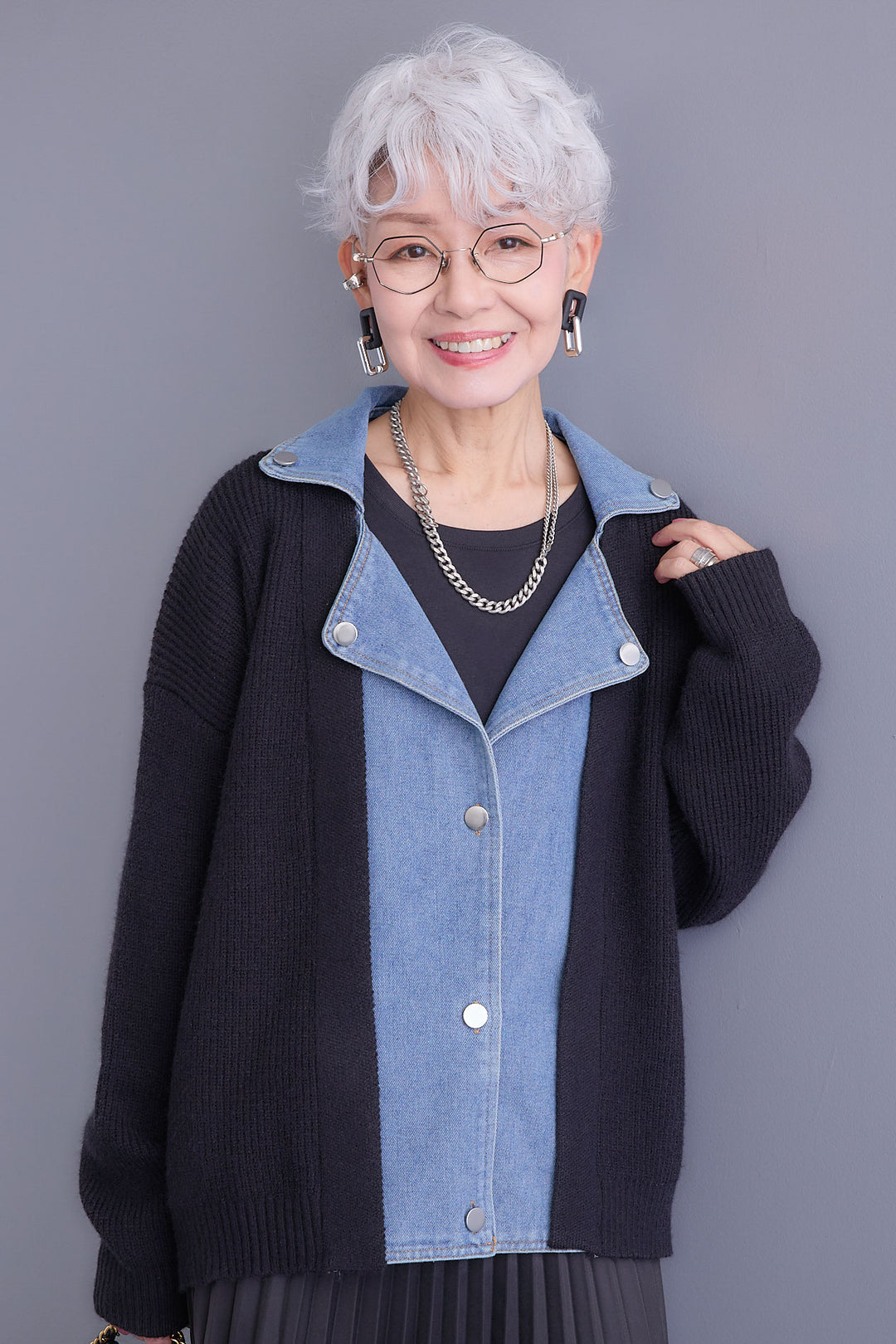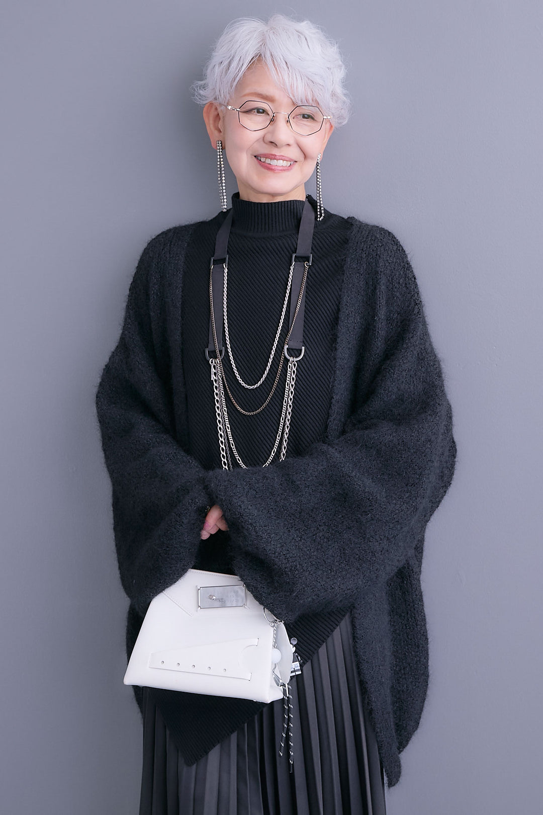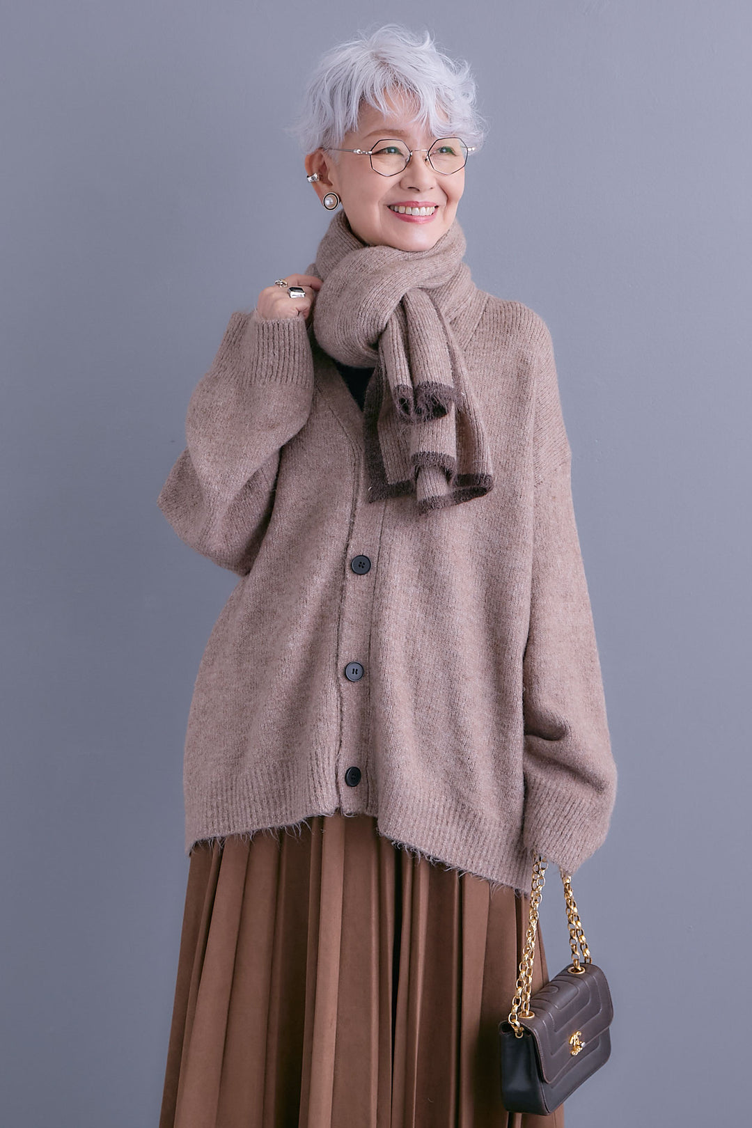 【予約】バックキルティングローゲージニットカーディガン【ストール付き】