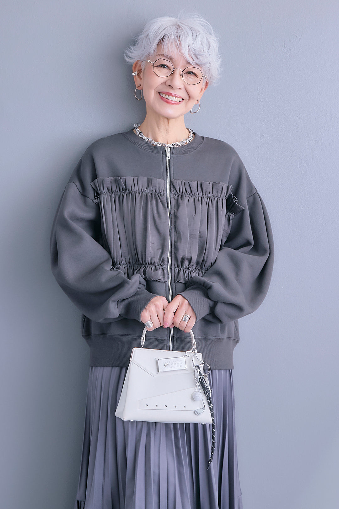 【予約】サテンギャザーデザインWZIPカーディガン