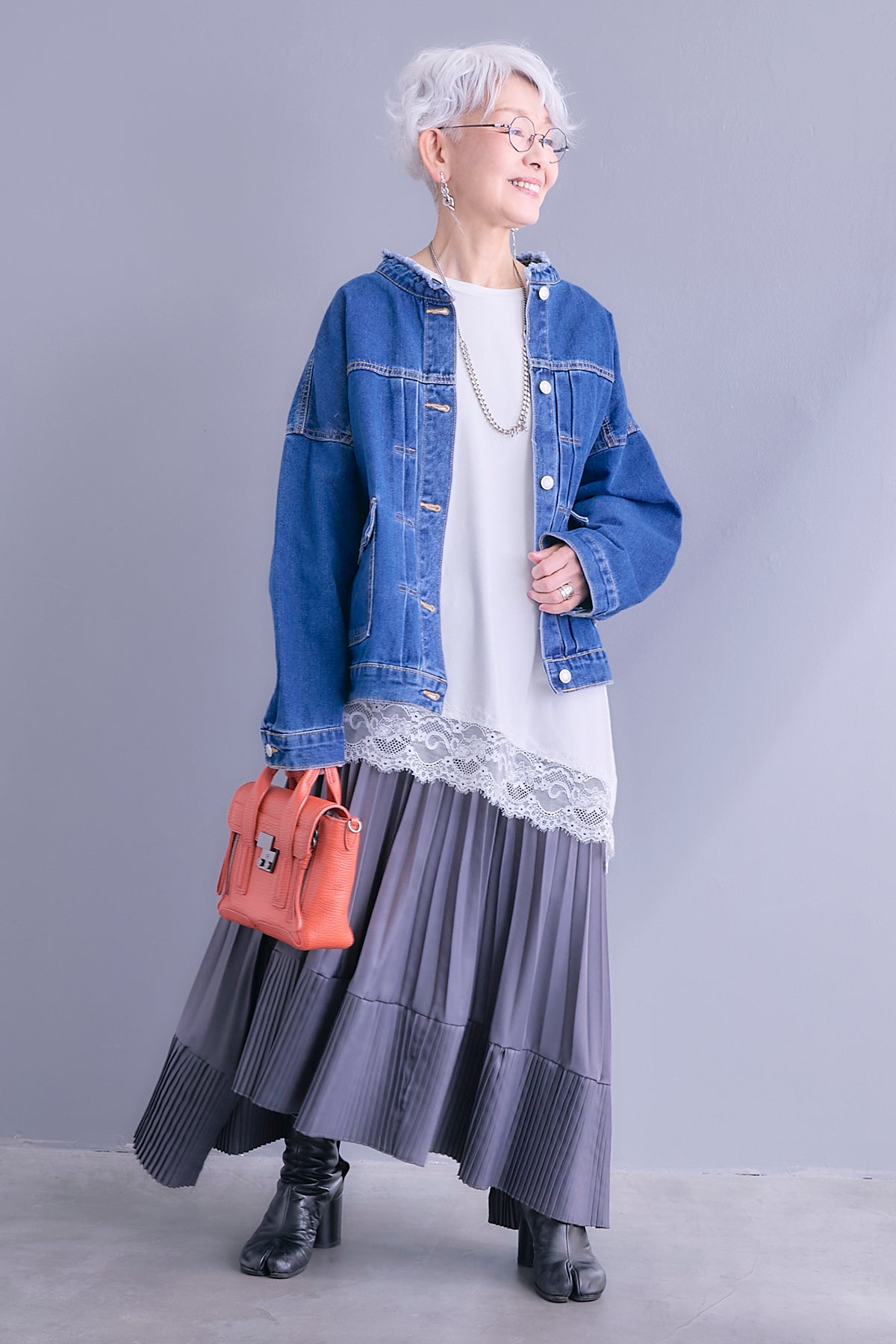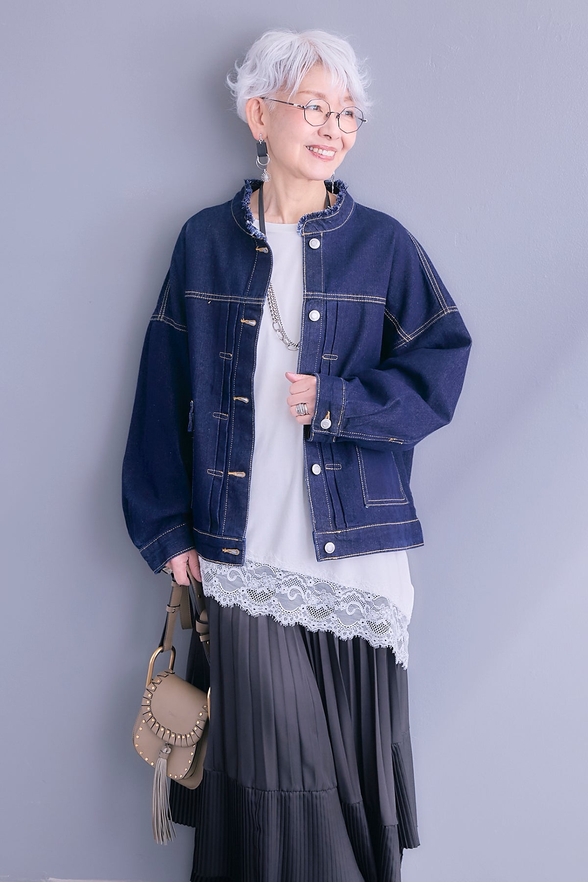 【予約】ノーカラーオーバーサイズデニムジャケットを含んだコーデセット商品を探す↓