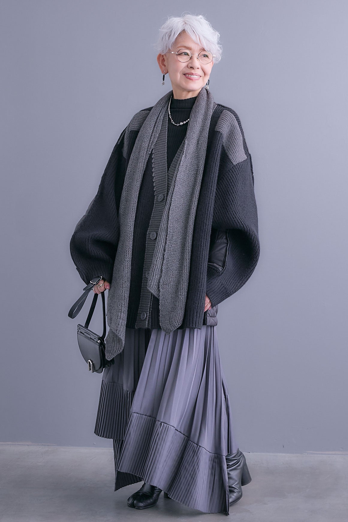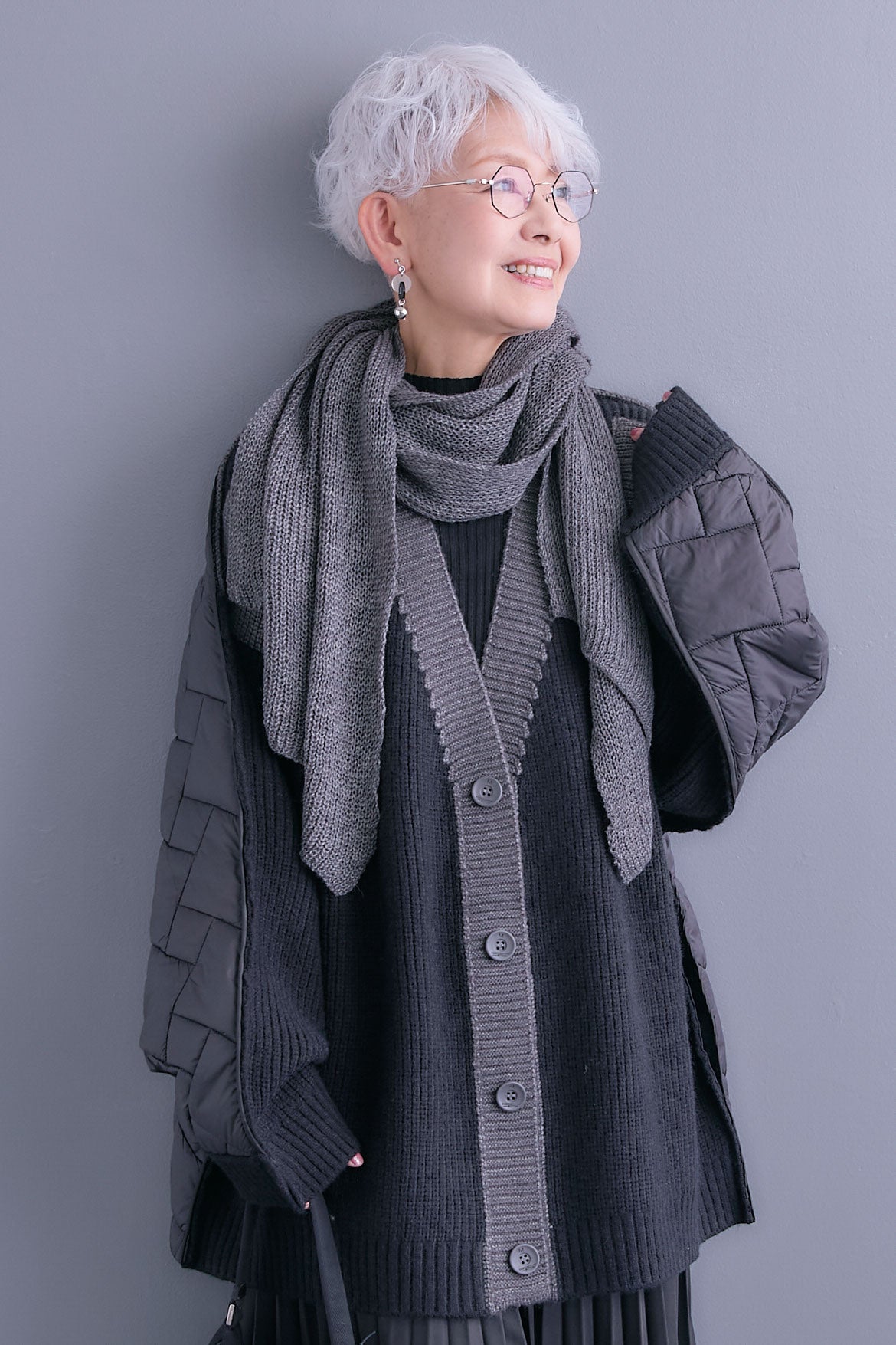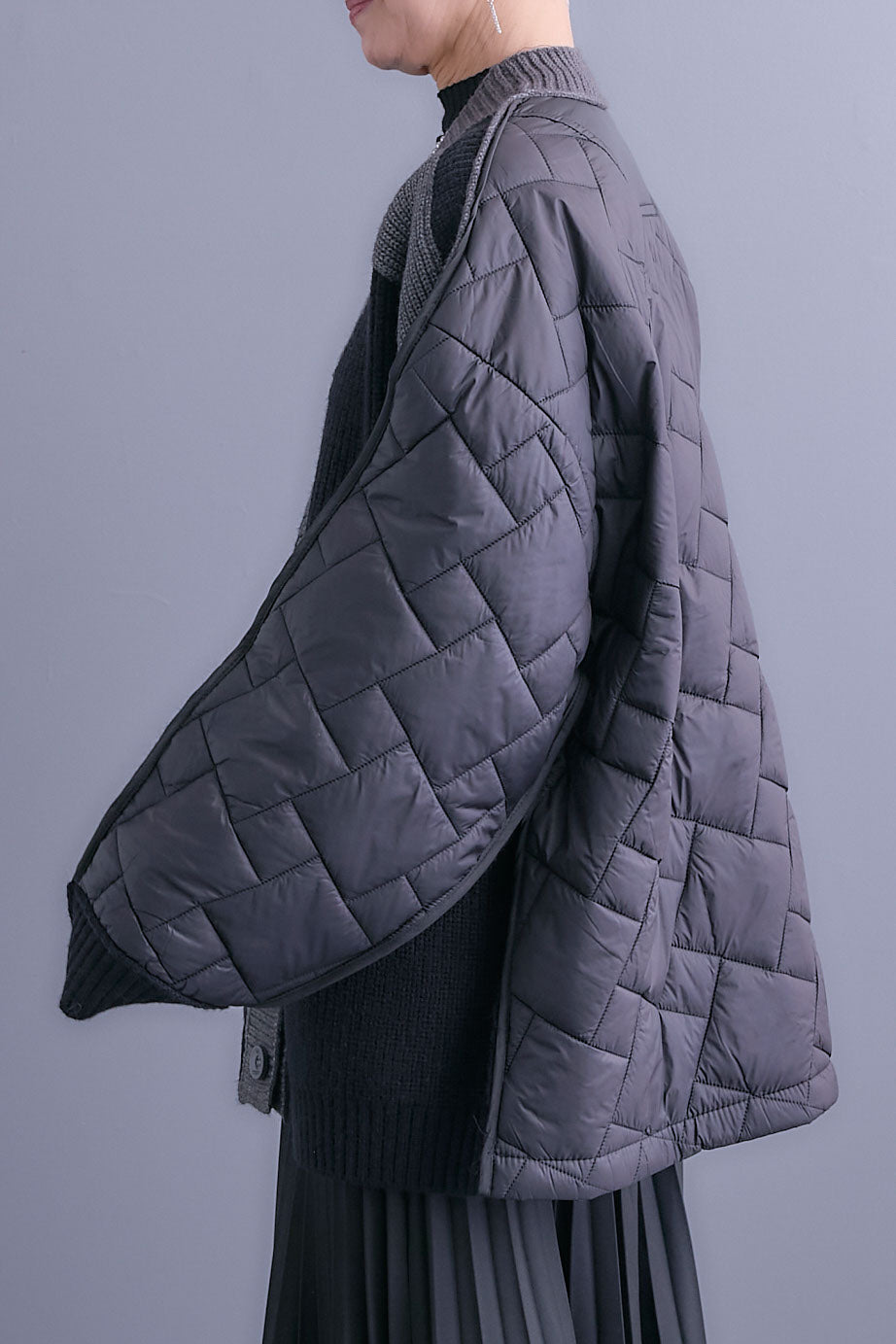 【予約】バックキルティングローゲージニットカーディガン【ストール付き】を含んだコーデセット商品を探す↓