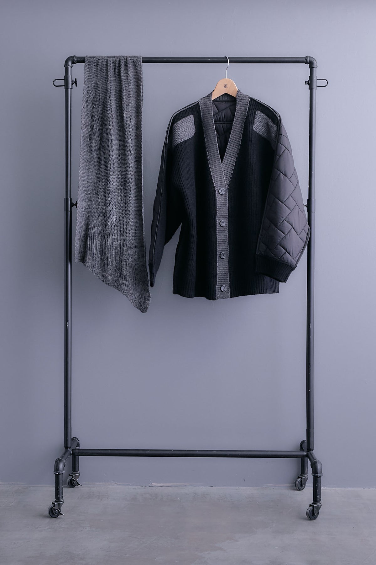 ゆったりとしたローゲージ編みがこなれ感を演出するバイカラーカーディガン。バックには異素材キルティングをあしらい、シンプルながらも印象的なデザイン。取り外し可能なストール付きで着こなしの幅が広がります。