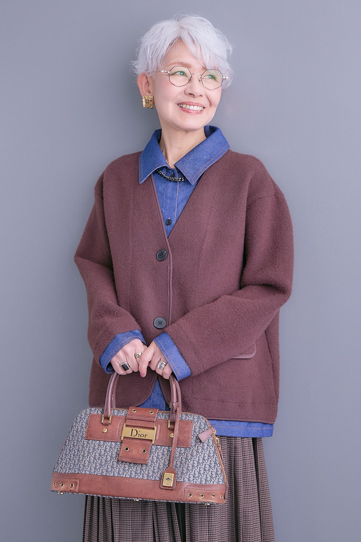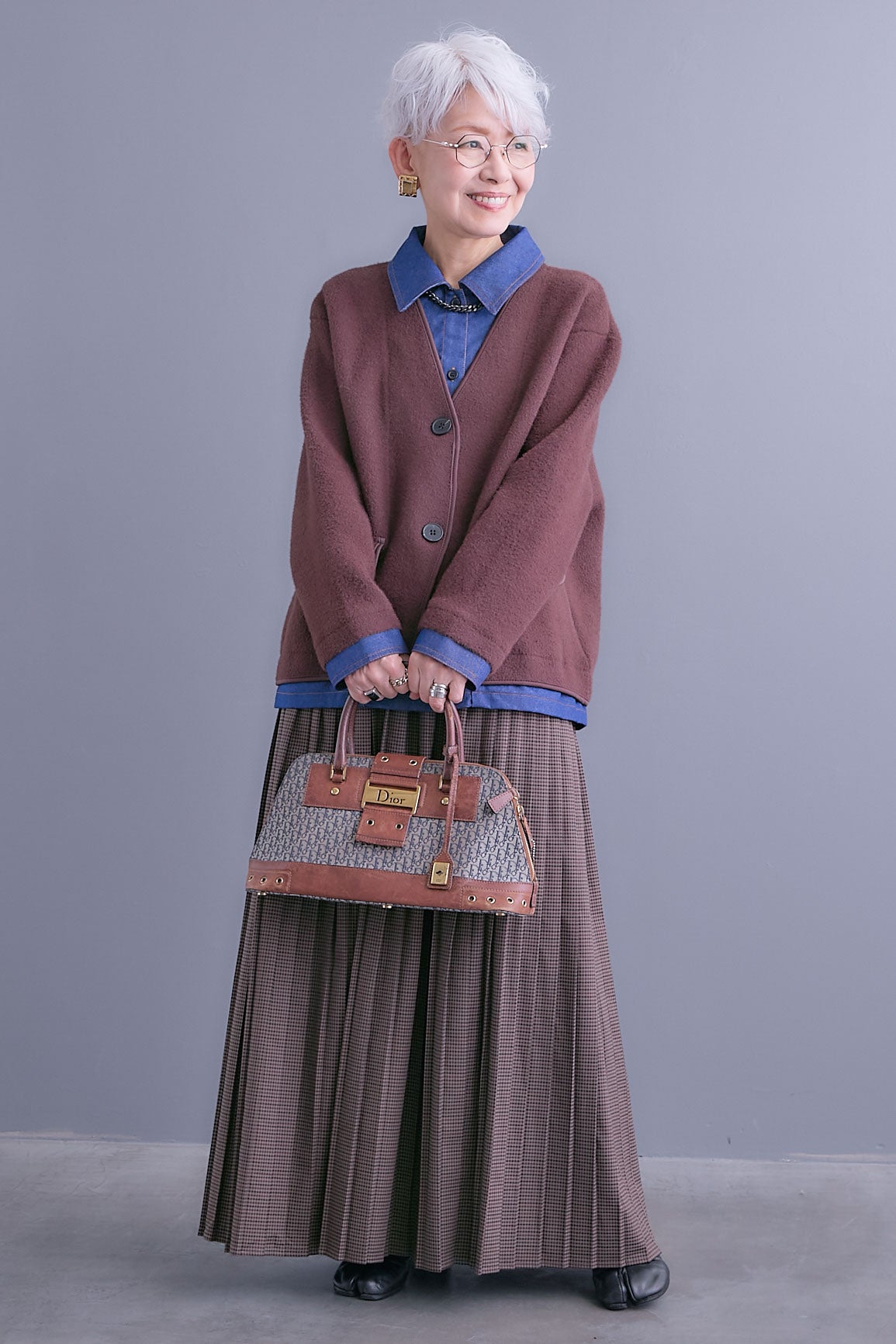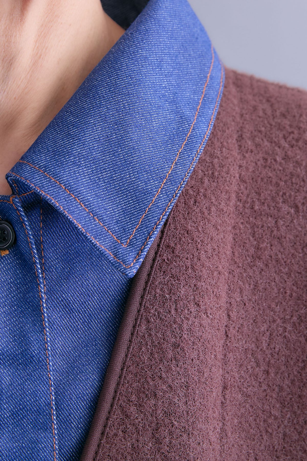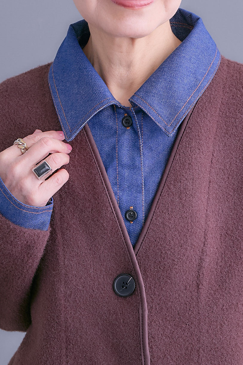 上品なブラウンとインディゴの異素材ミックスが魅力のカーディガン。やわらかな風合いのウール混ニットに、インナー風のデニム素材を大胆にドッキング。1枚でレイヤードスタイルが完成する、主役級の一着。袖口や裾からデニムの存在感がさりげなくのぞく、こなれた雰囲気のあるデザイン。デニム部分は取り外し不可。ジャケット感覚で羽織っても、ボタンを閉めてプルオーバー風にも着用可能。ヒップが隠れる丈感で、体型カバーにも。