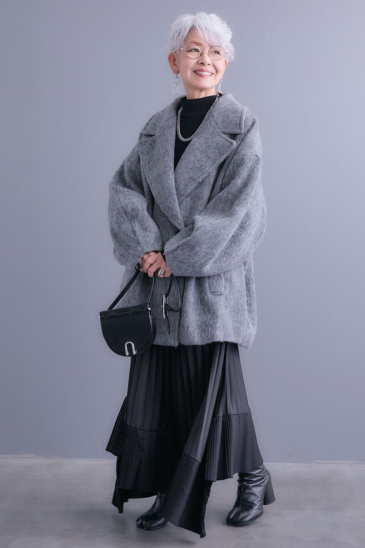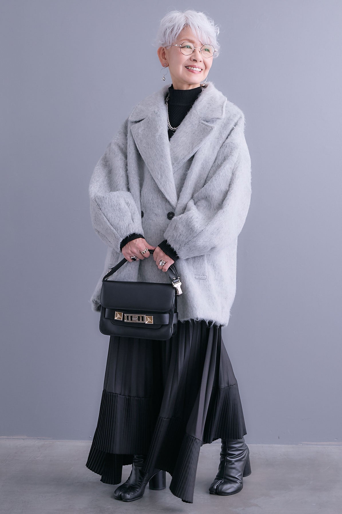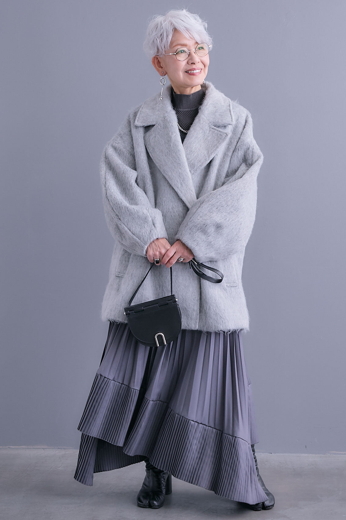 【予約】ワイドラペルコクーンスリーブシャギーコートを含んだコーデセット商品を探す↓