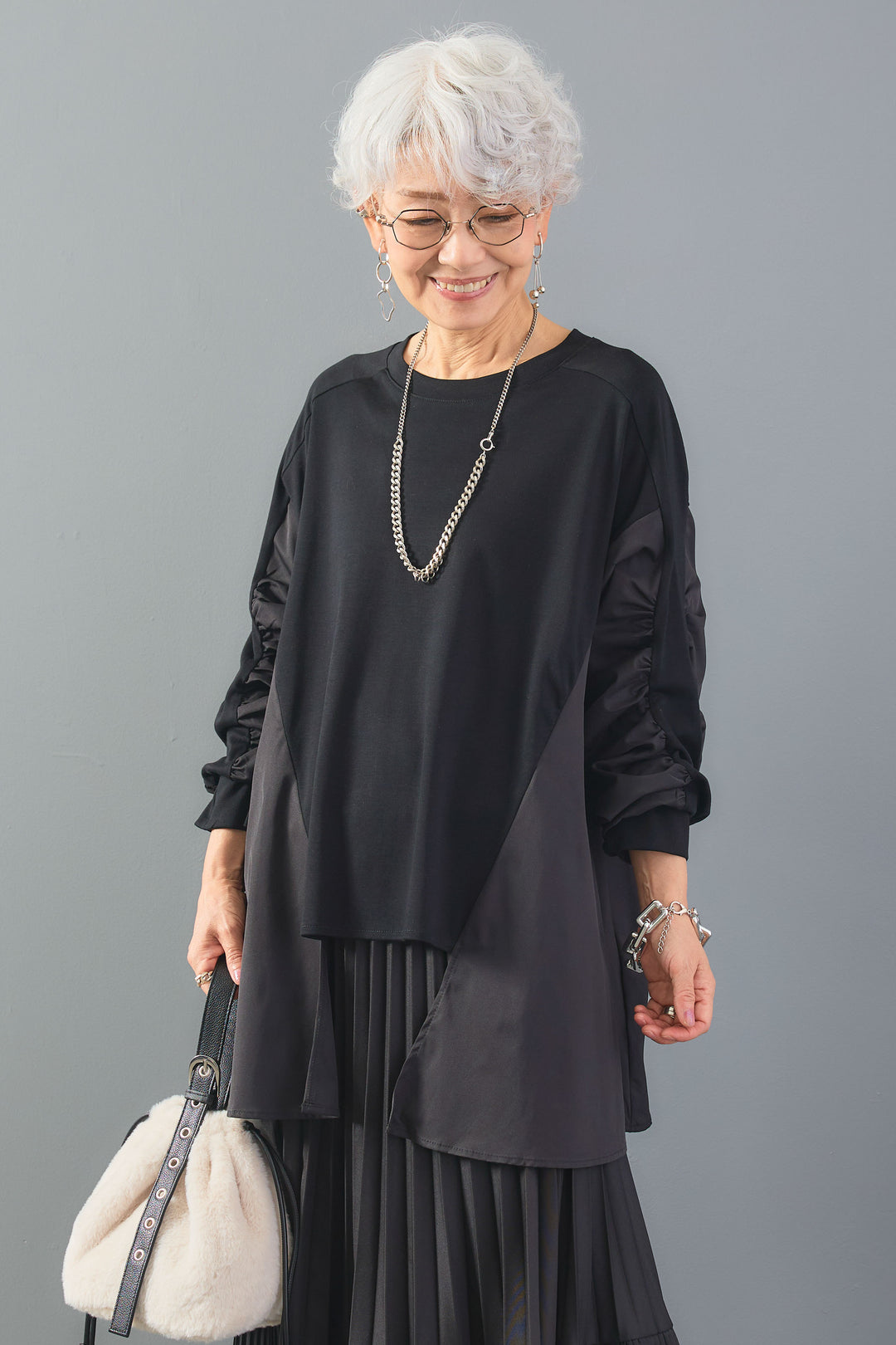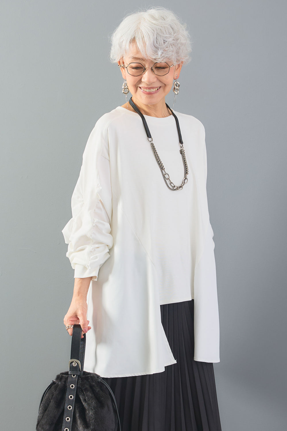 【即納】シャツレイヤードアシンメトリーモードトップス