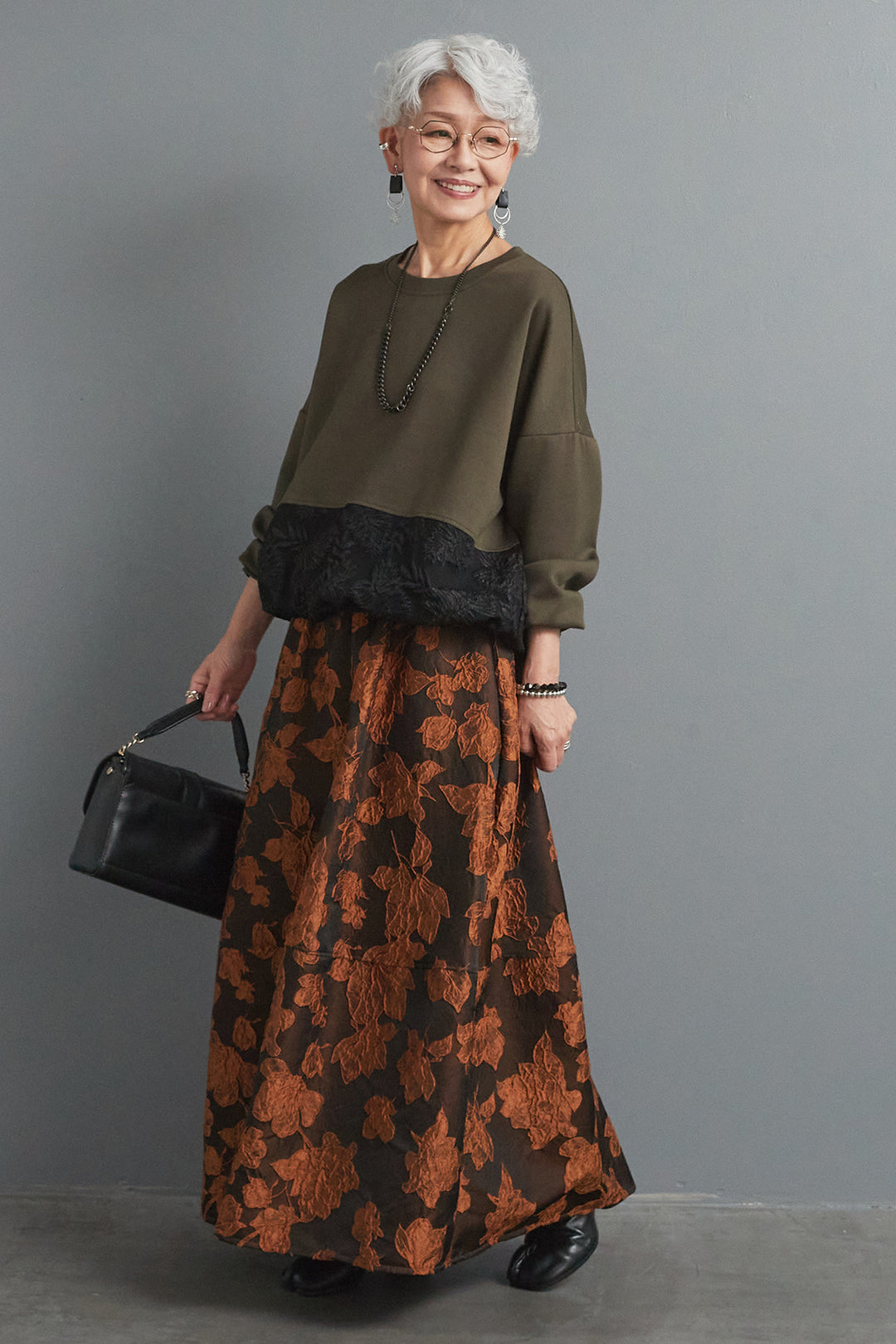 【即納】ワイドリブ×オーガンジーフリルトップス